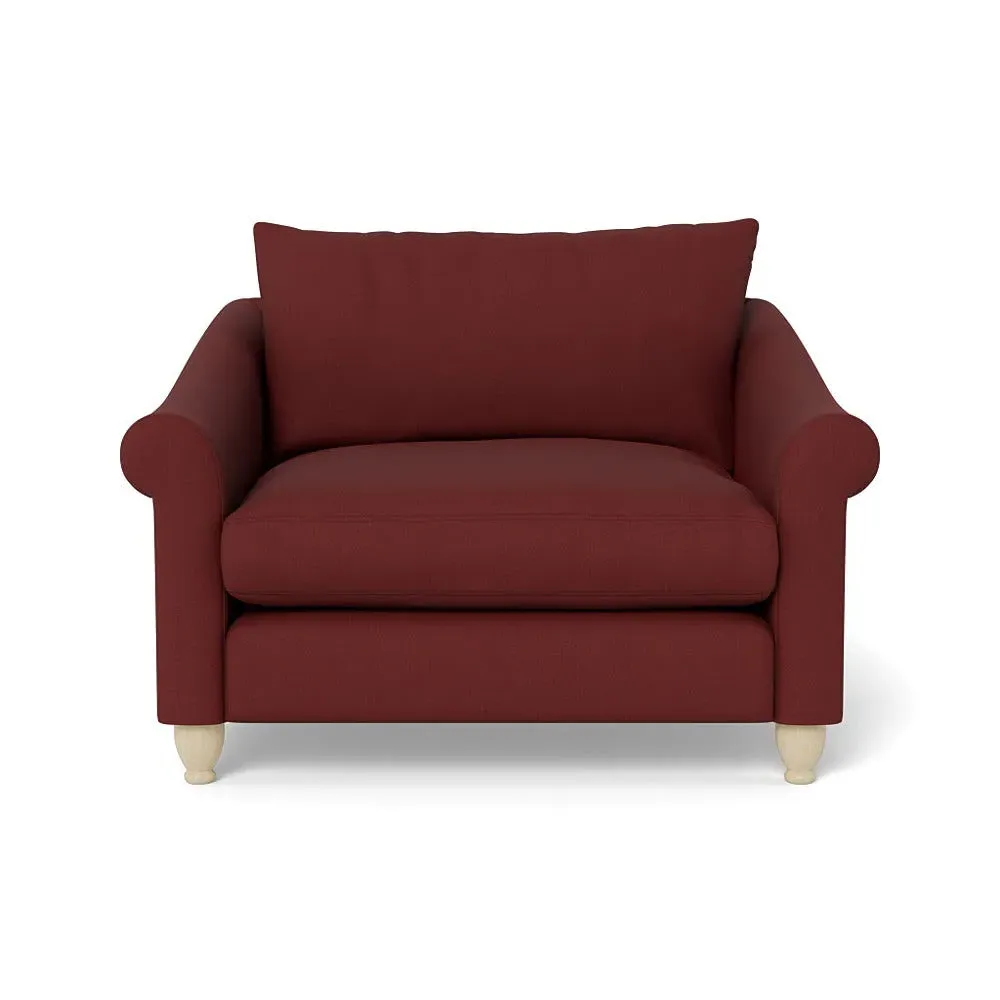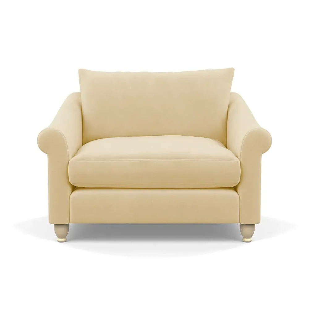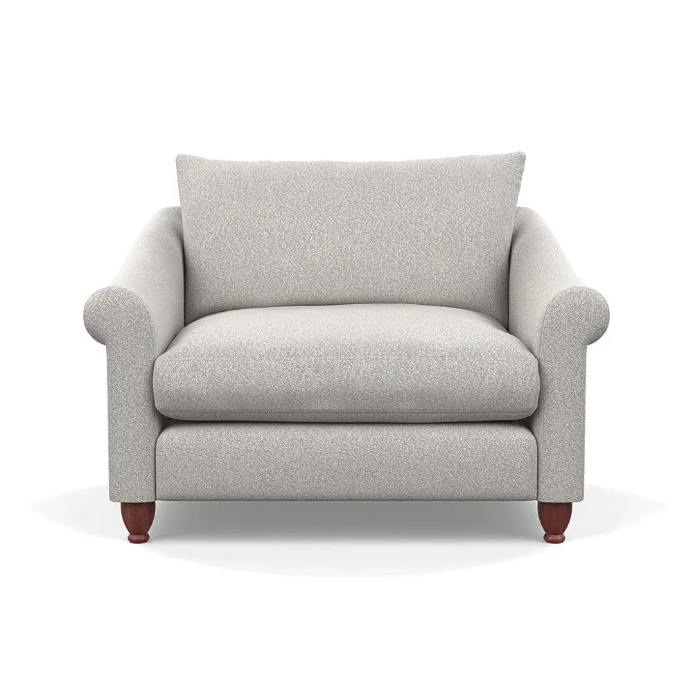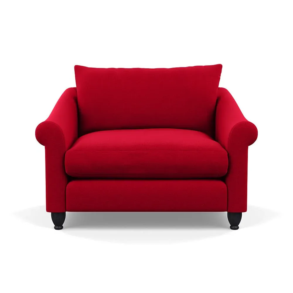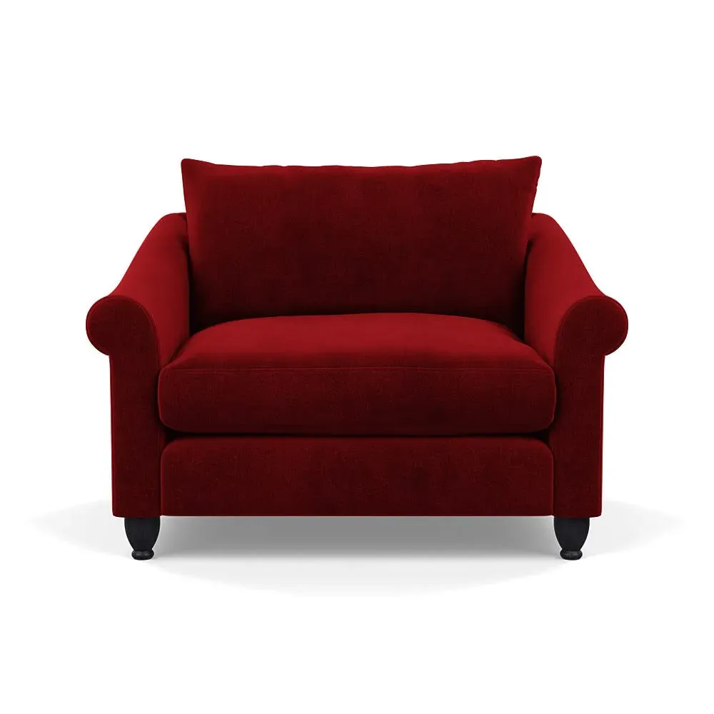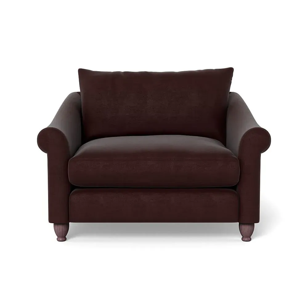 The loveseat provides comfortable seating with its brushed cotton upholstery, supported by black-stained beech feet. Its compact two-seater design offers intimate seating, while the durable cotton construction adds lasting quality. The sturdy frame ensures reliable support for daily use.