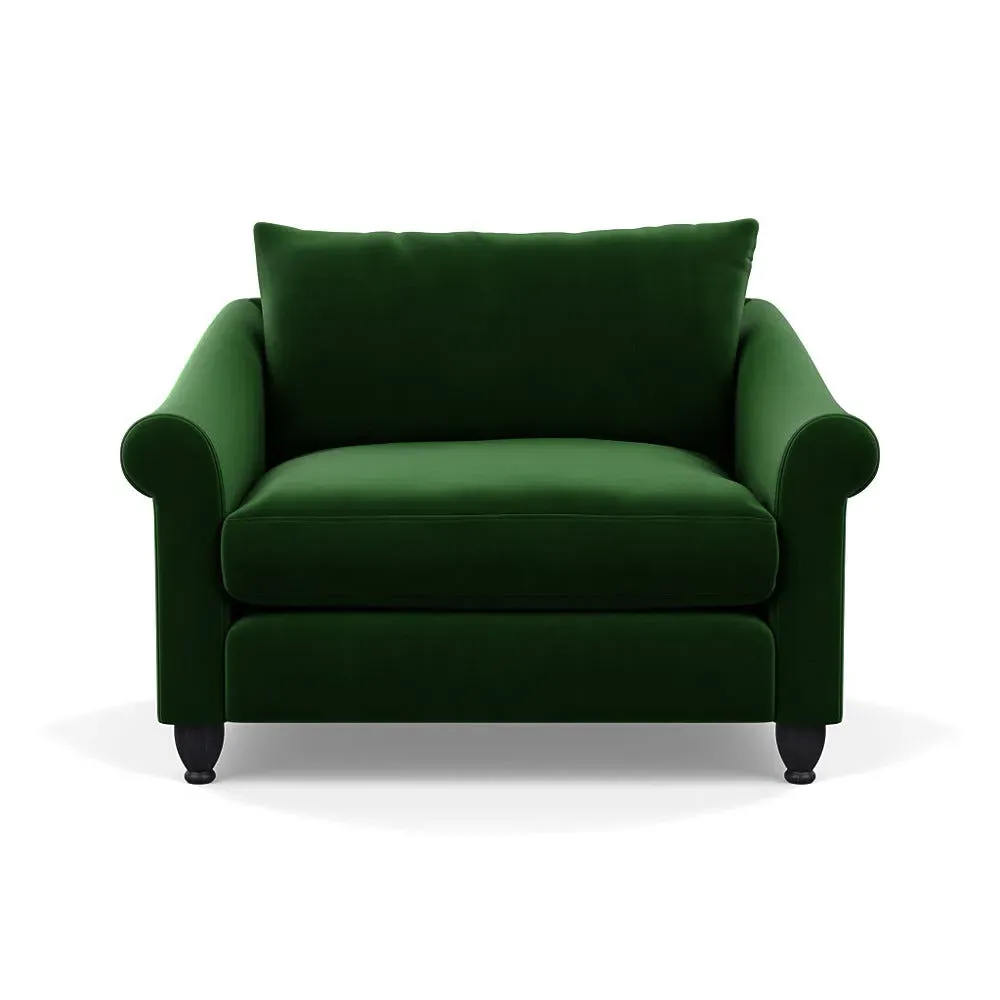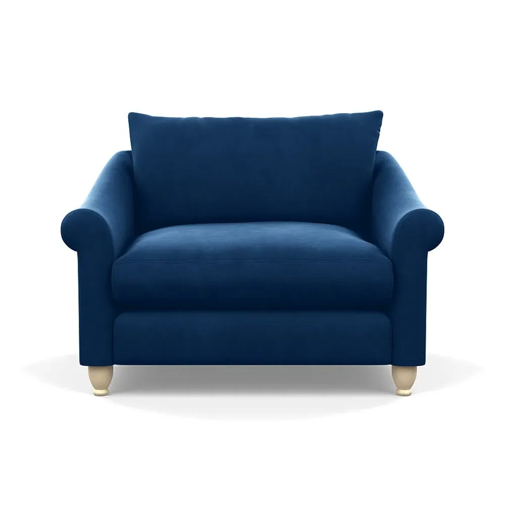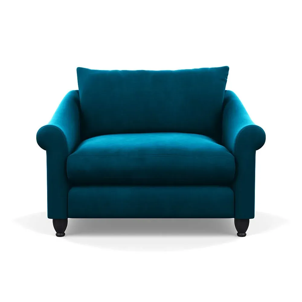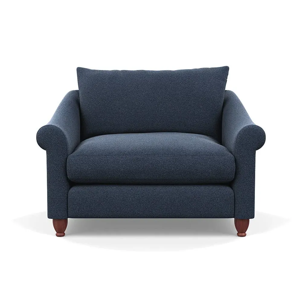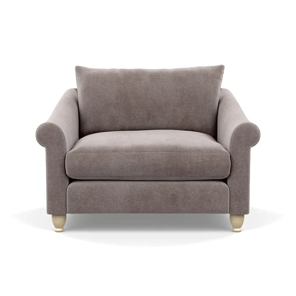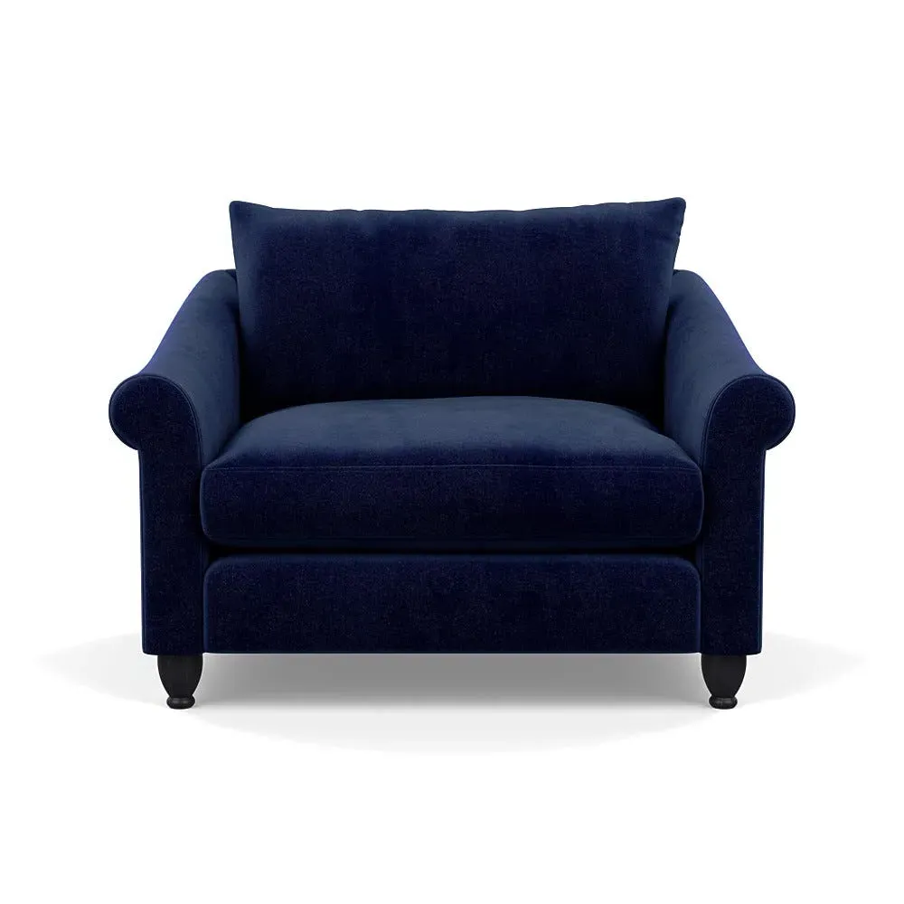 The loveseat provides comfortable seating with its brushed cotton upholstery, supported by black-stained beech feet. Its compact two-seater design offers intimate seating, while the durable cotton construction adds lasting quality. The sturdy frame ensures reliable support for daily use.
