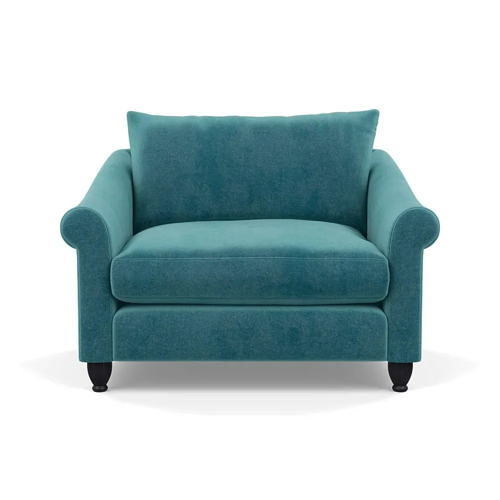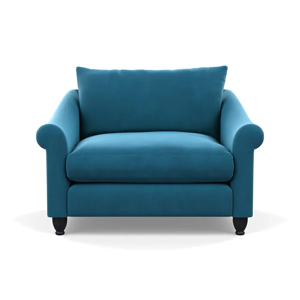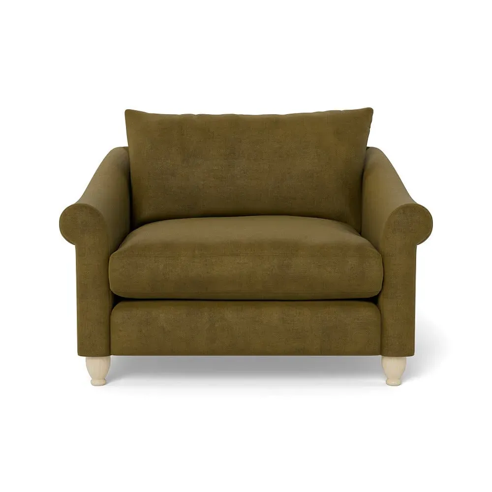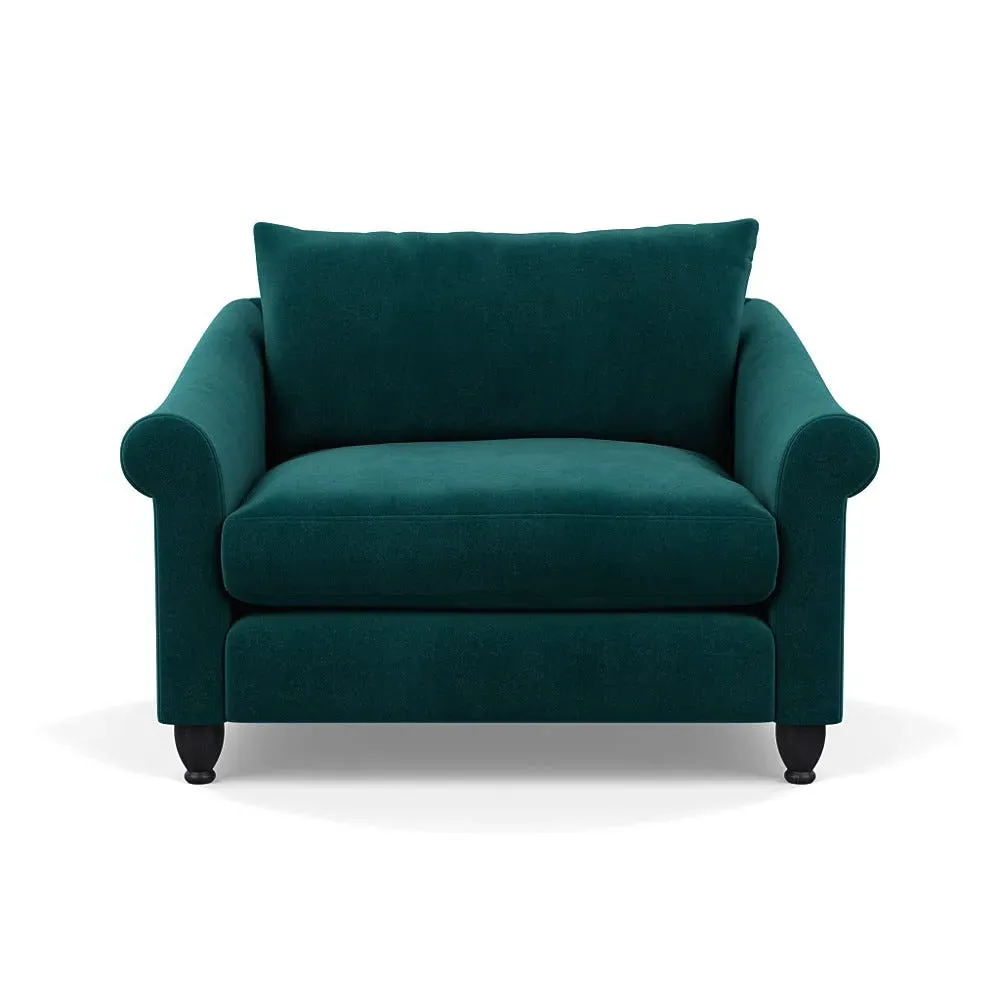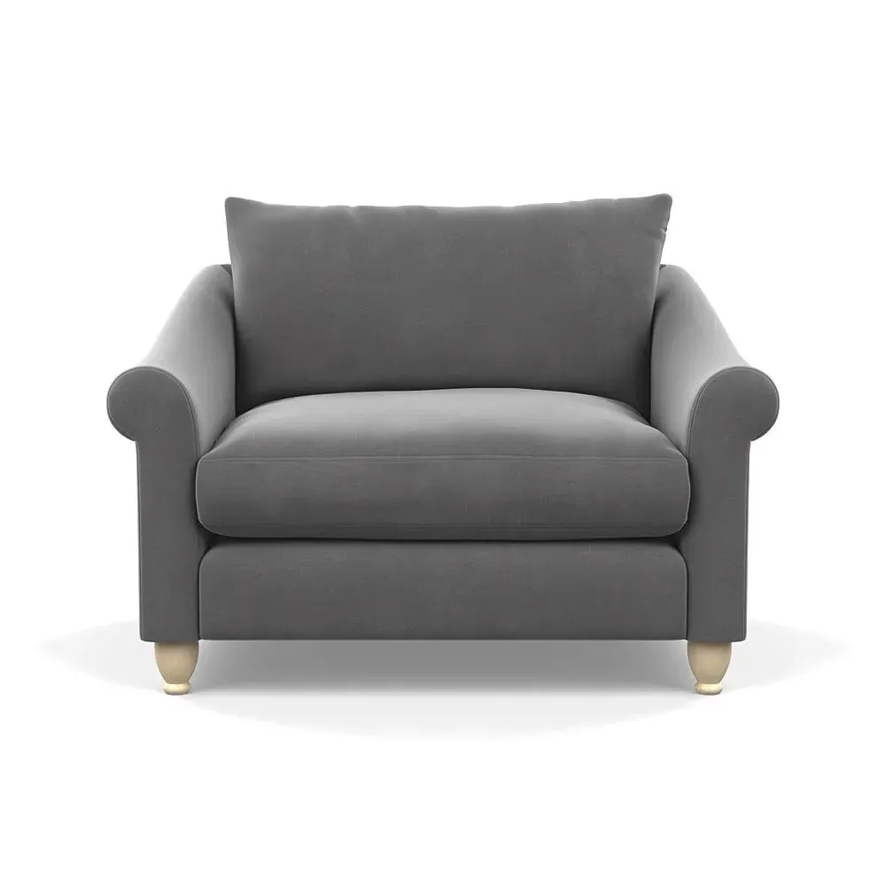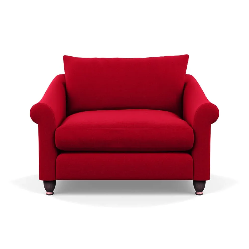 The loveseat provides comfortable seating with its brushed cotton upholstery, supported by black-stained beech feet. Its compact two-seater design offers intimate seating, while the durable cotton construction adds lasting quality. The sturdy frame ensures reliable support for daily use.