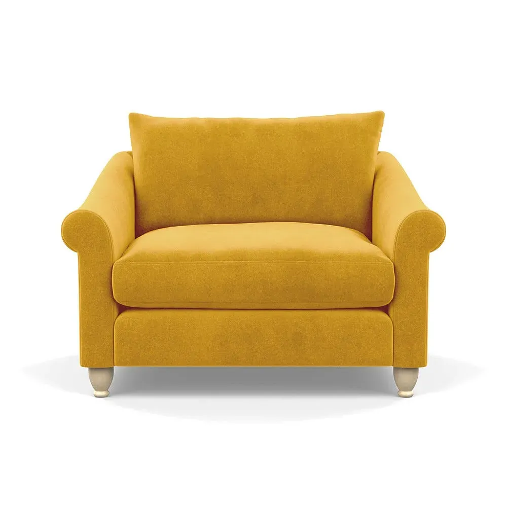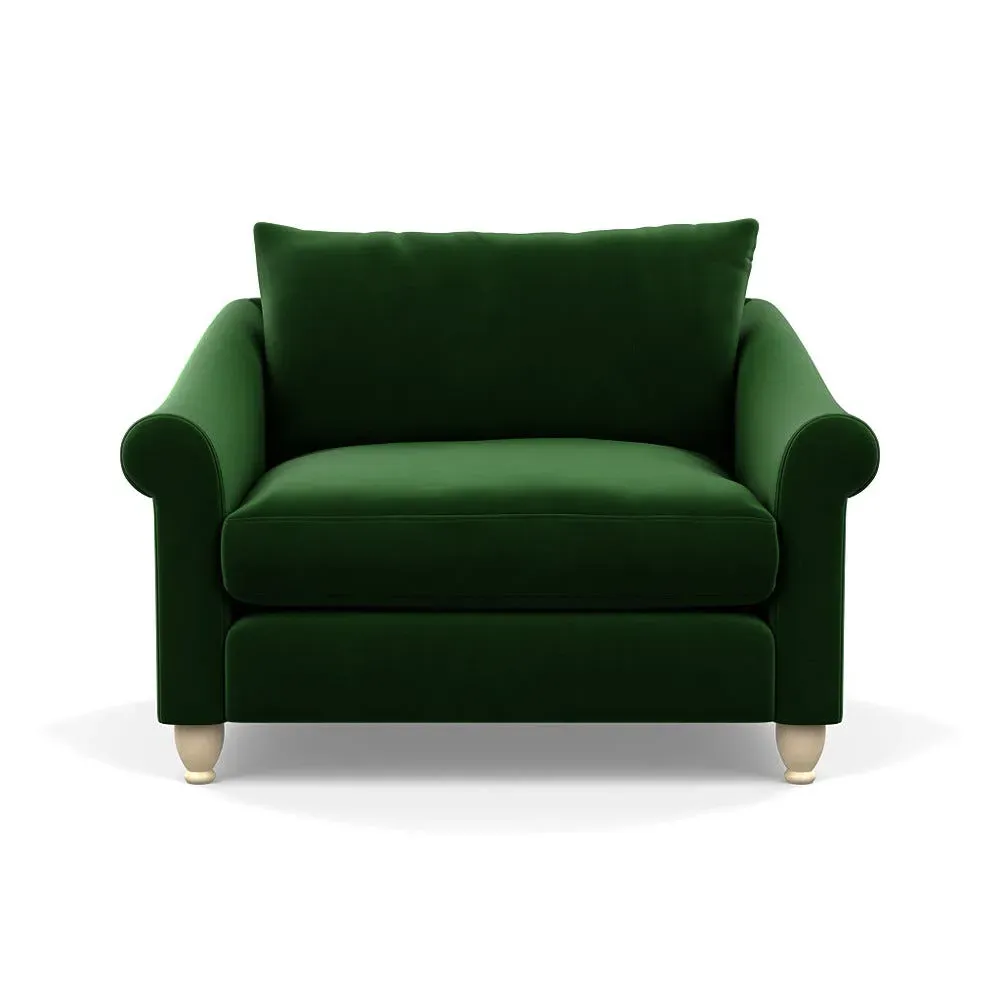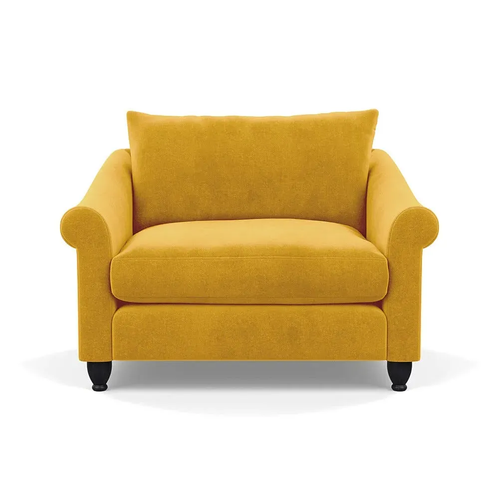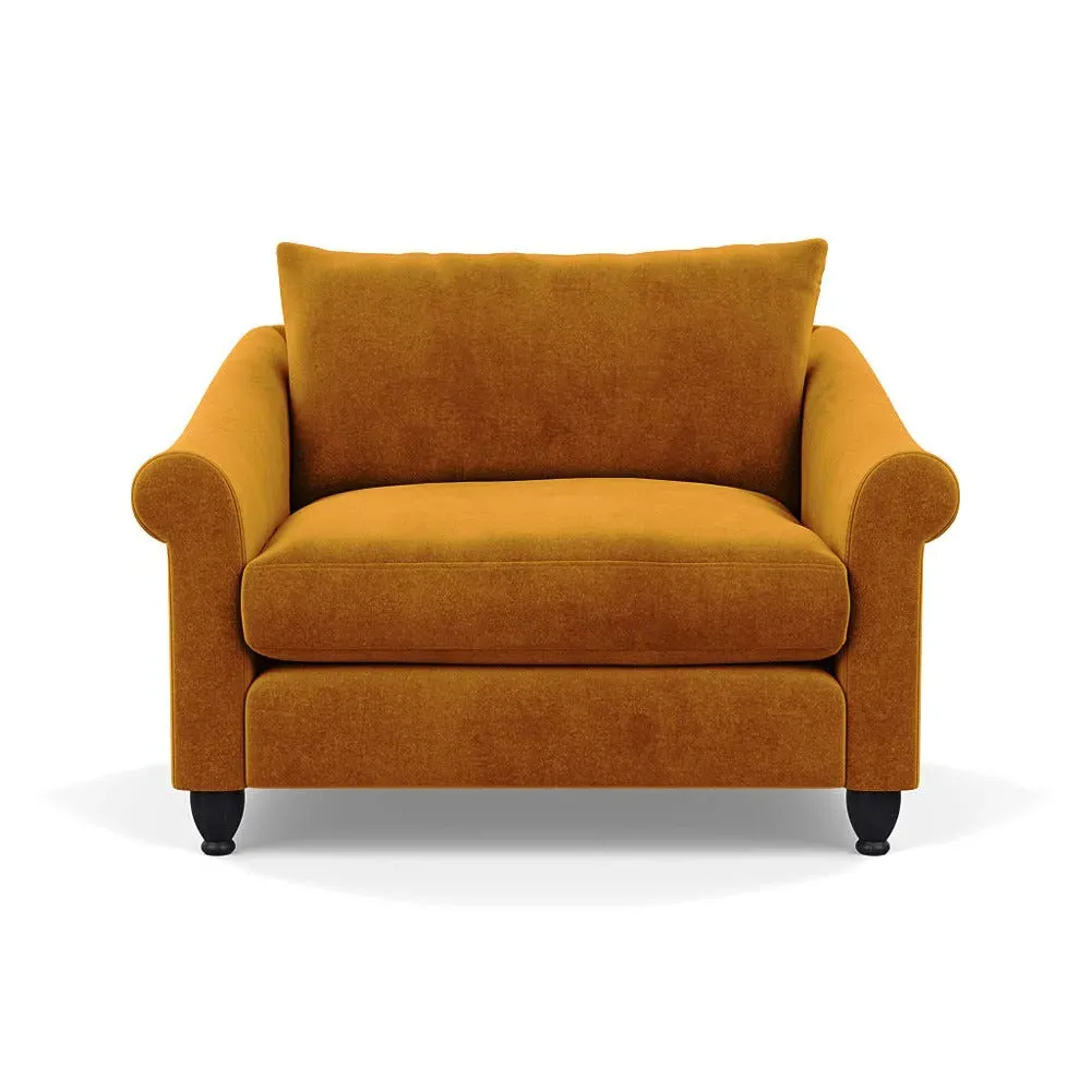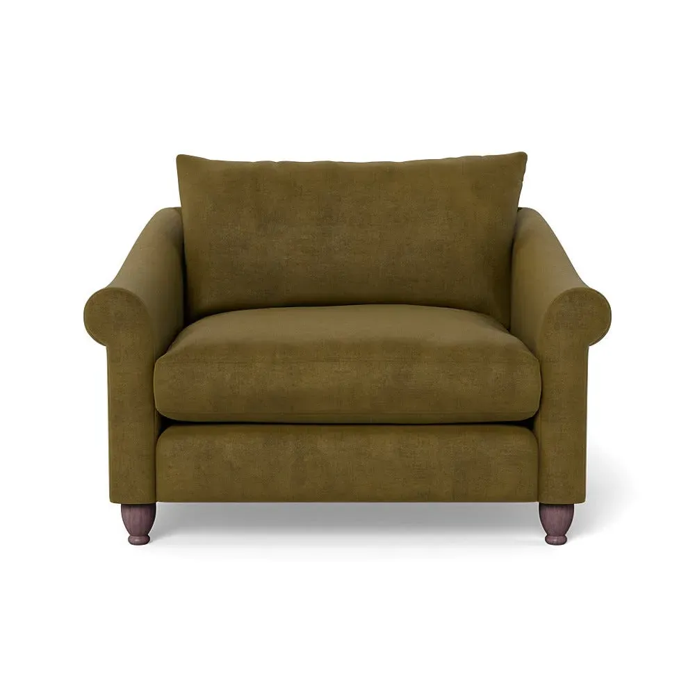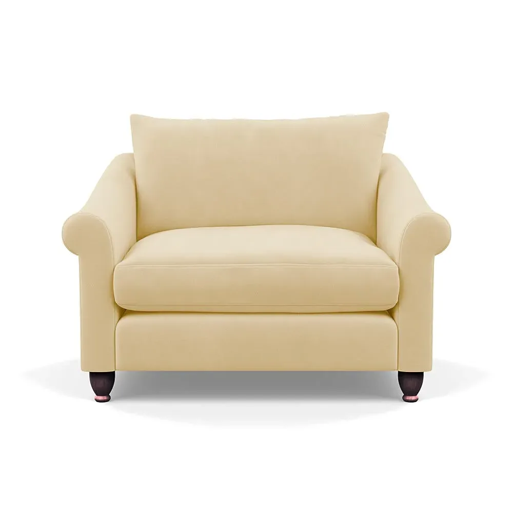 The loveseat provides comfortable seating with its brushed cotton upholstery, supported by black-stained beech feet. Its compact two-seater design offers intimate seating, while the durable cotton construction adds lasting quality. The sturdy frame ensures reliable support for daily use.