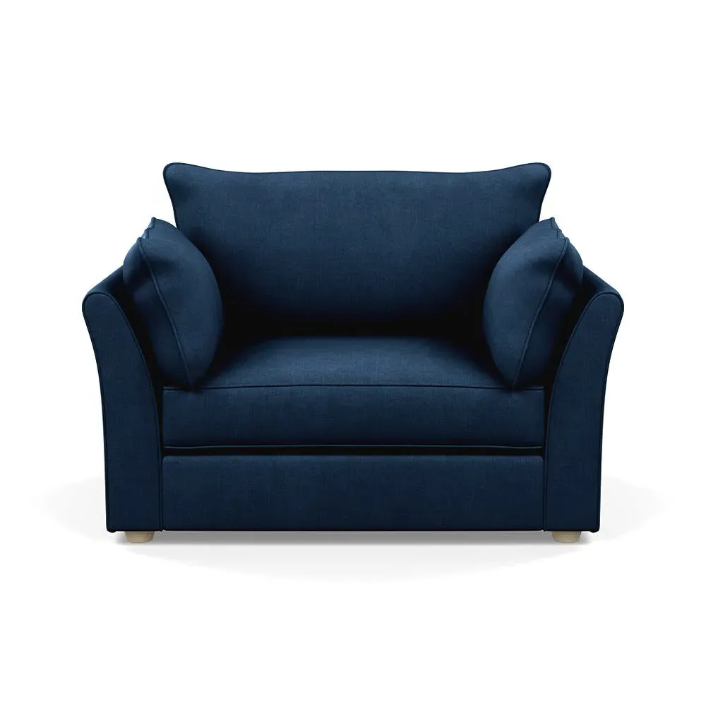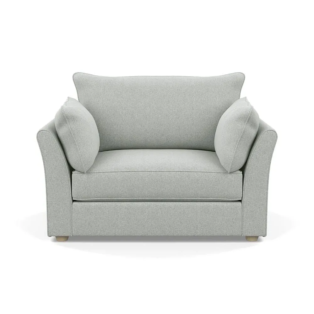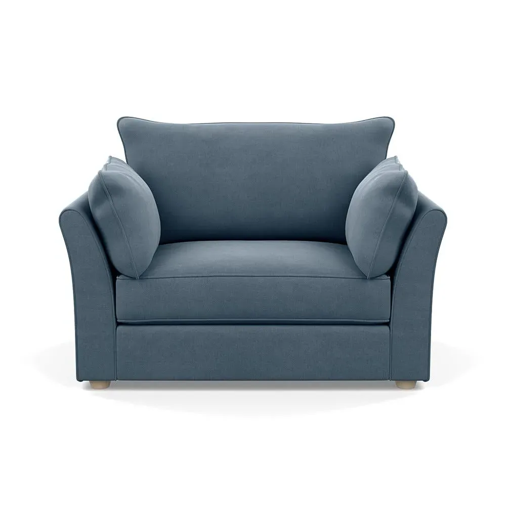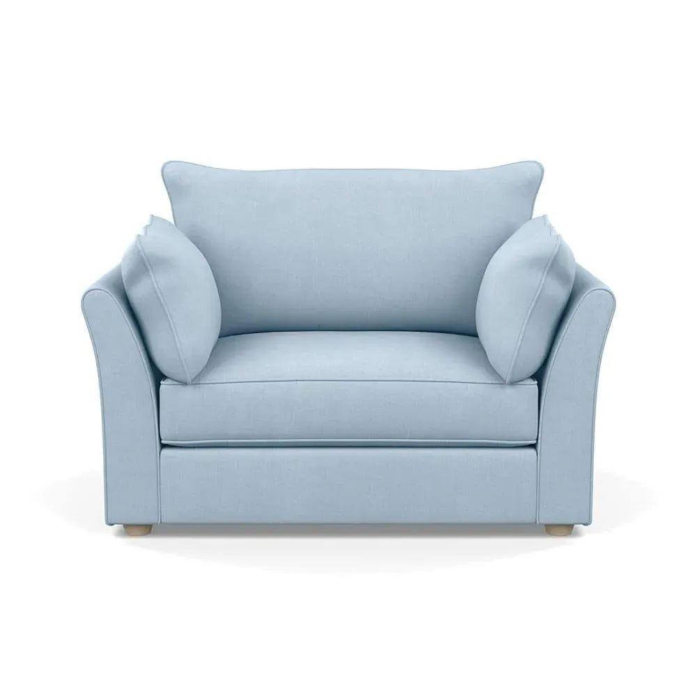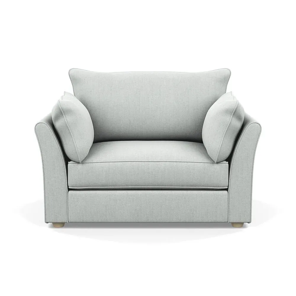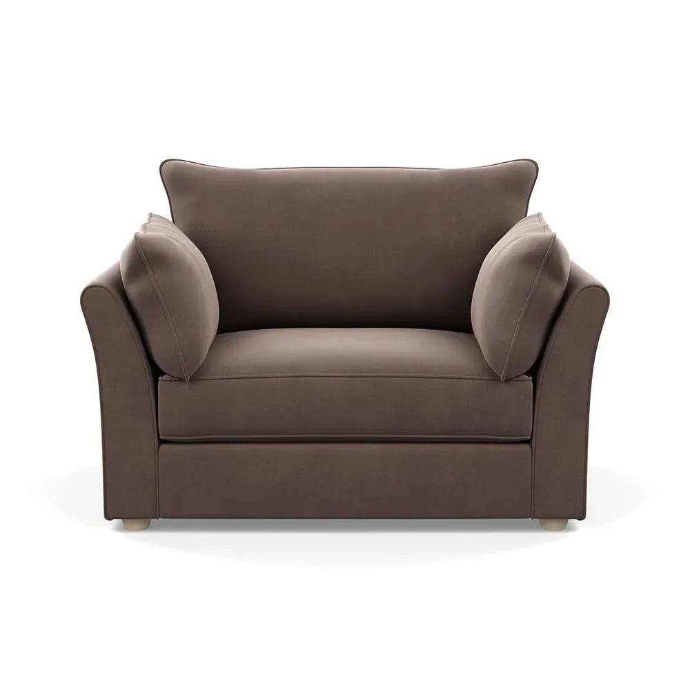 The loveseat offers refined comfort with its soft brushed cotton upholstery in a warm oat tone. Its tailored design provides structured support, while the natural beech feet add warmth and stability. The compact two-seater frame suits intimate seating arrangements, and the solid wood legs ensure lasting durability.
