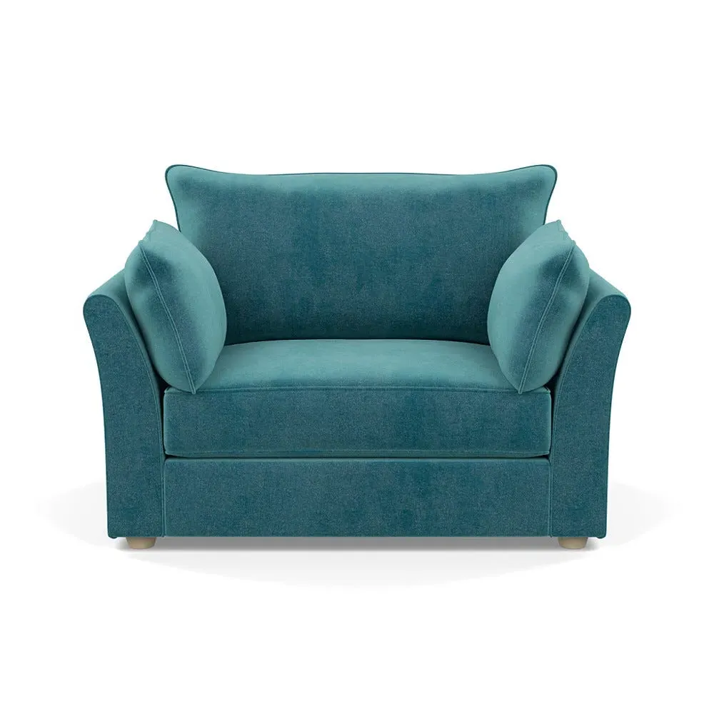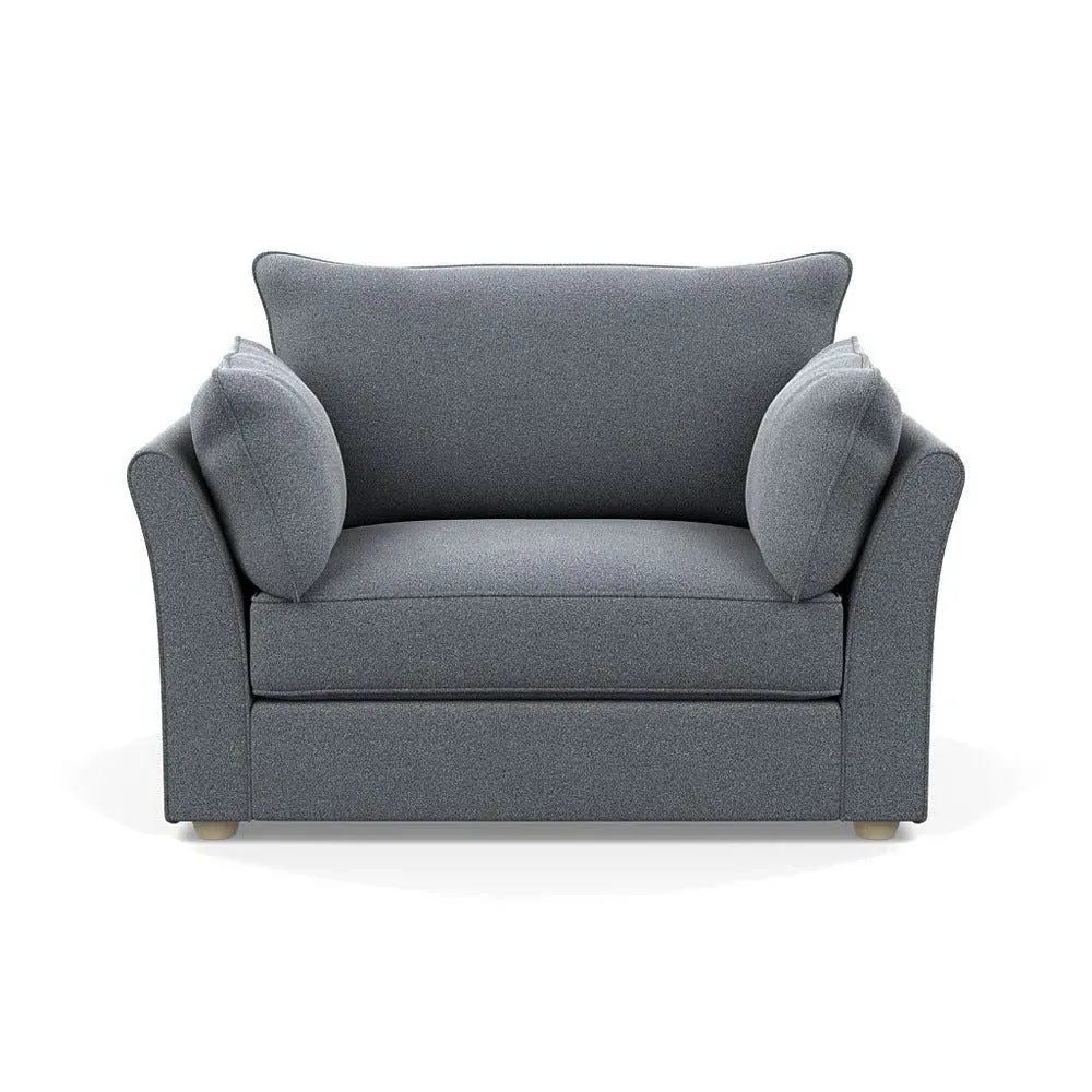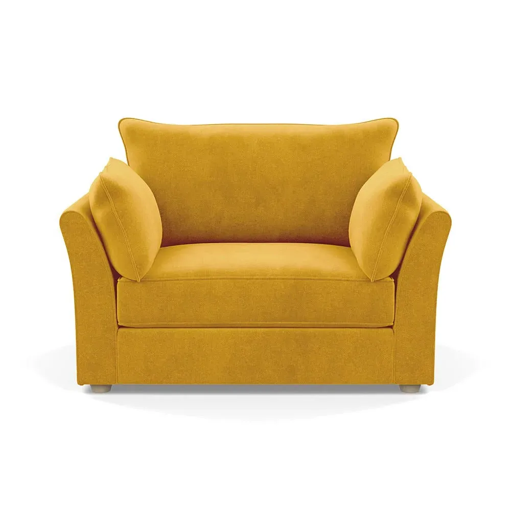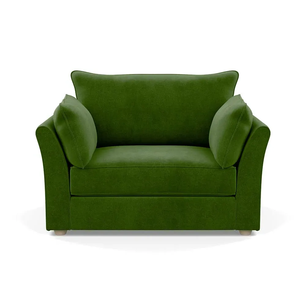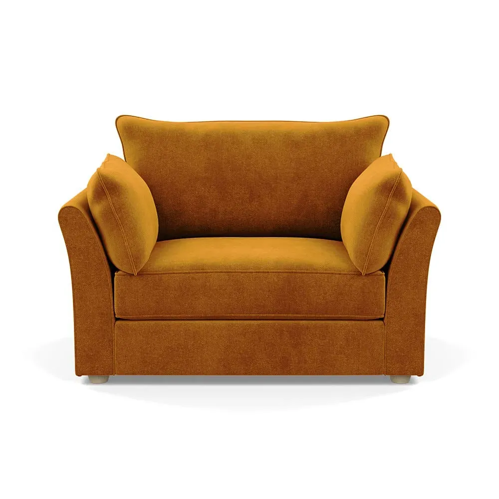 The loveseat offers refined comfort with its soft brushed cotton upholstery in a warm oat tone. Its tailored design provides structured support, while the natural beech feet add warmth and stability. The compact two-seater frame suits intimate seating arrangements, and the solid wood legs ensure lasting durability.