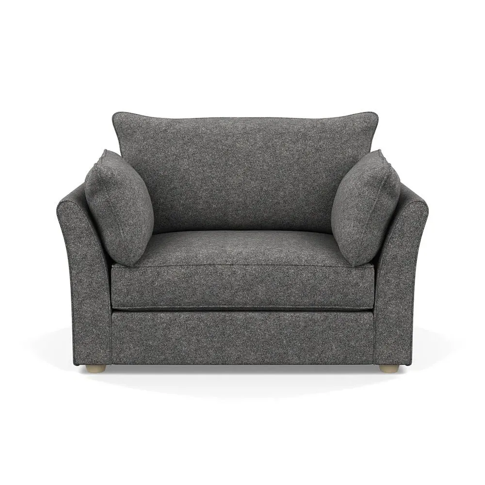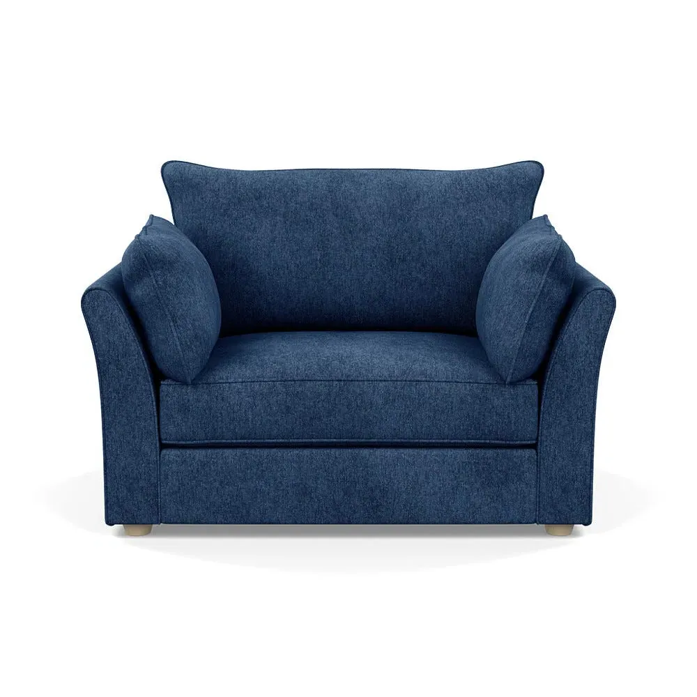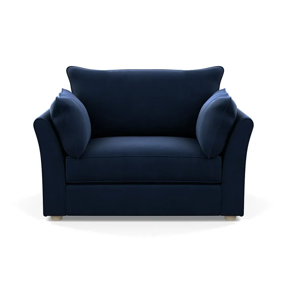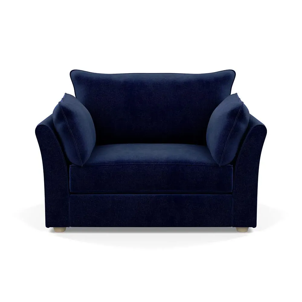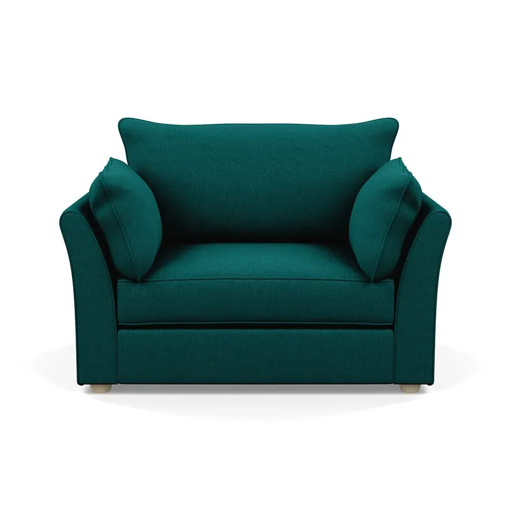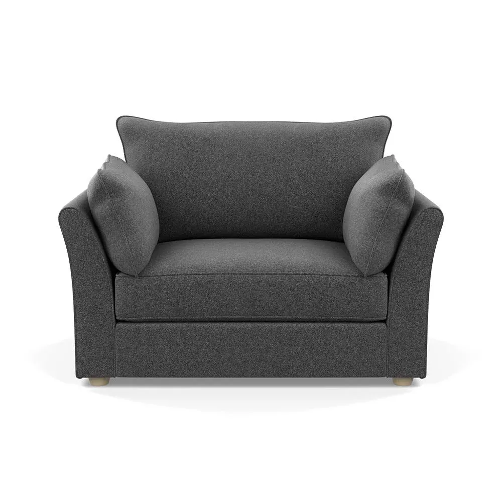 The loveseat offers refined comfort with its soft brushed cotton upholstery in a warm oat tone. Its tailored design provides structured support, while the natural beech feet add warmth and stability. The compact two-seater frame suits intimate seating arrangements, and the solid wood legs ensure lasting durability.