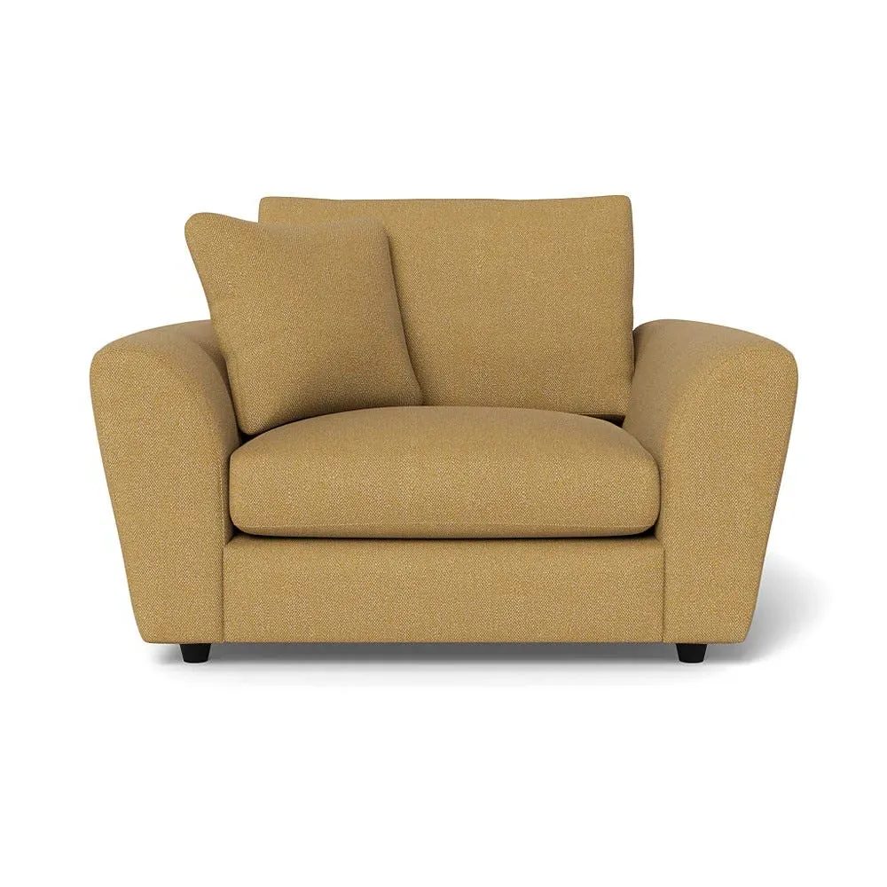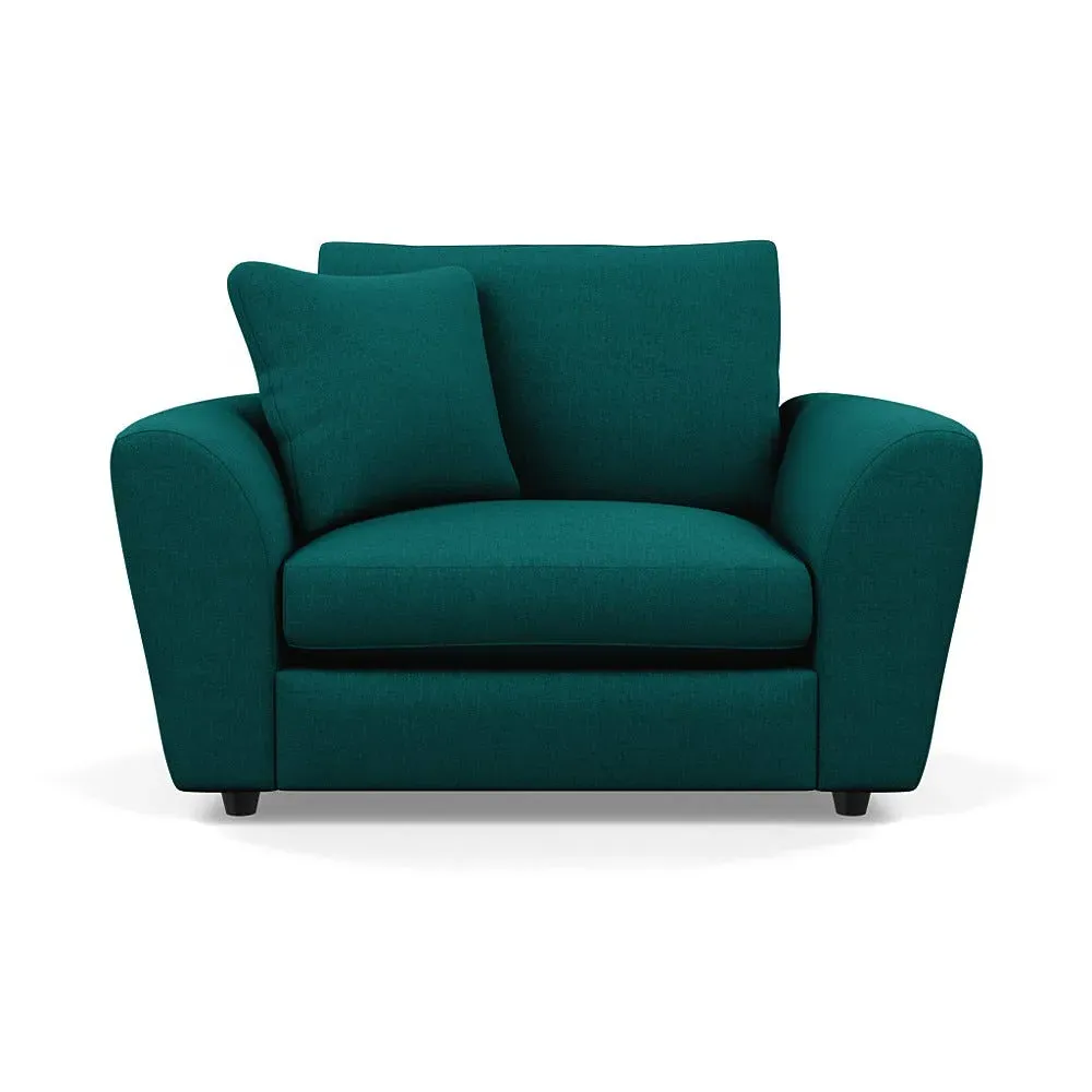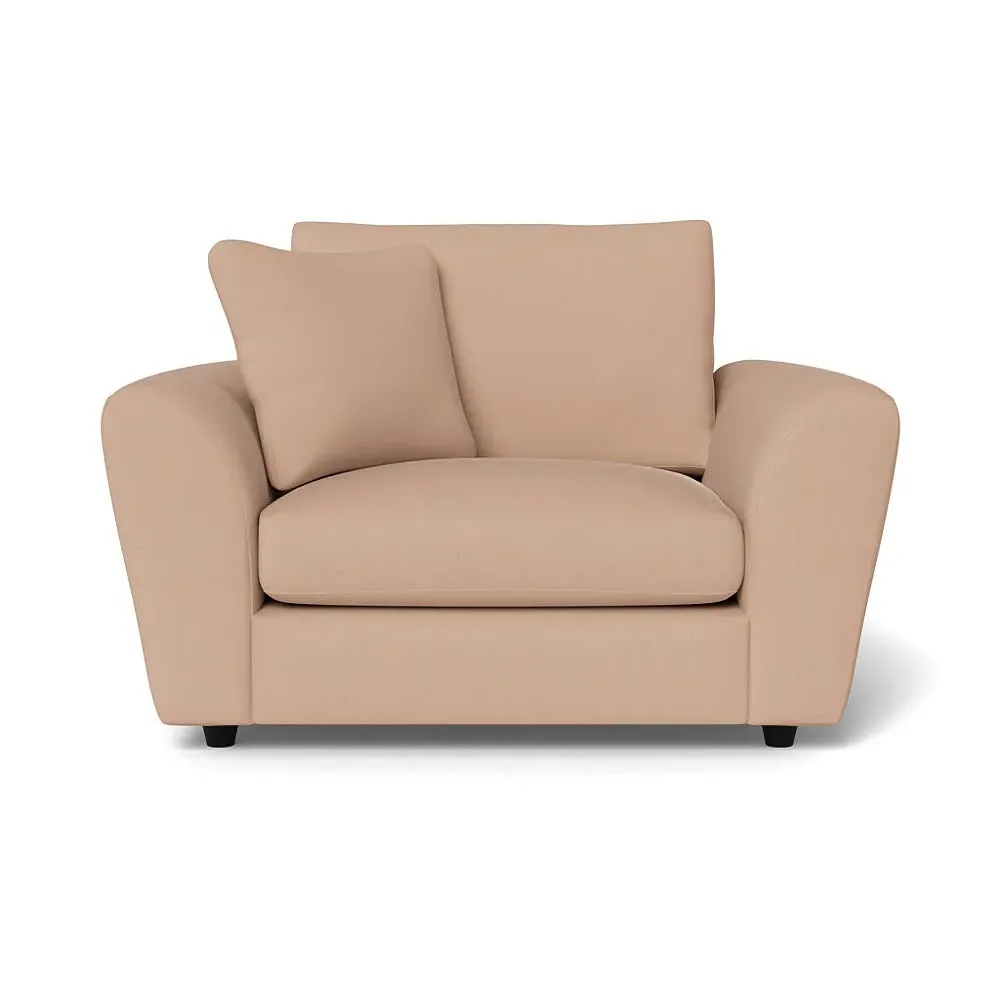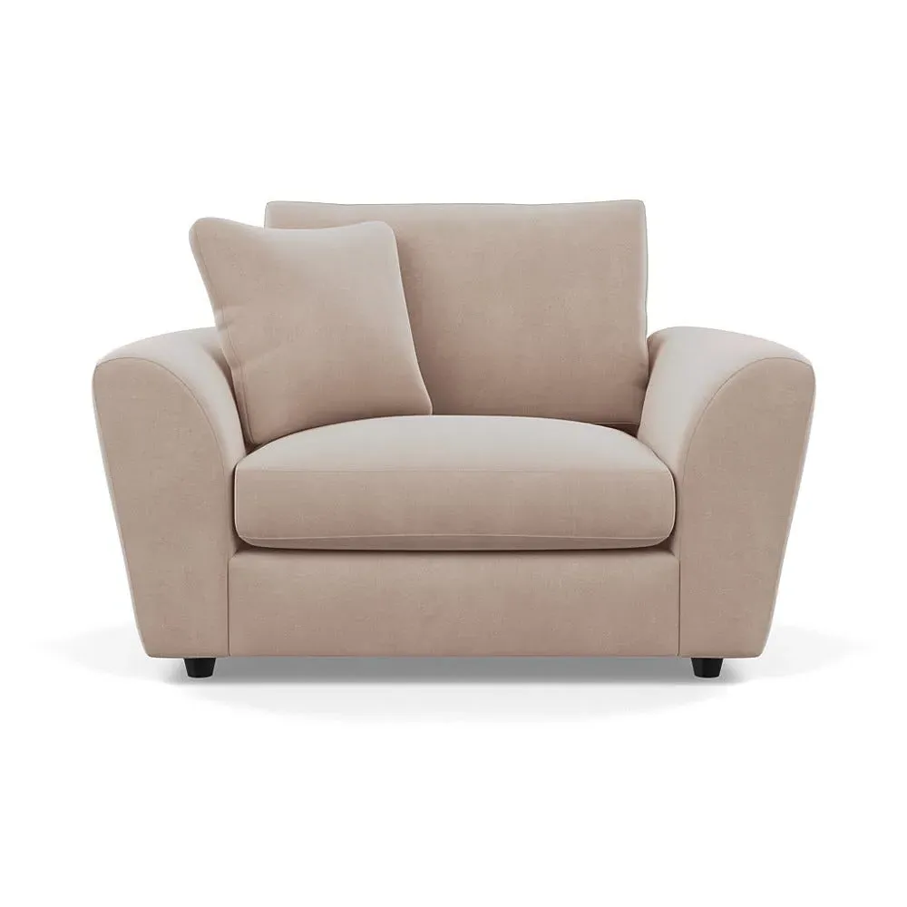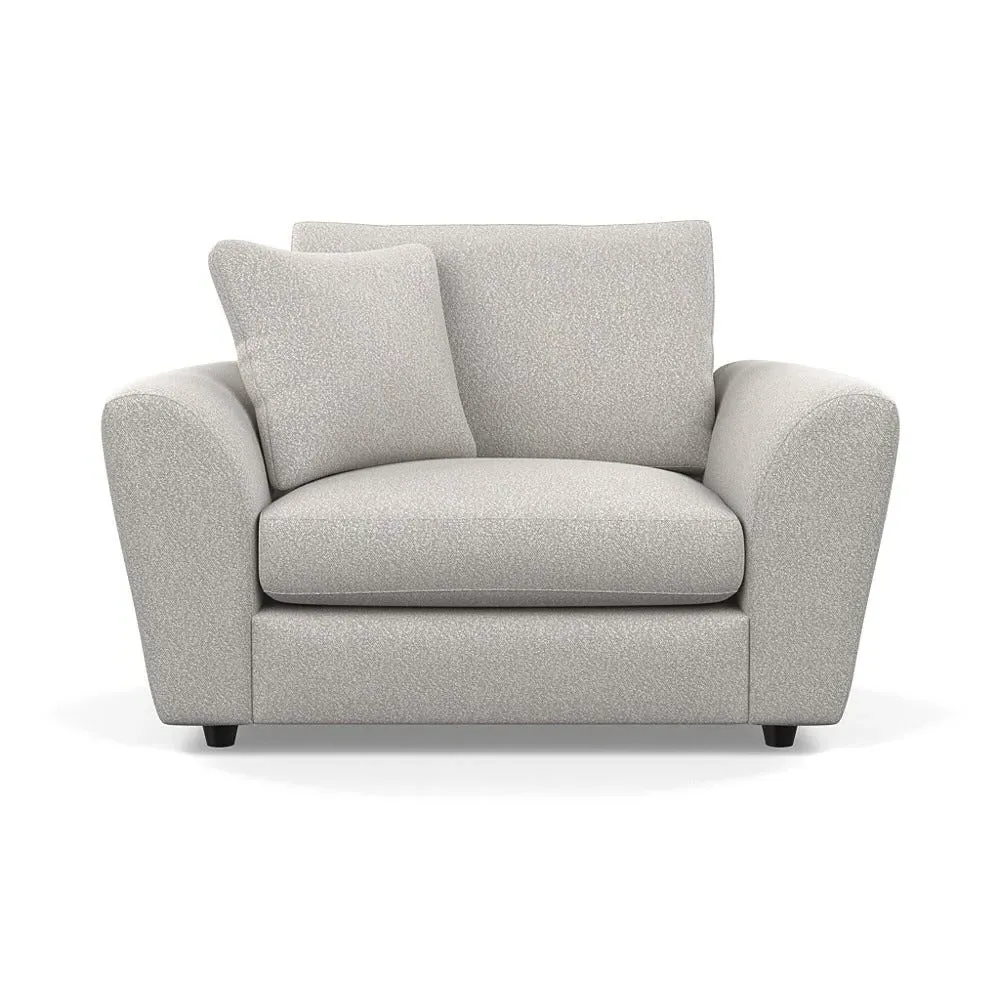The loveseat offers contemporary comfort with its soft, curved arms and generous seating that encourages relaxation. Constructed using solid beech and birch wood, it features sumptuous fibre-filled seat and back cushions that don't require constant plumping. The hidden feet create a continuous silhouette, while the sturdy wood frame ensures lasting durability.
