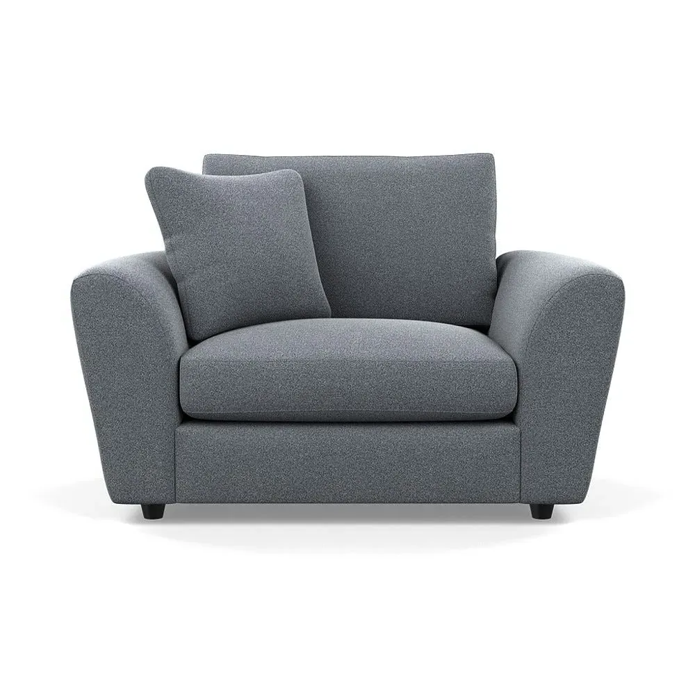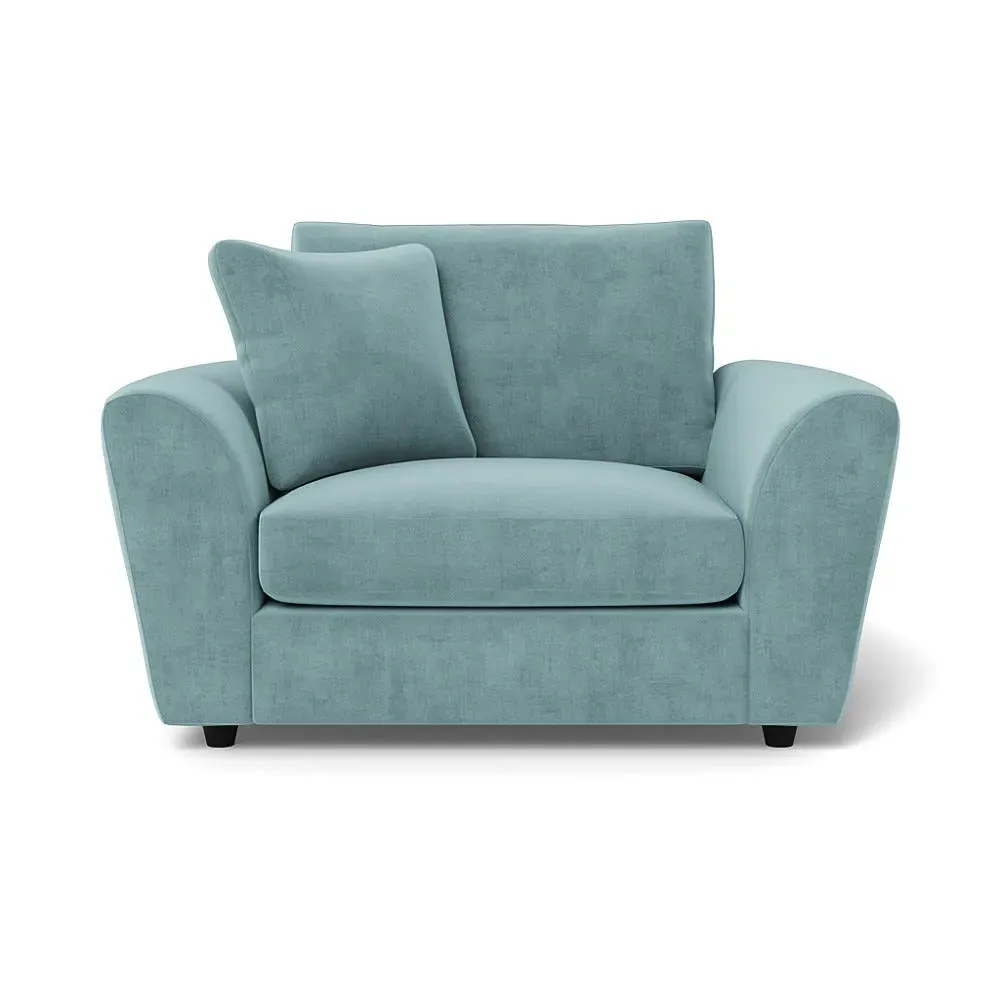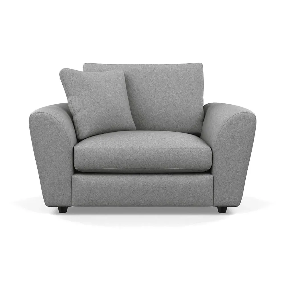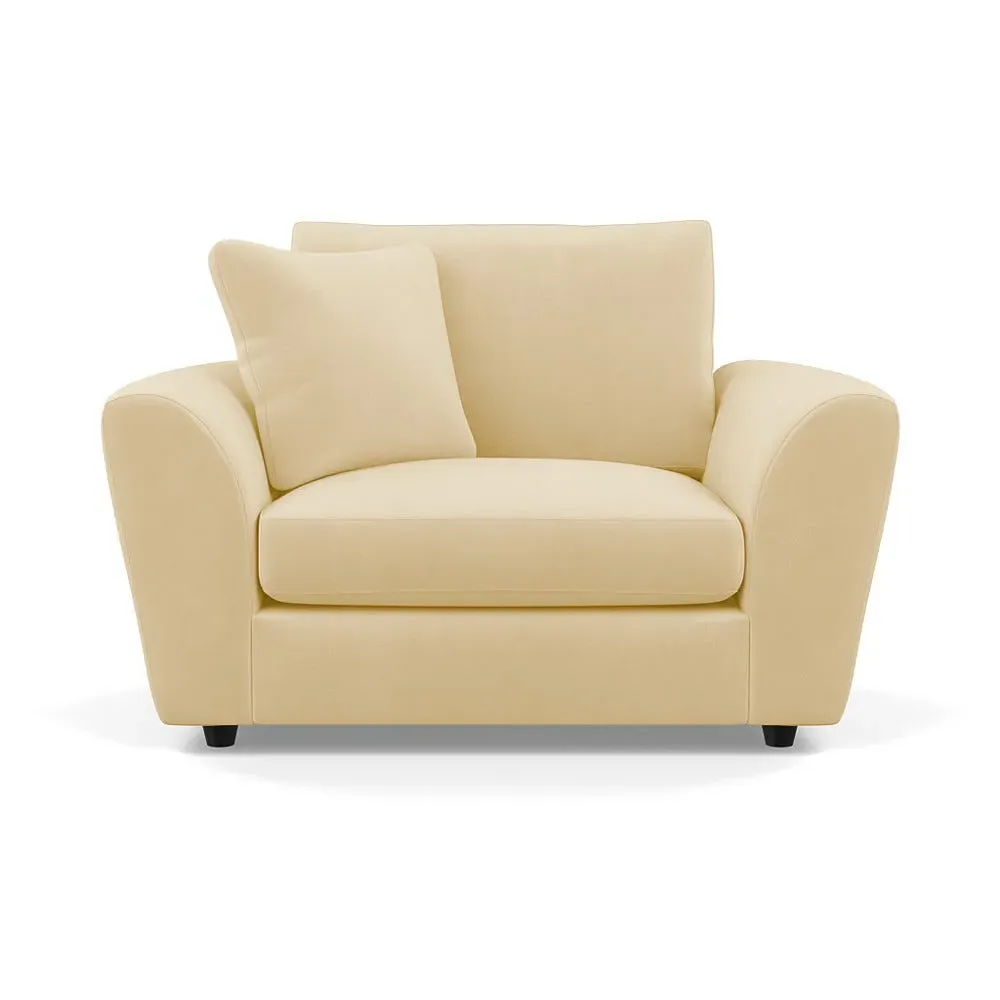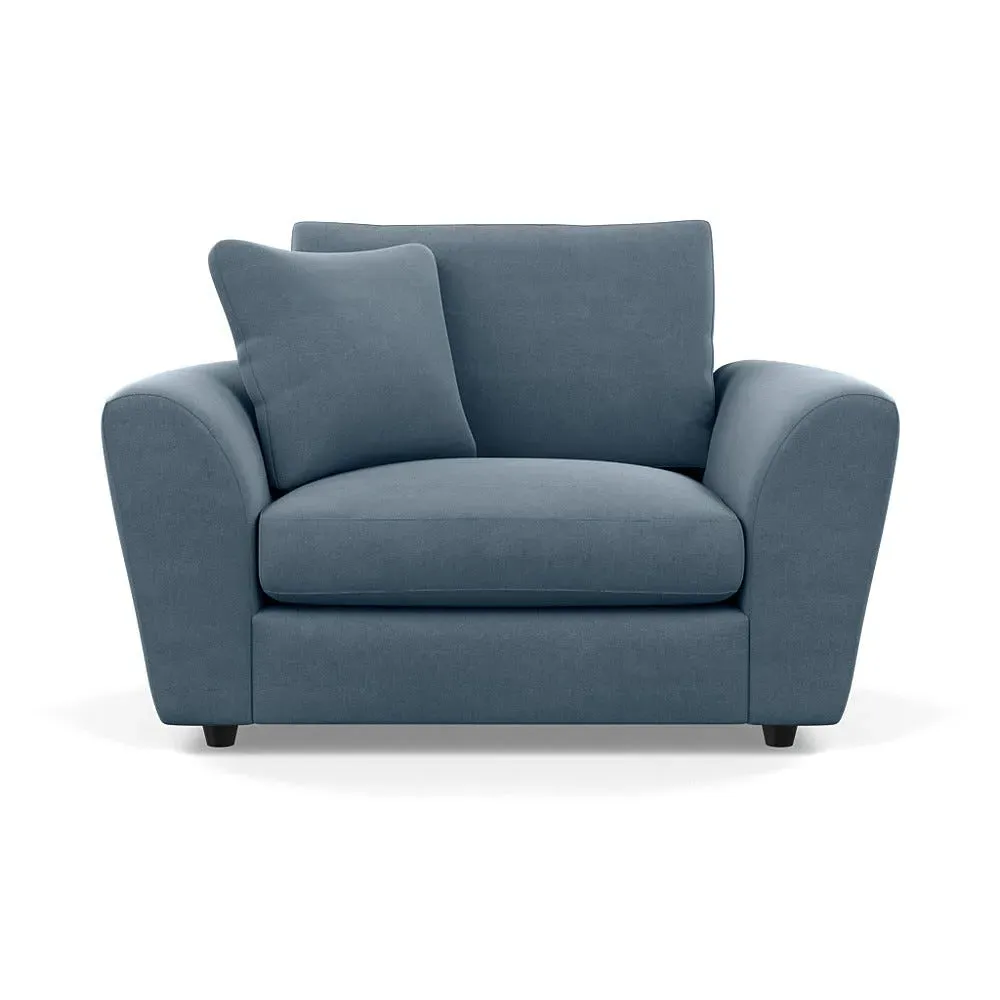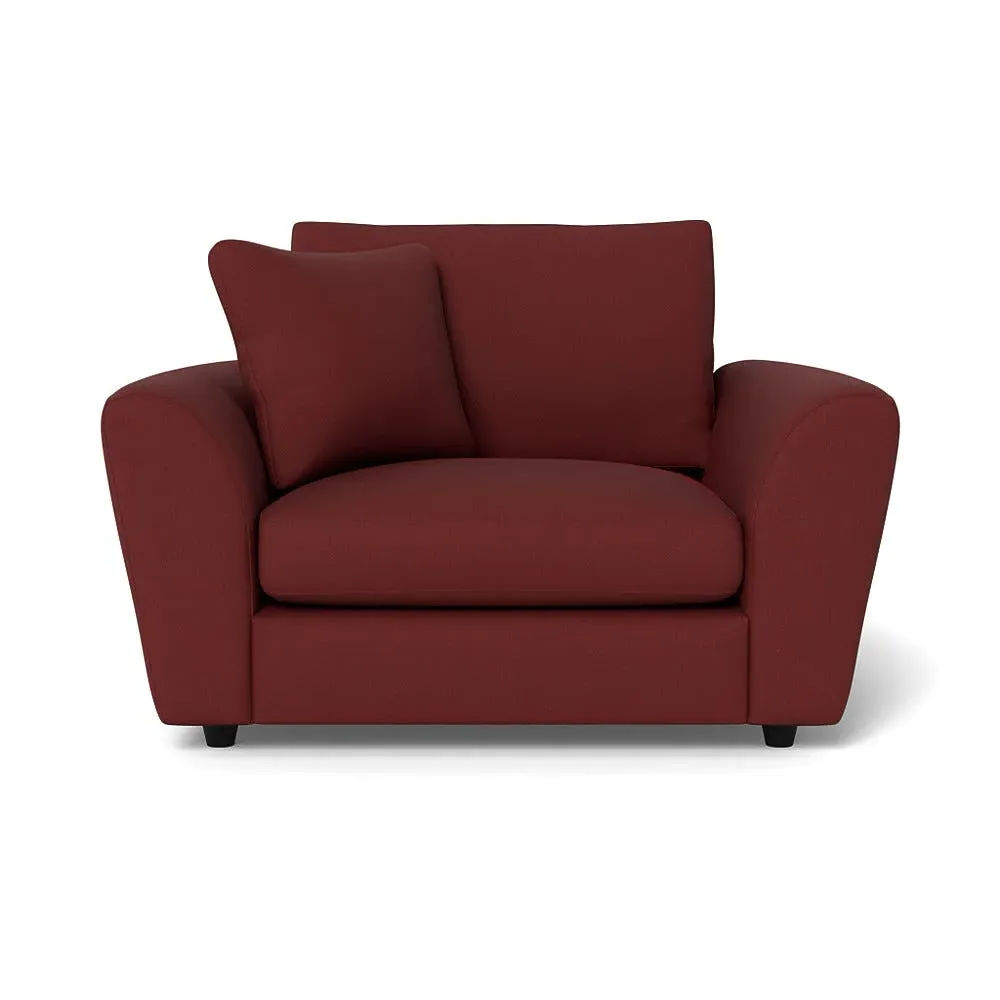 The loveseat offers contemporary comfort with its soft, curved arms and generous seating that encourages relaxation. Constructed using solid beech and birch wood, it features sumptuous fibre-filled seat and back cushions that don't require constant plumping. The hidden feet create a continuous silhouette, while the sturdy wood frame ensures lasting durability.