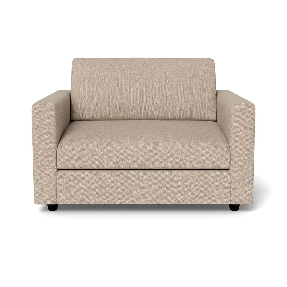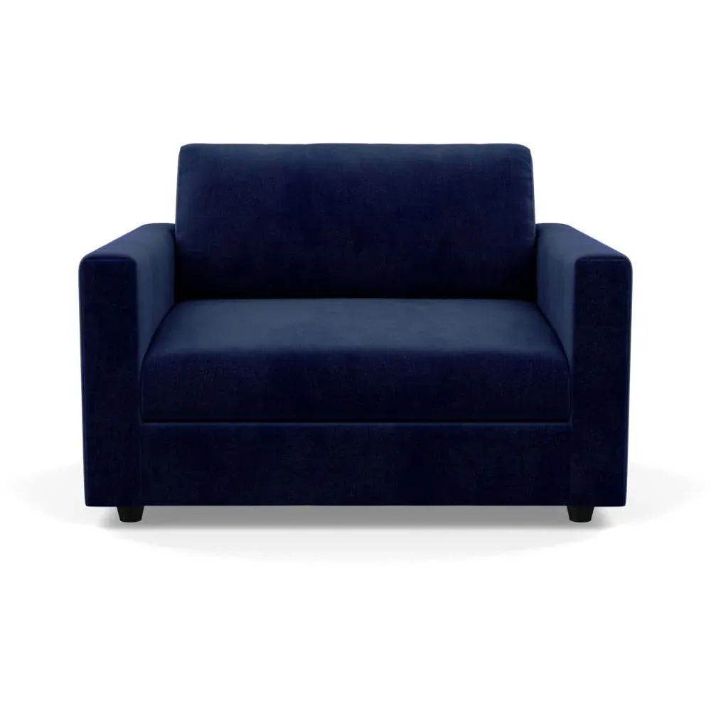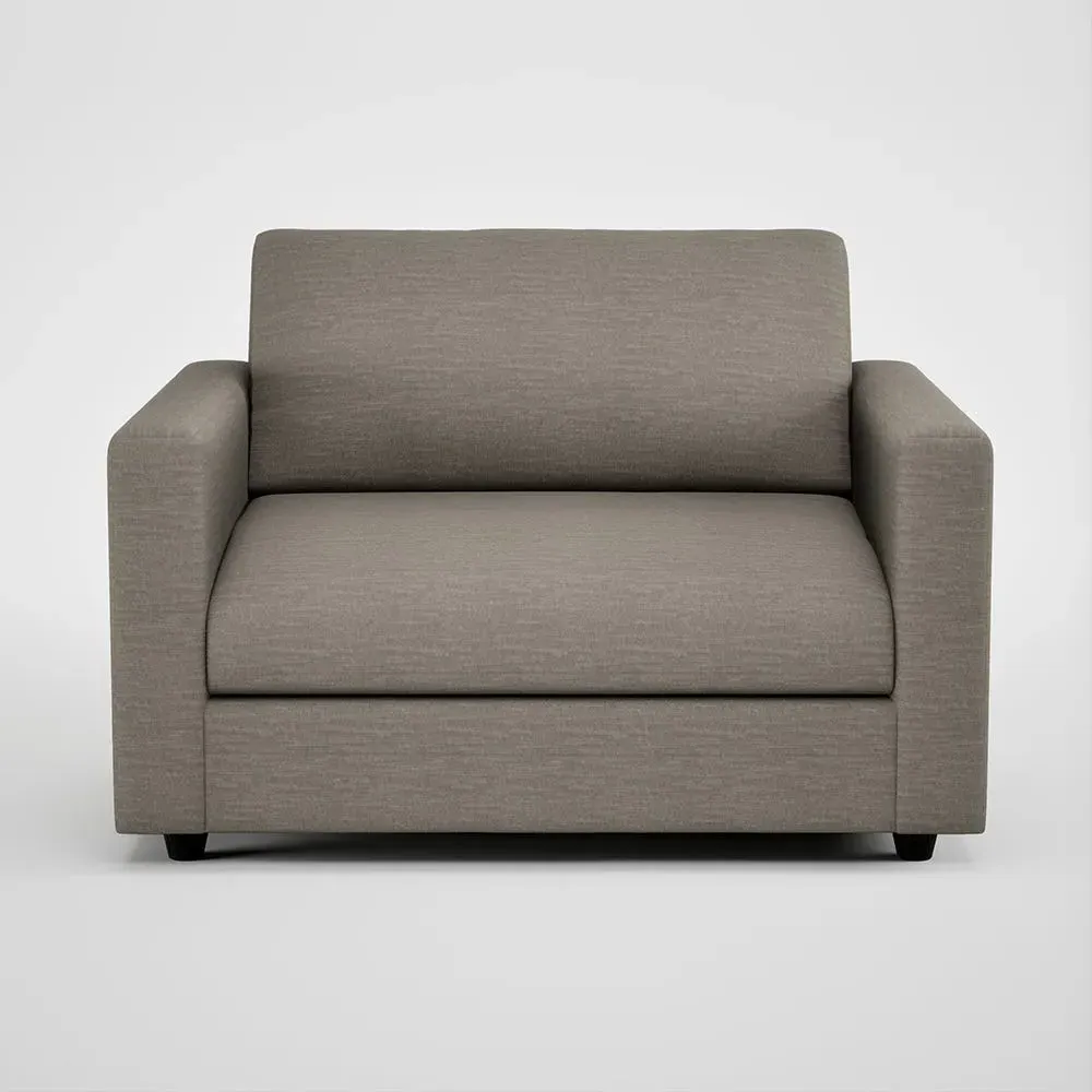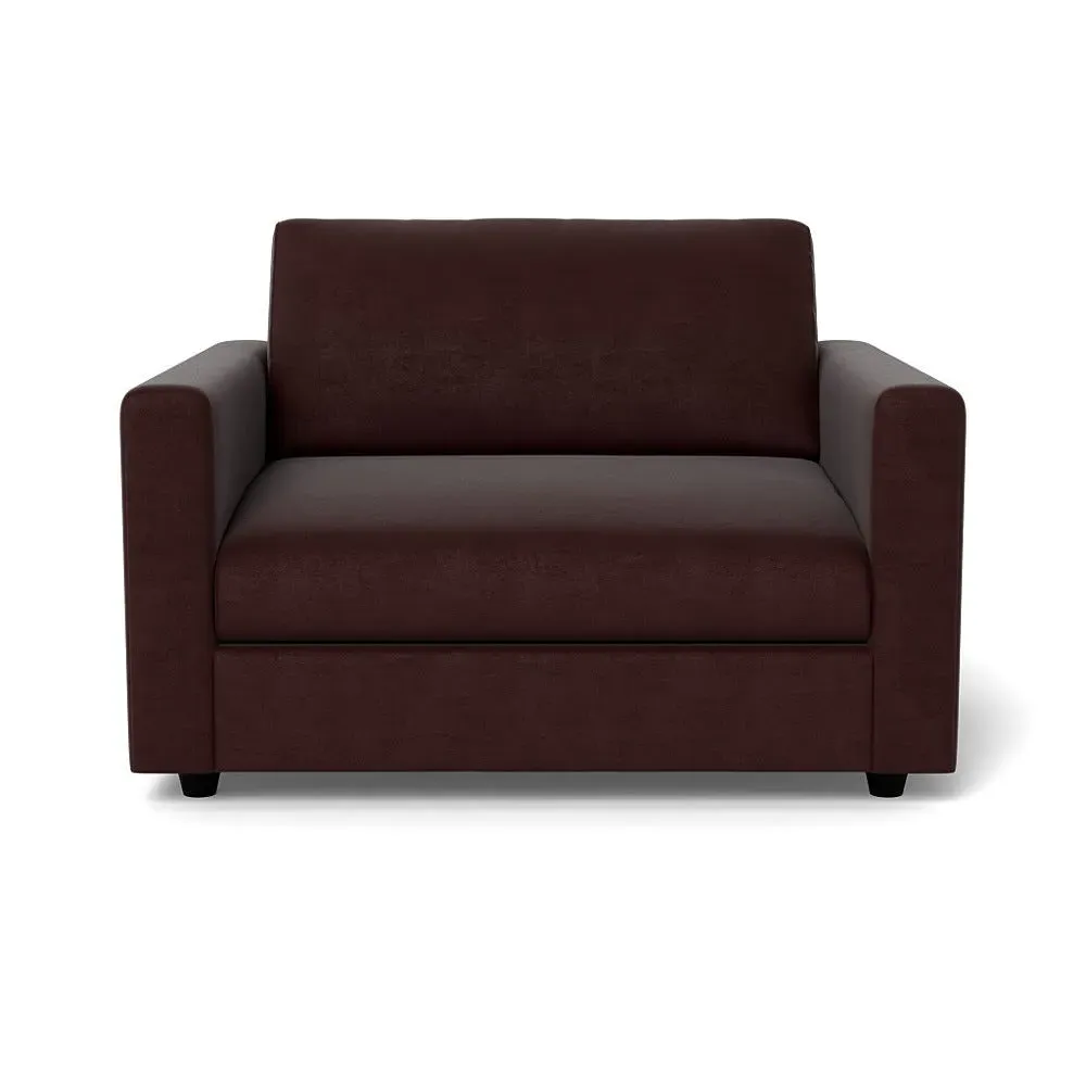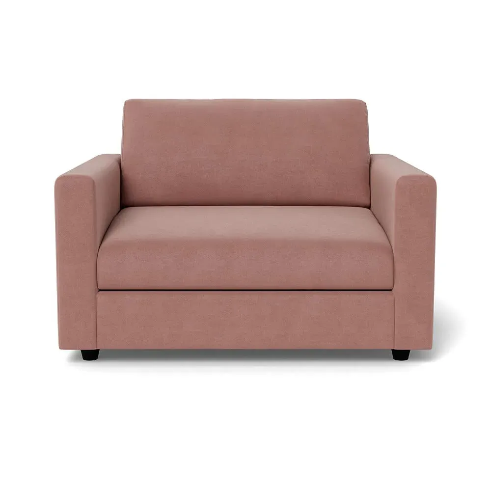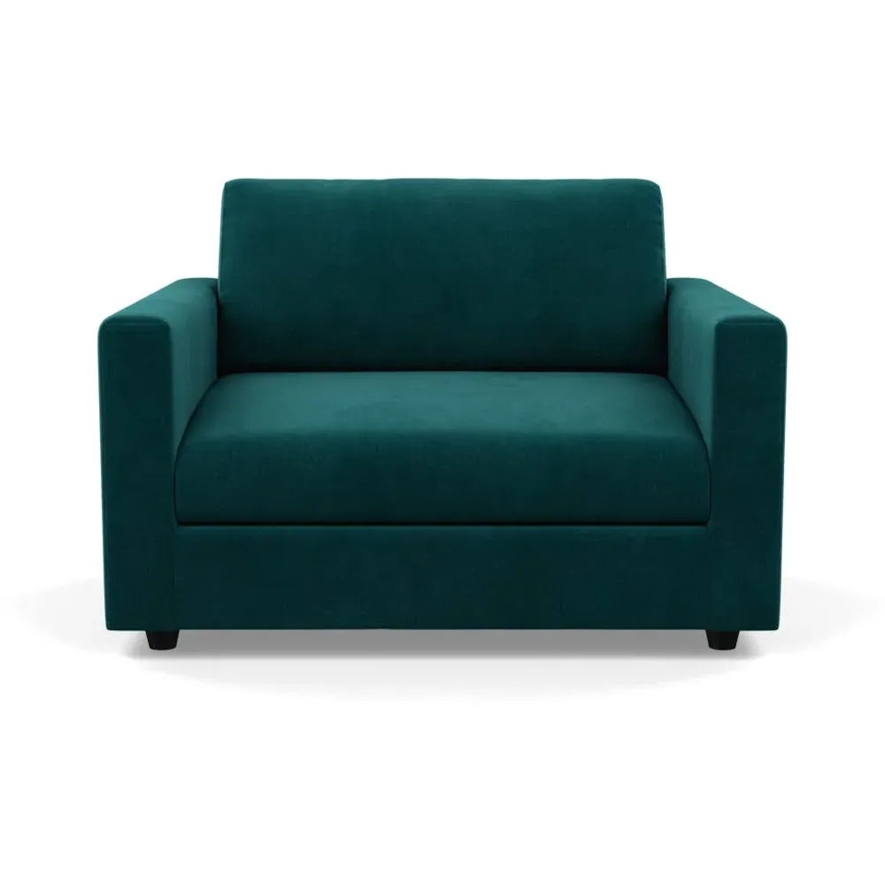 The loveseat offers generous proportions with its deep, low seating design and oversized cushions. Its feather and fibre foam seat cushions provide luxurious comfort, while the soft fibre-filled back cushions add plush support. The clean lines feature neat upholstery construction, and the black feet ensure stable foundation.
