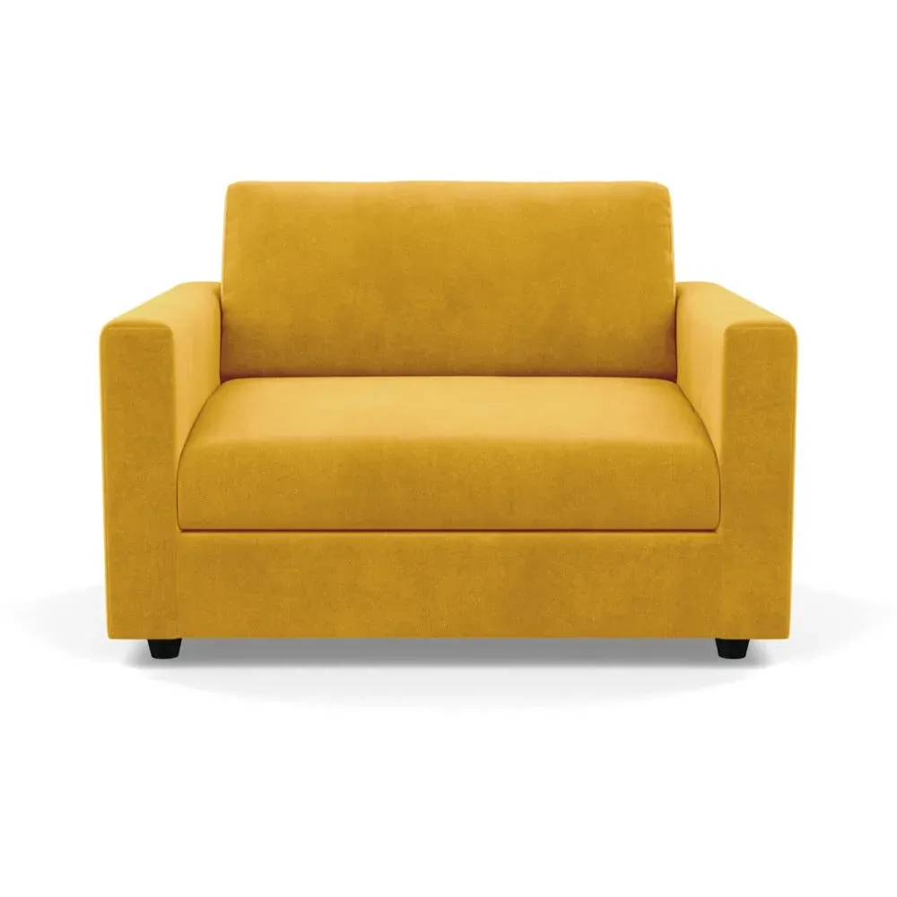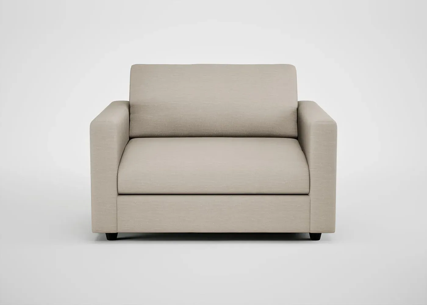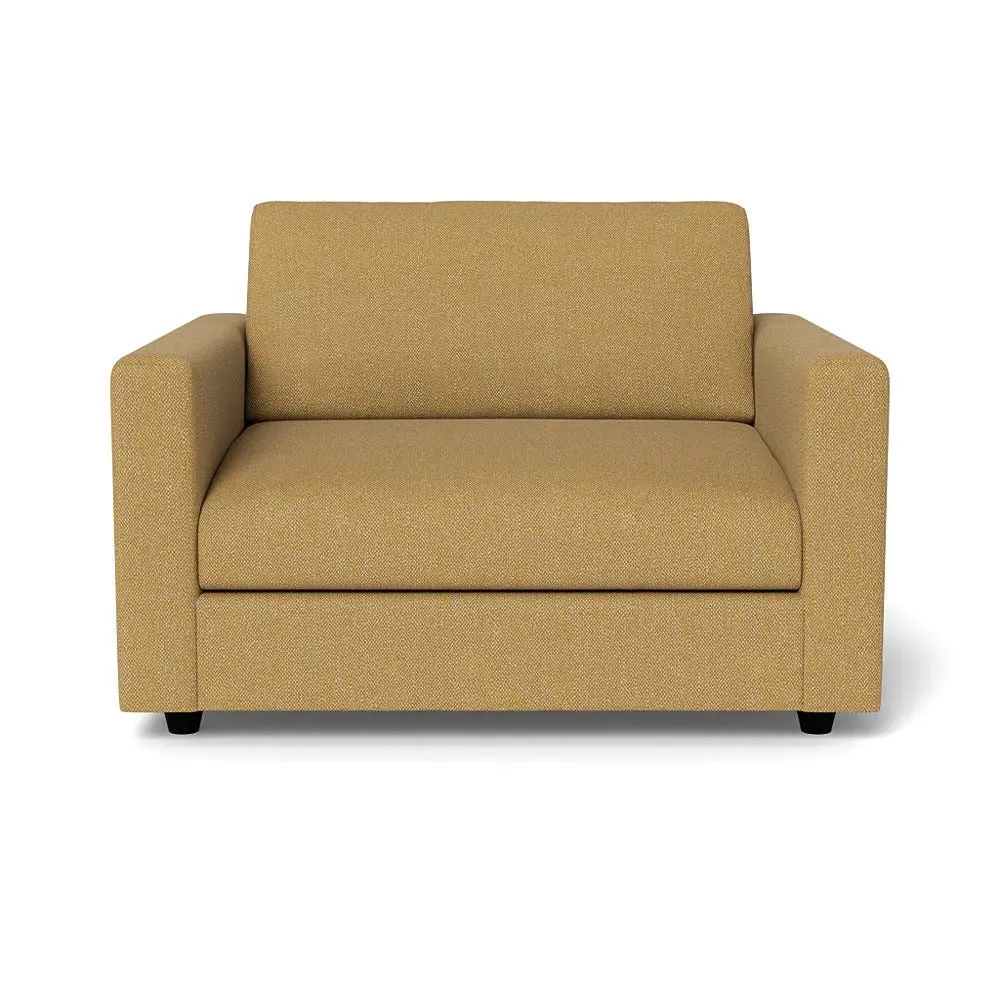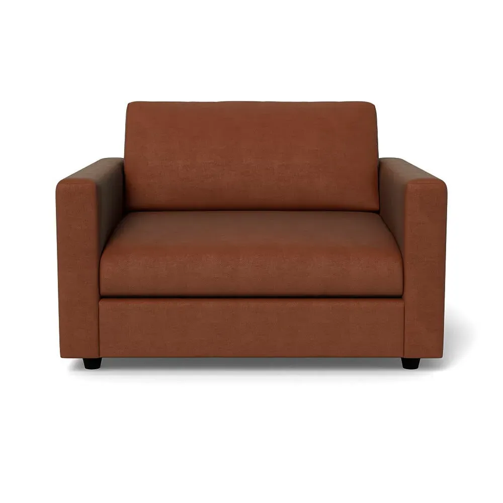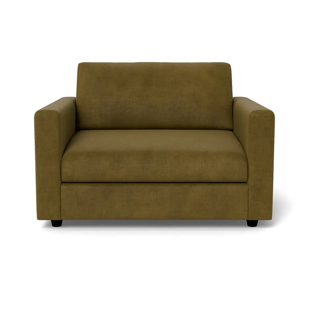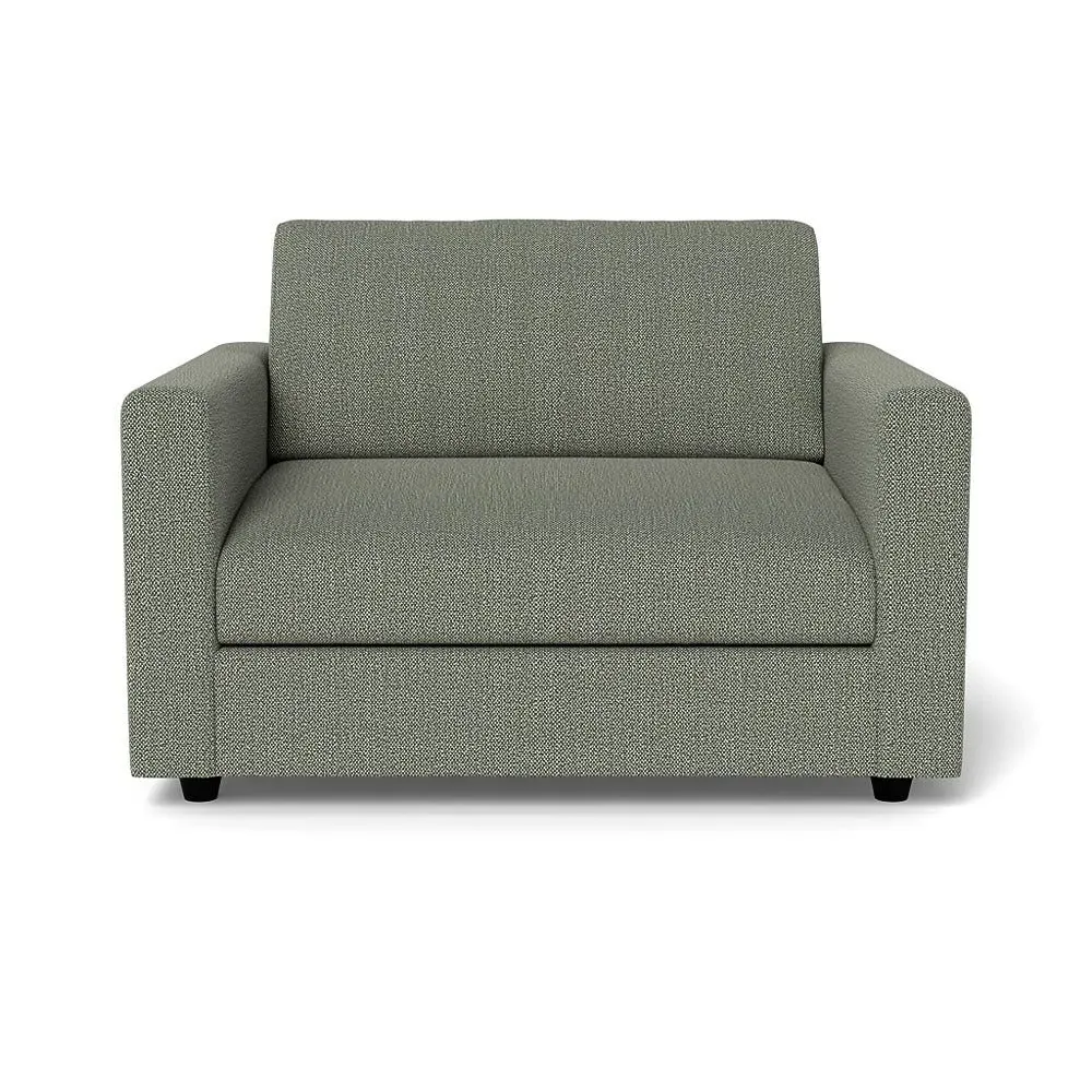 The loveseat offers generous proportions with its deep, low seating design and oversized cushions. Its feather and fibre foam seat cushions provide luxurious comfort, while the soft fibre-filled back cushions add plush support. The clean lines feature neat upholstery construction, and the black feet ensure stable foundation.