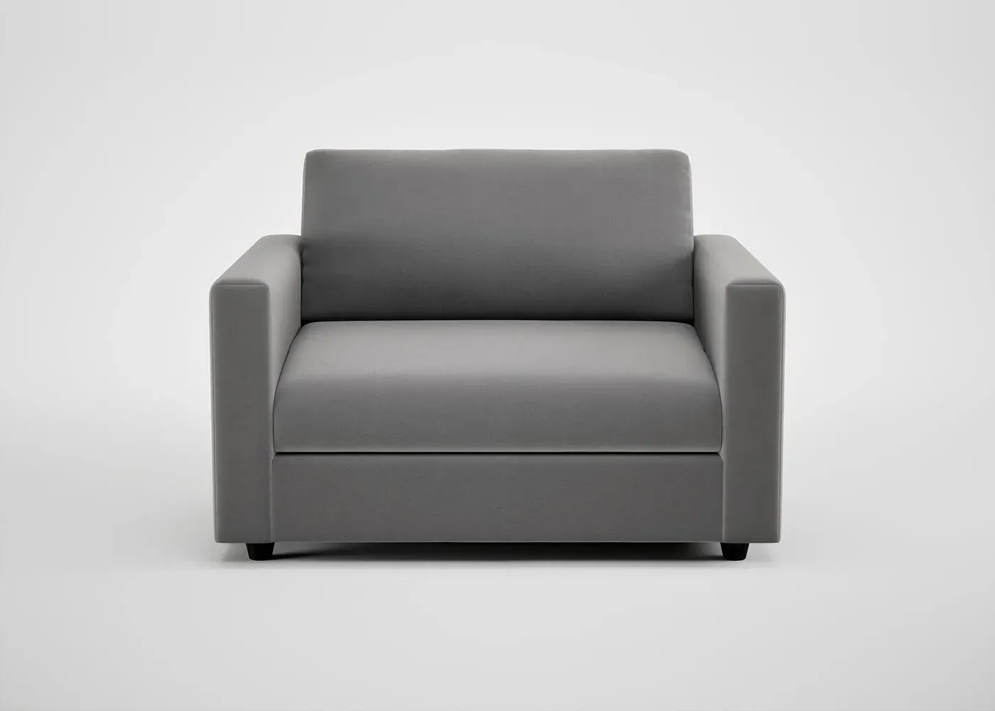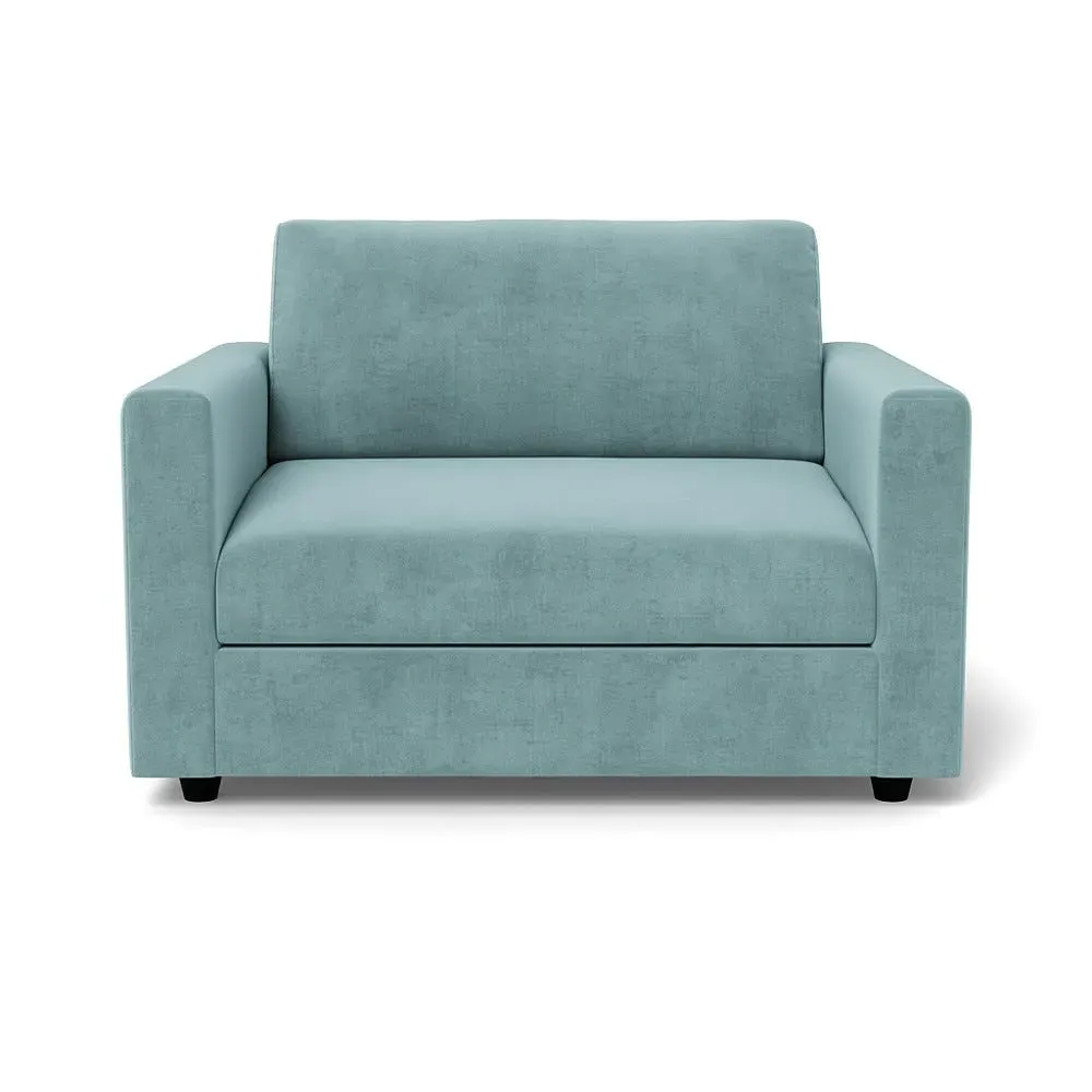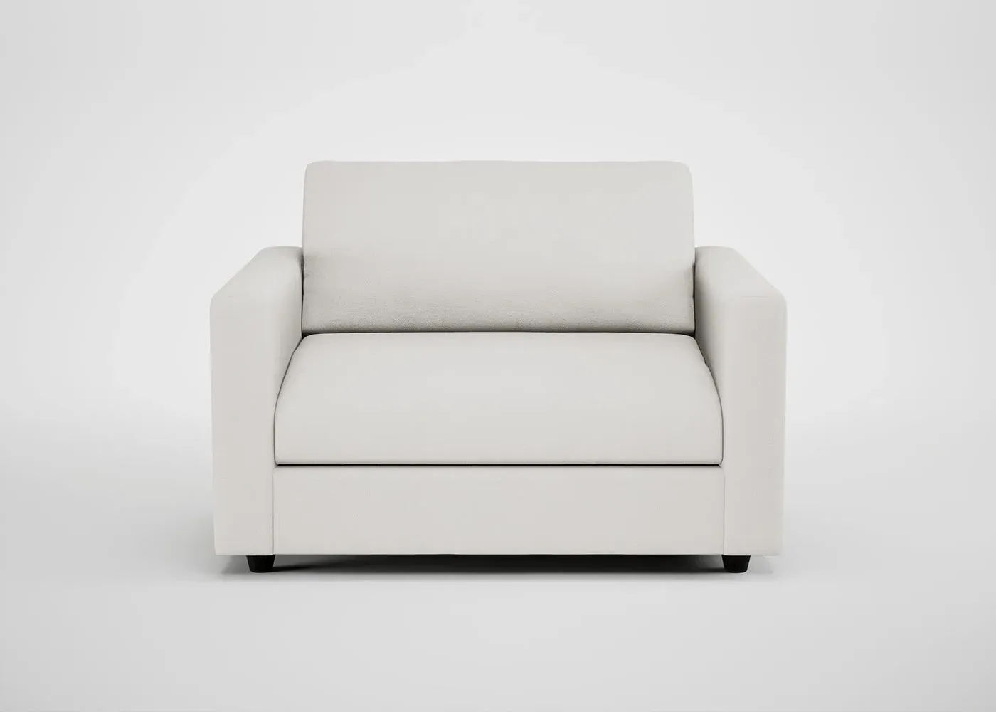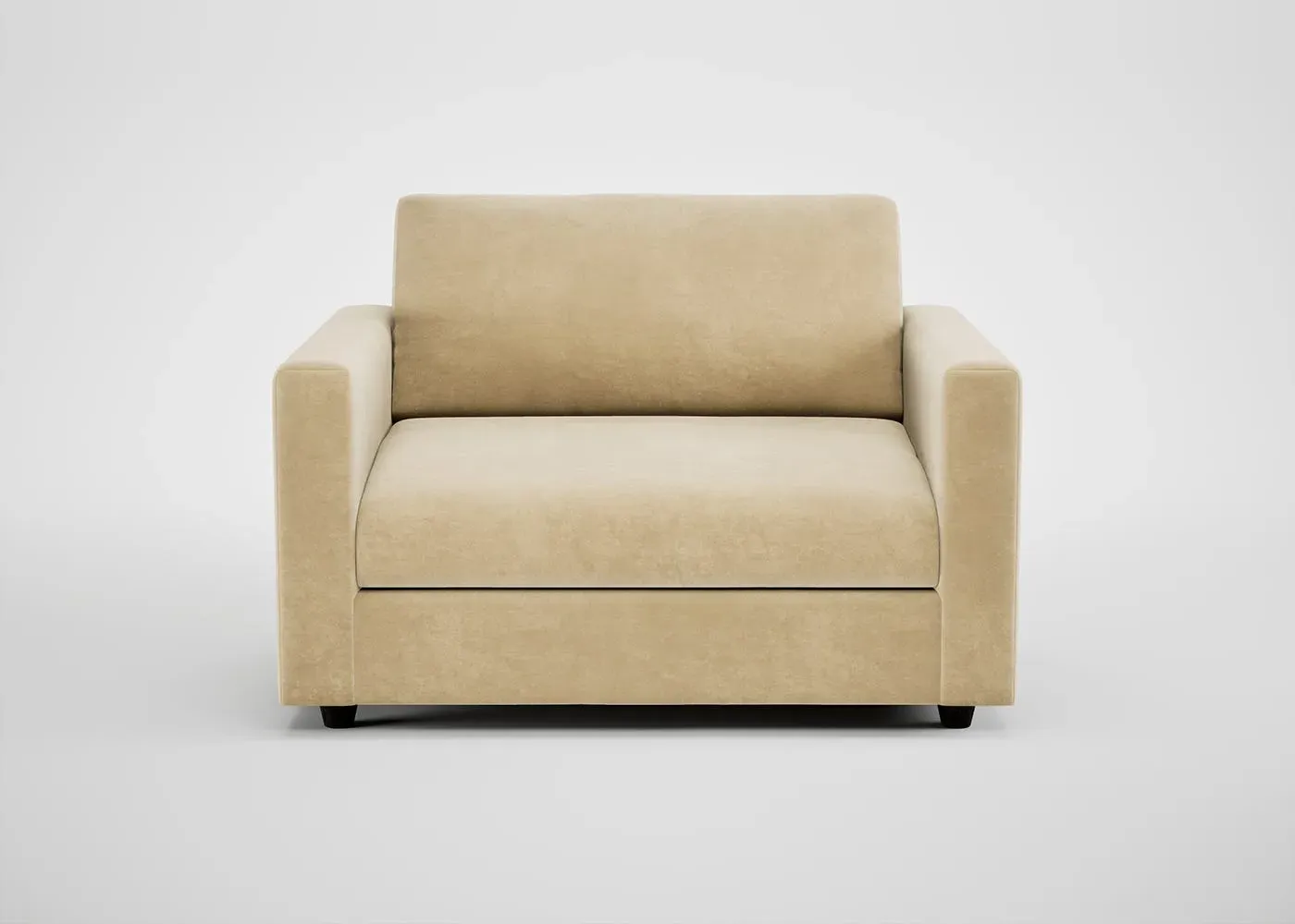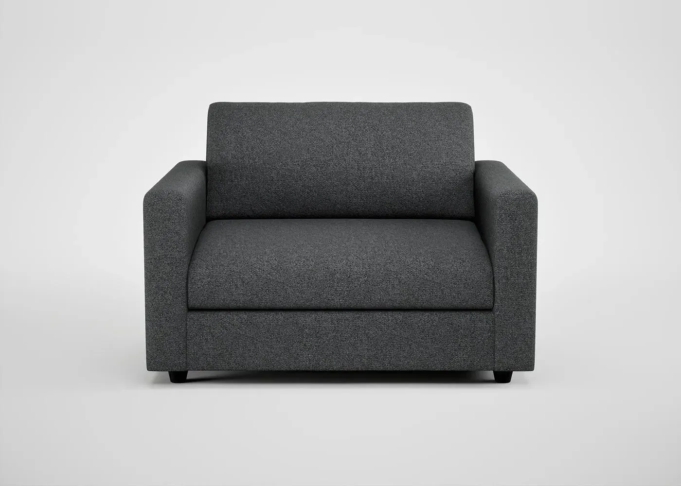 The loveseat offers generous proportions with its deep, low seating design and oversized cushions. Its feather and fibre foam seat cushions provide luxurious comfort, while the soft fibre-filled back cushions add plush support. The clean lines feature neat upholstery construction, and the black feet ensure stable foundation.
