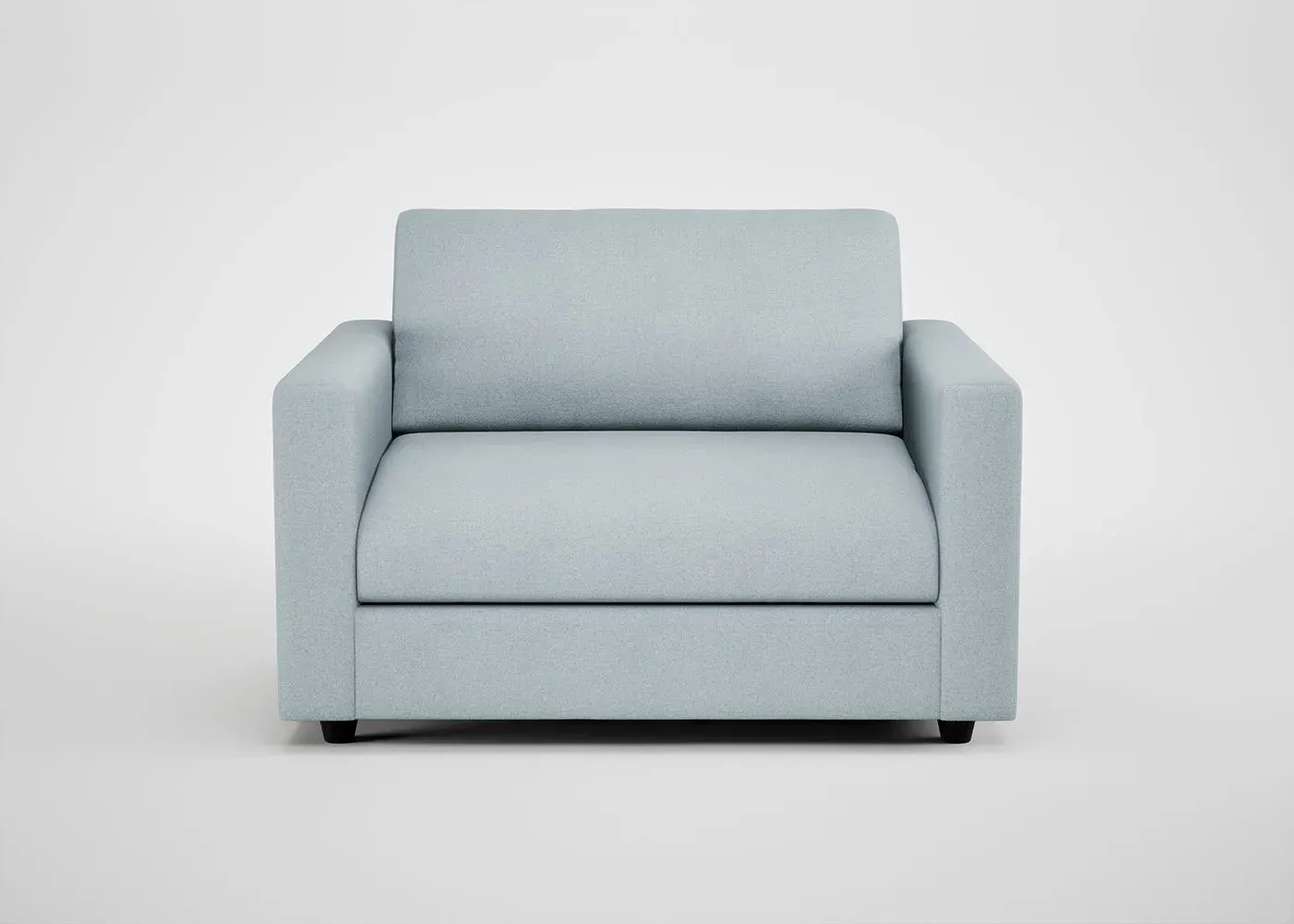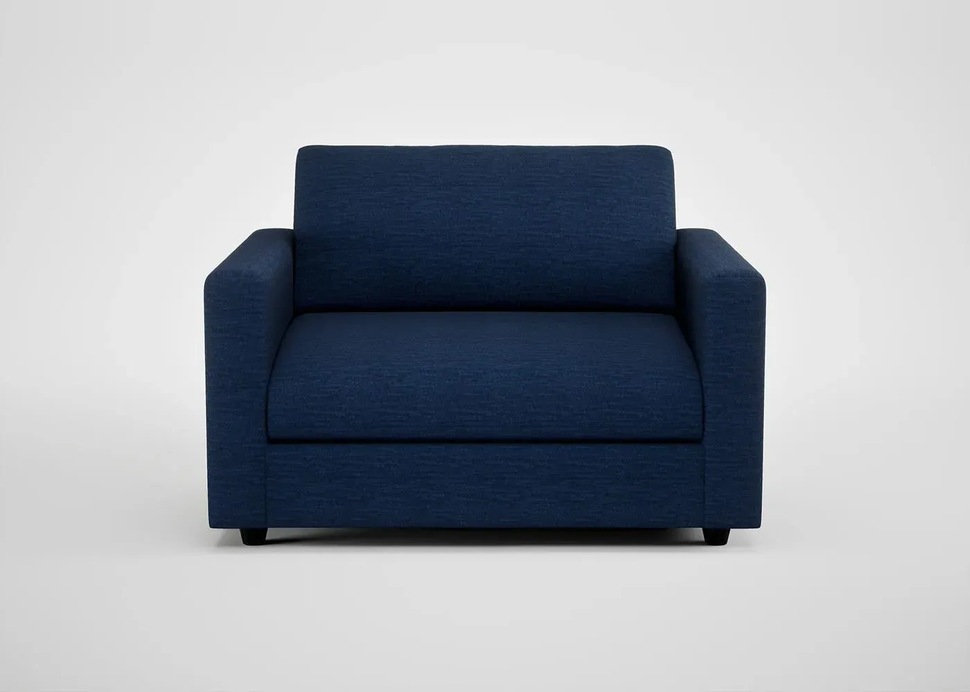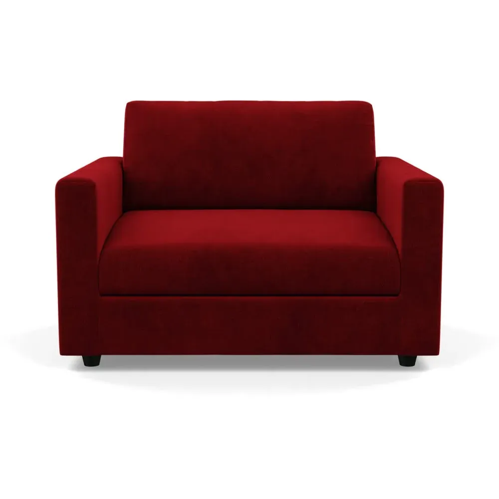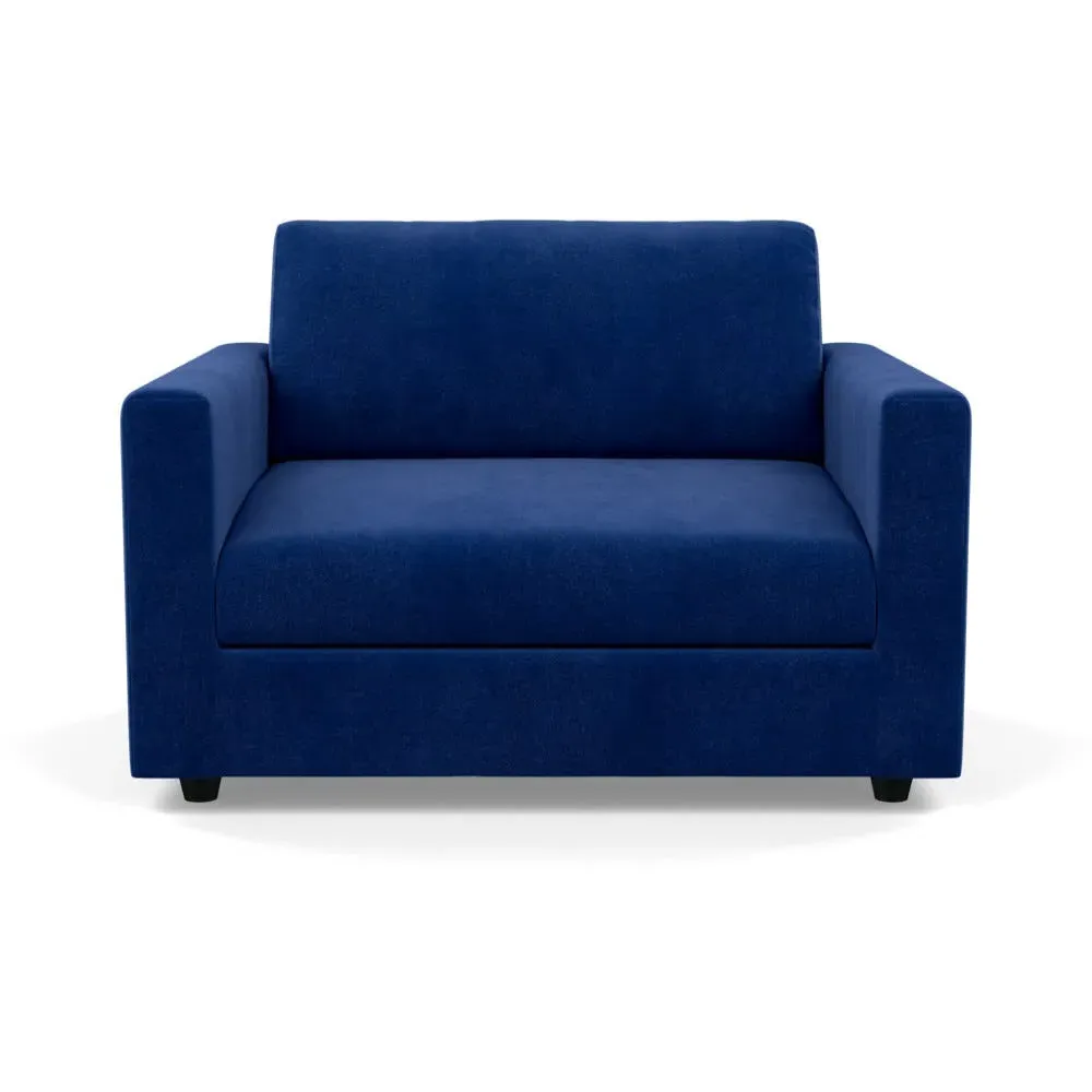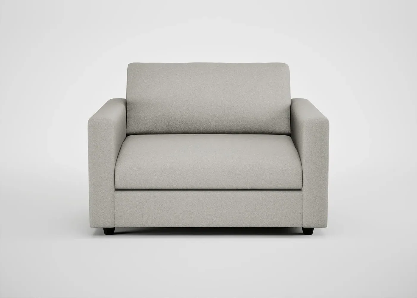 The loveseat offers generous proportions with its deep, low seating design and oversized cushions. Its feather and fibre foam seat cushions provide luxurious comfort, while the soft fibre-filled back cushions add plush support. The clean lines feature neat upholstery construction, and the black feet ensure stable foundation.