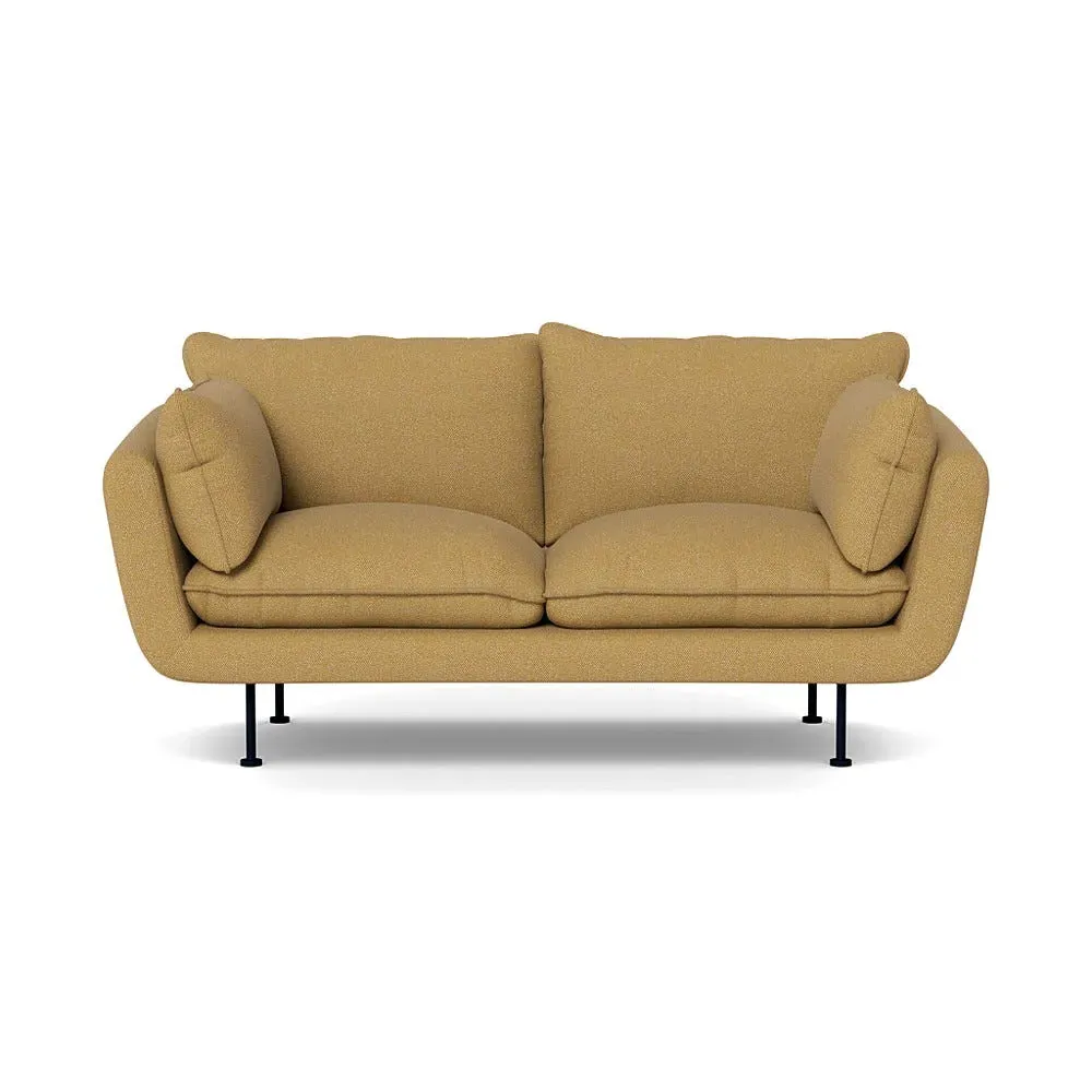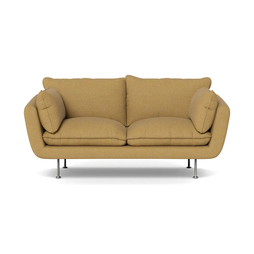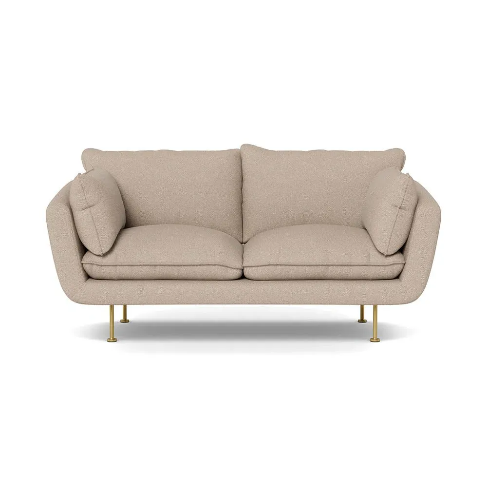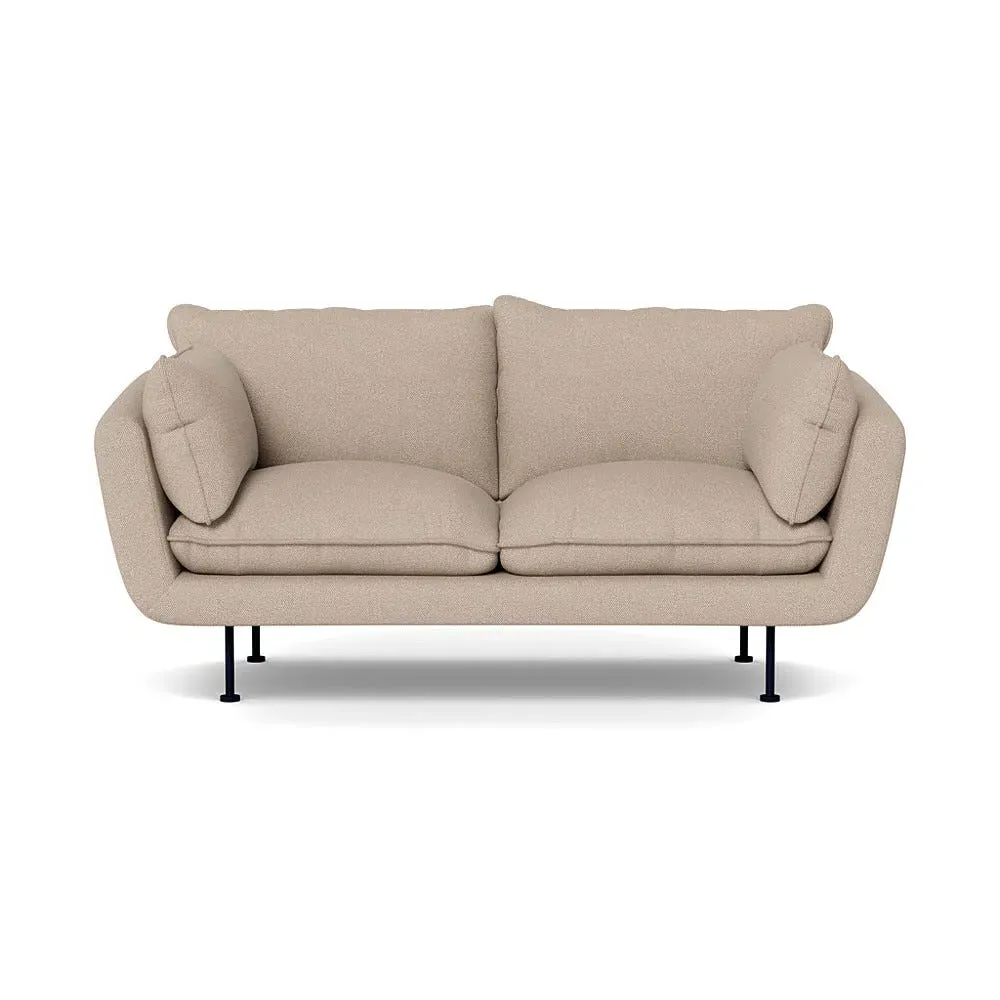 The 2-seater sofa combines comfort with its plush boucle tweed upholstery in elegant pearl tones. Its generous cushioning provides excellent support, while the stainless steel feet add contemporary appeal. The boucle fabric offers luxurious texture and durability for everyday use.