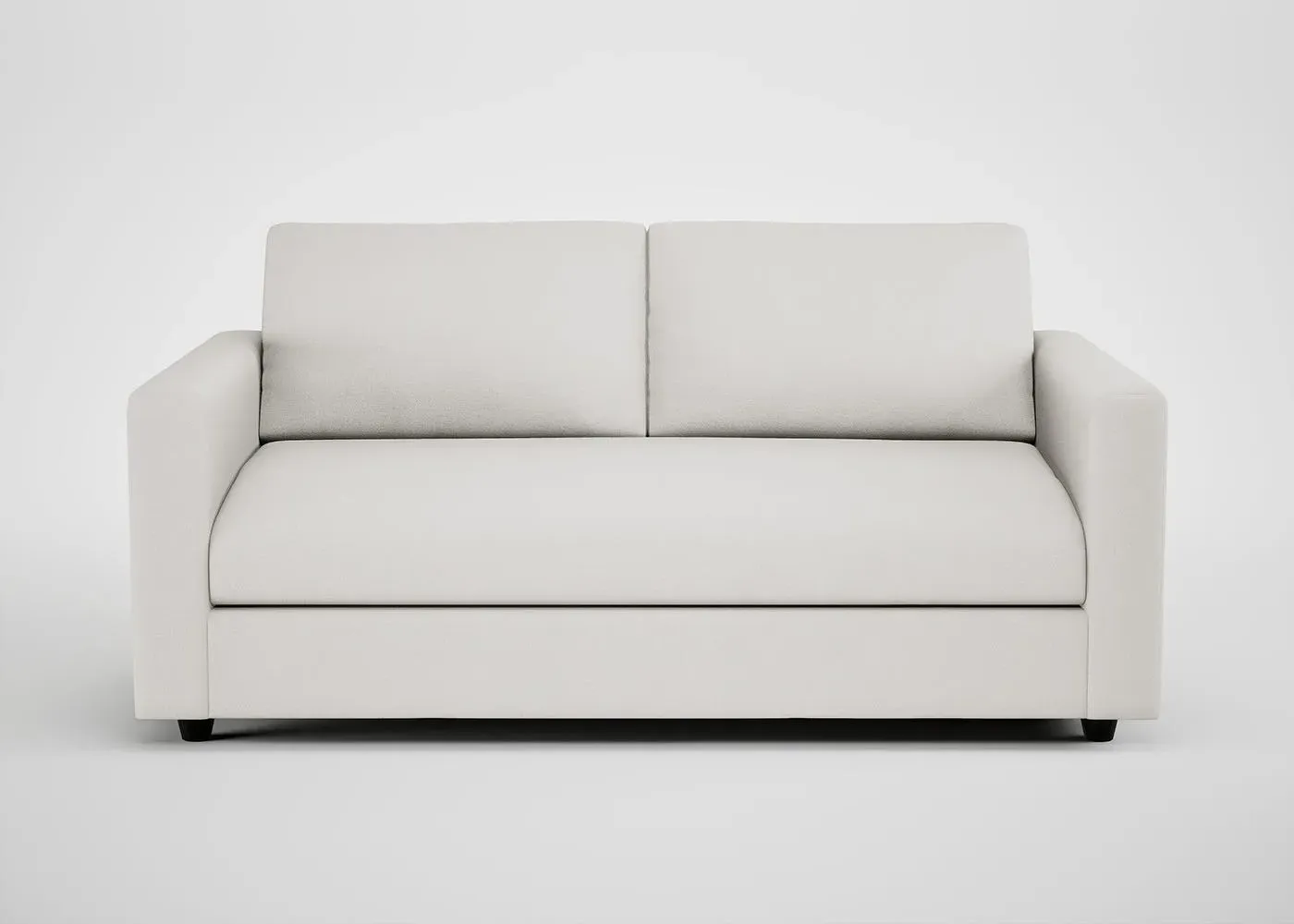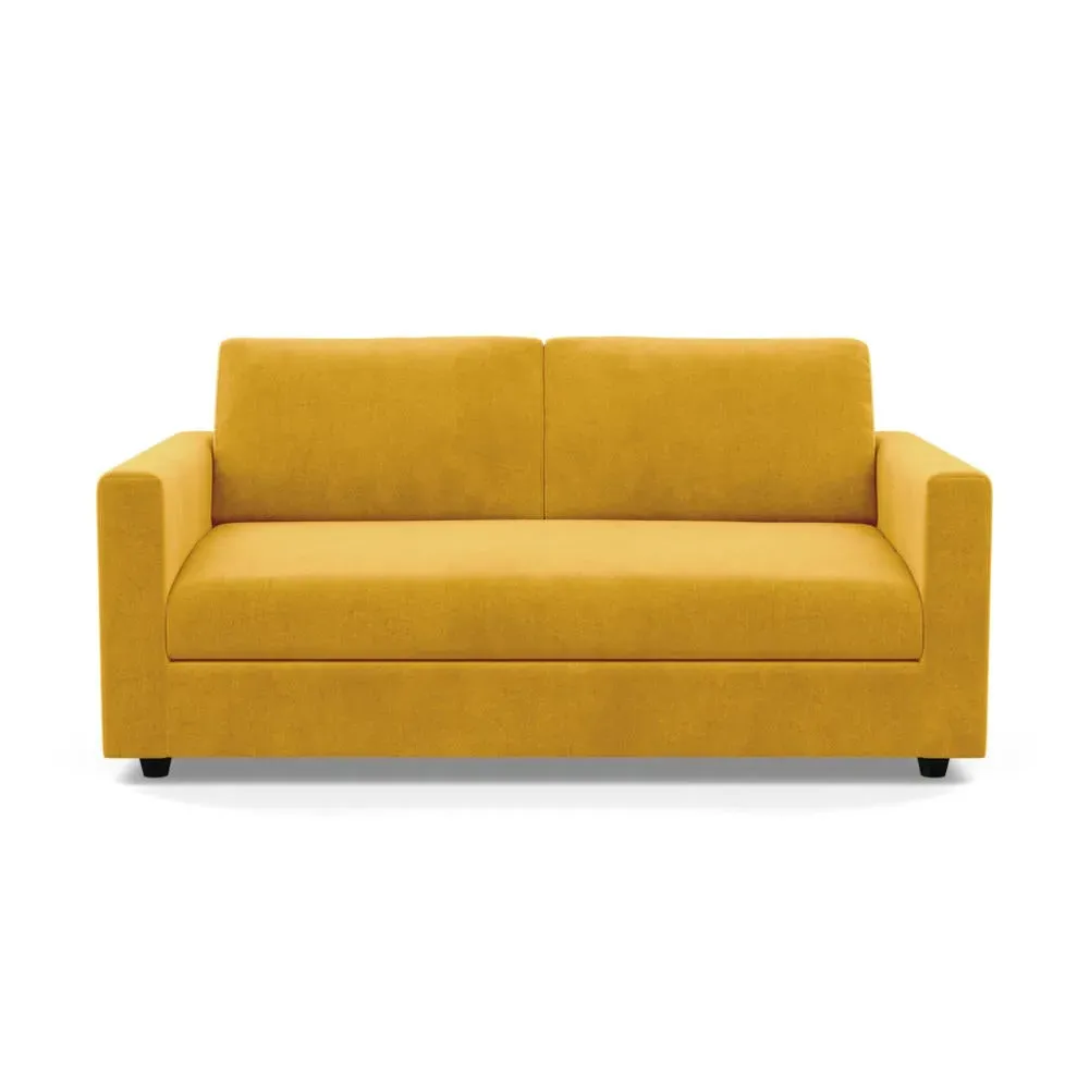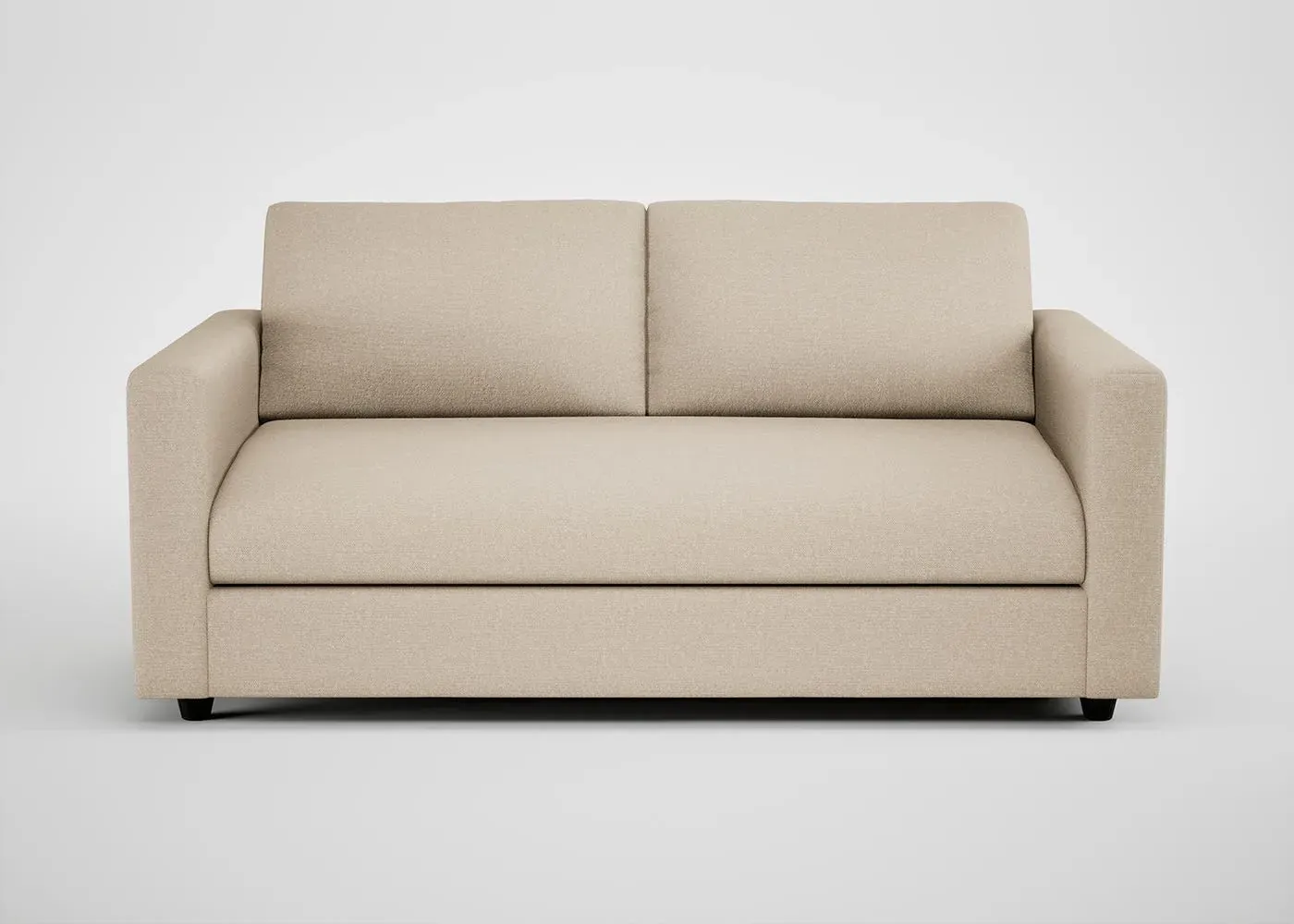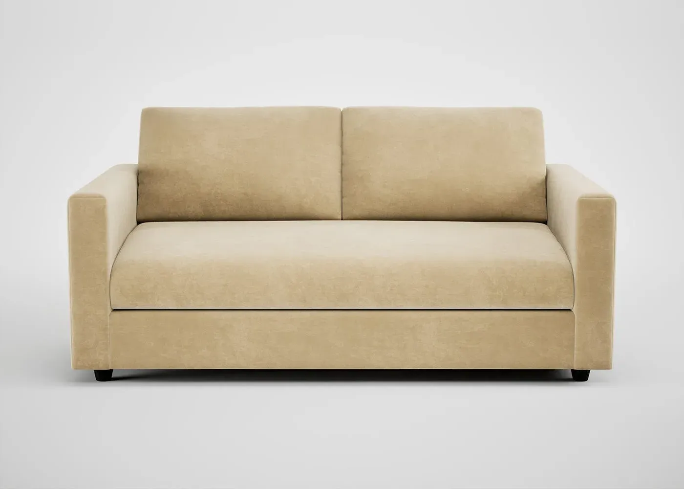 The sofa combines contemporary design with handcrafted quality, featuring a solid hardwood frame and neatly upholstered covers. Its generous proportions provide a deep, low sit with oversized feather and fibre foam seat cushions, while luxuriously soft fibre-filled back cushions add comfort. The clean lines are crafted by hand, and the black feet complement the overall design with modern appeal.