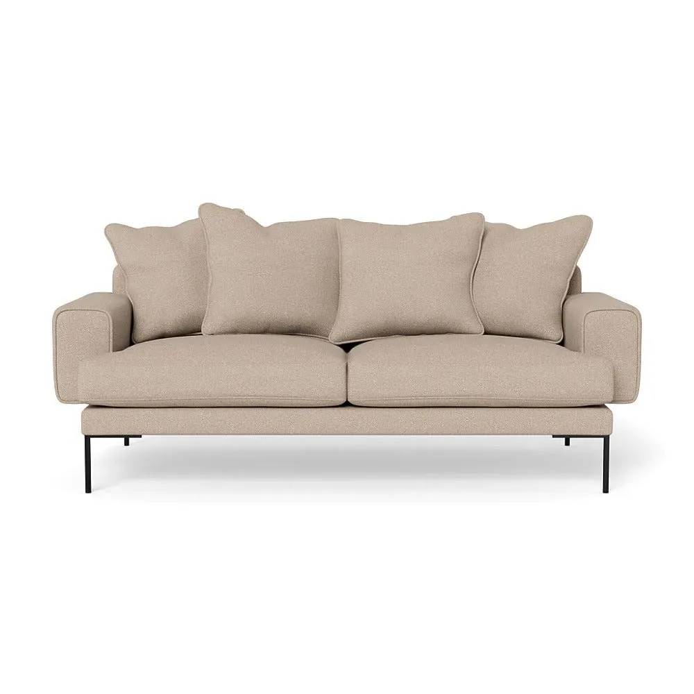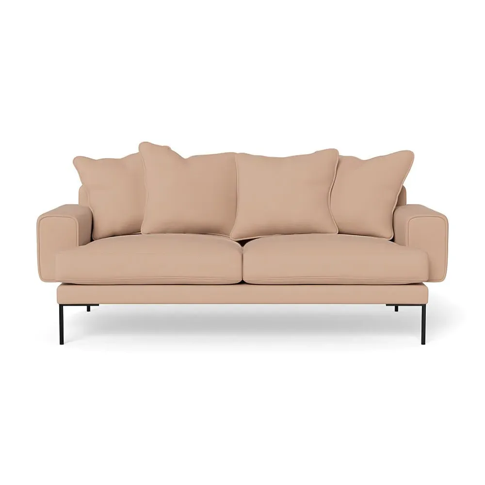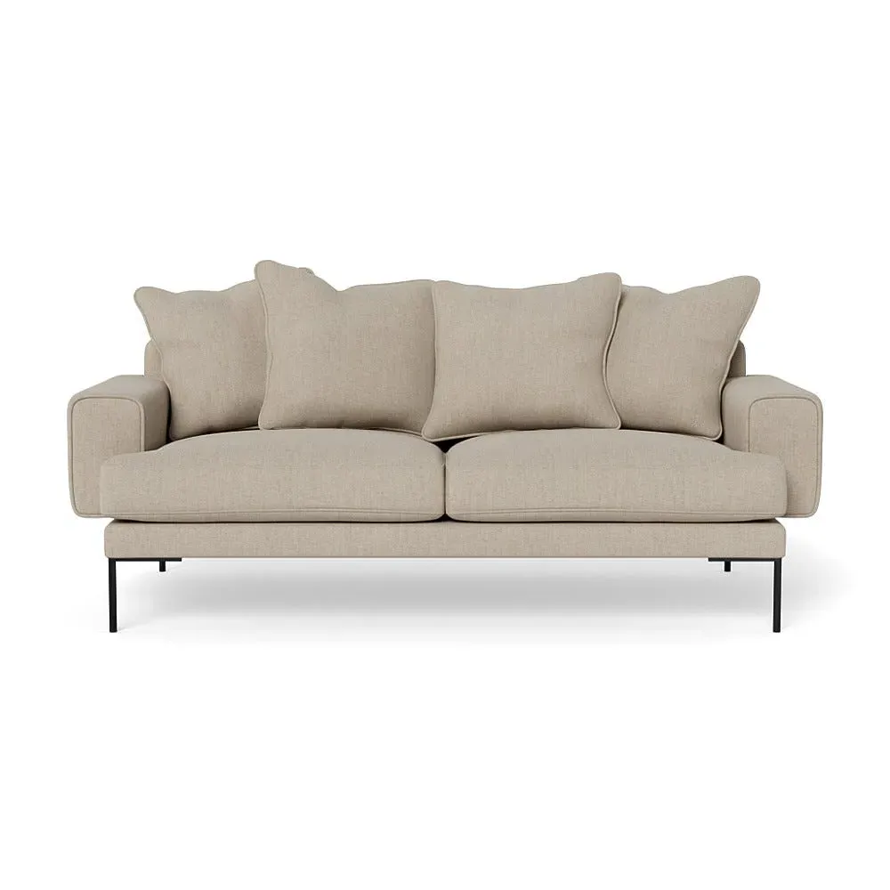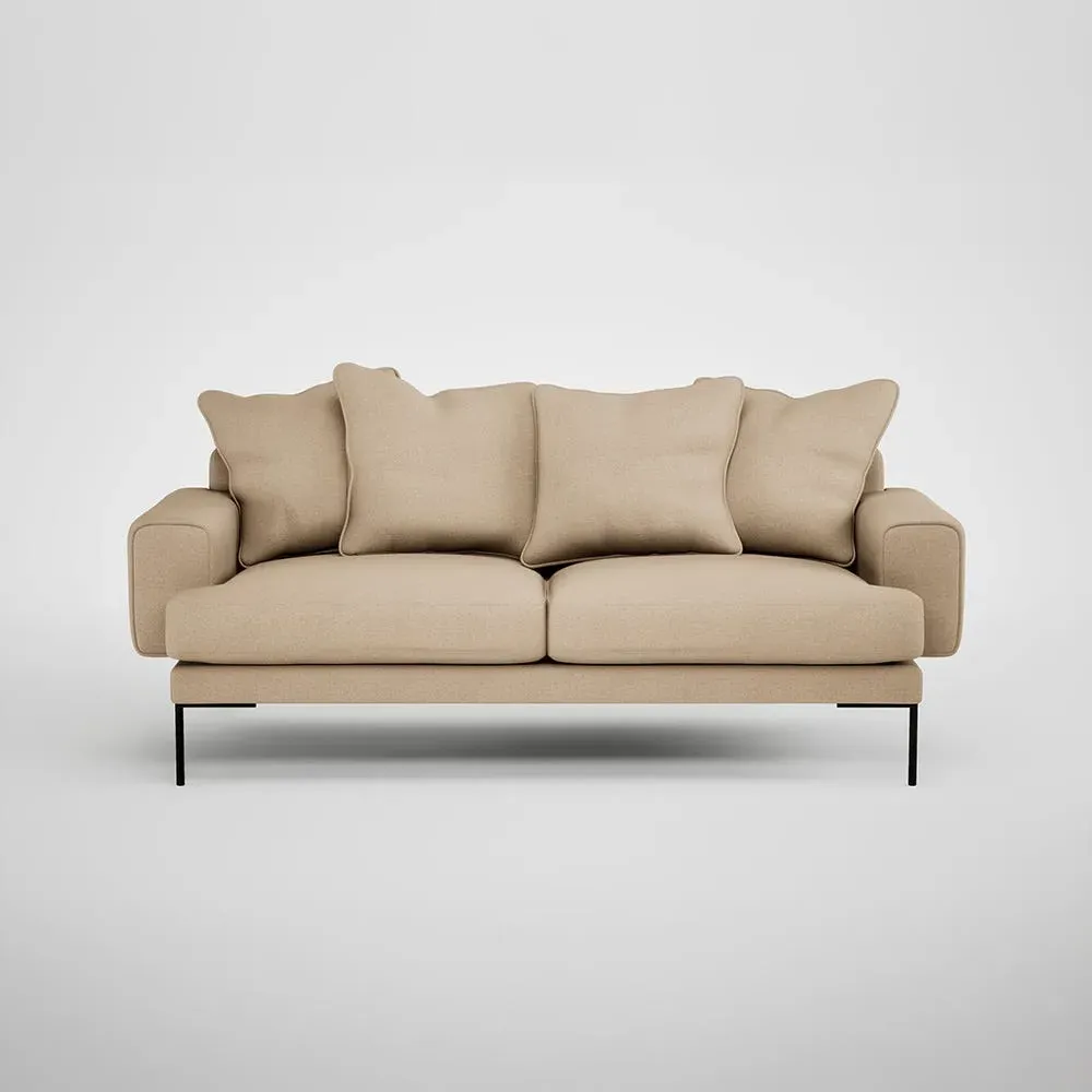 The sofa combines comfort with its soft brushed cotton upholstery in a warm oat tone. Its generous three-seater design provides ample space for relaxation, while the sleek black feet add contemporary contrast. The brushed cotton texture offers cozy comfort, and the sturdy frame ensures lasting durability.