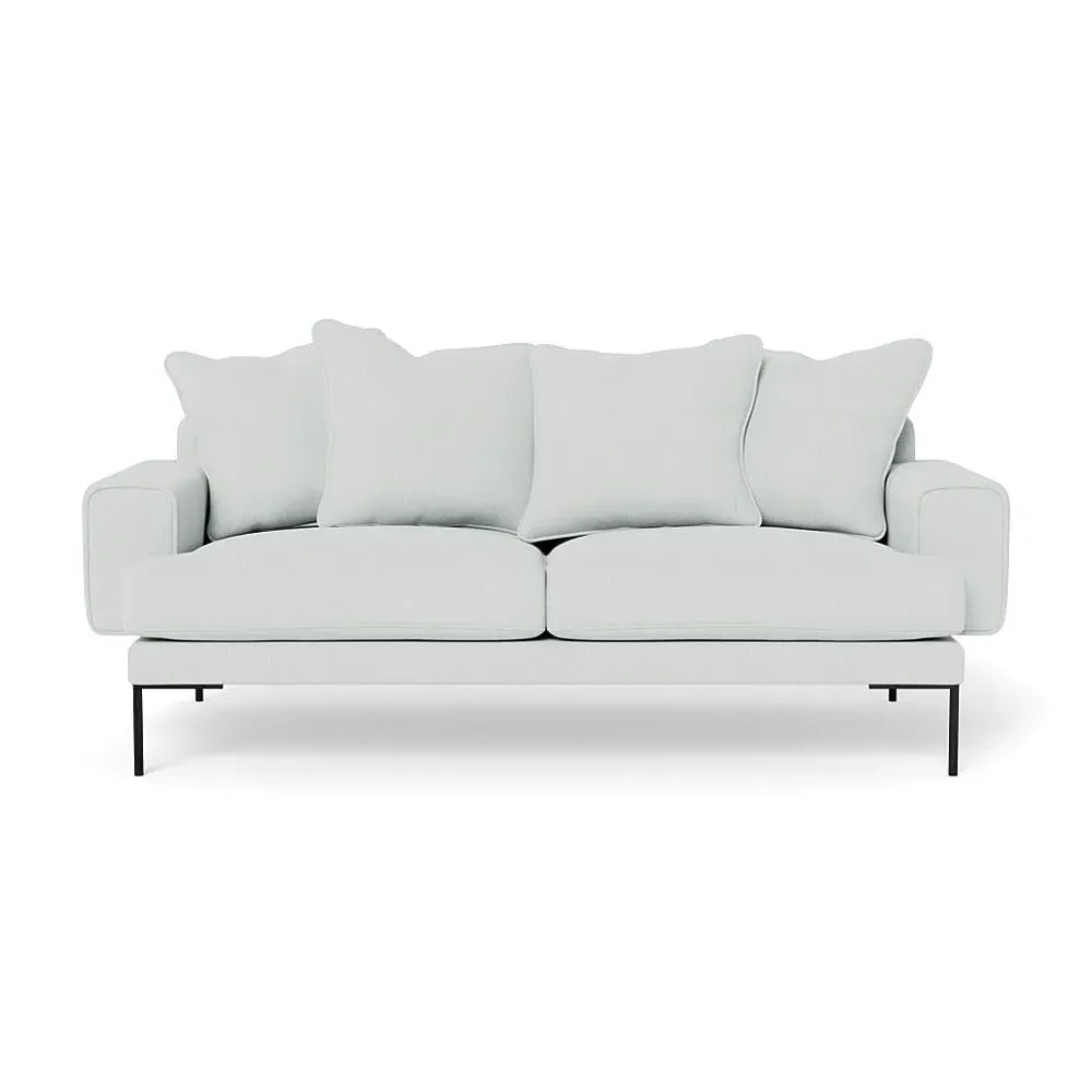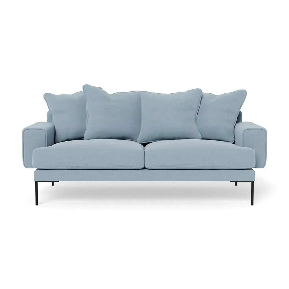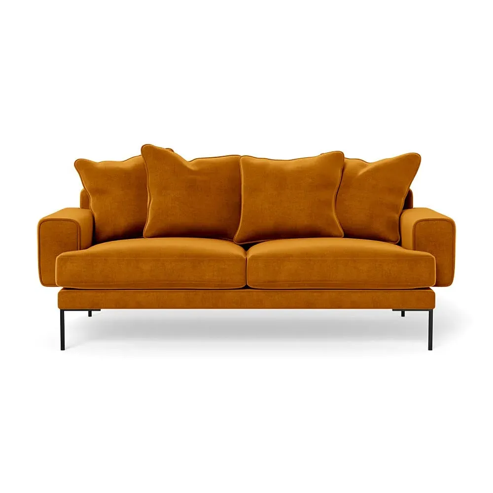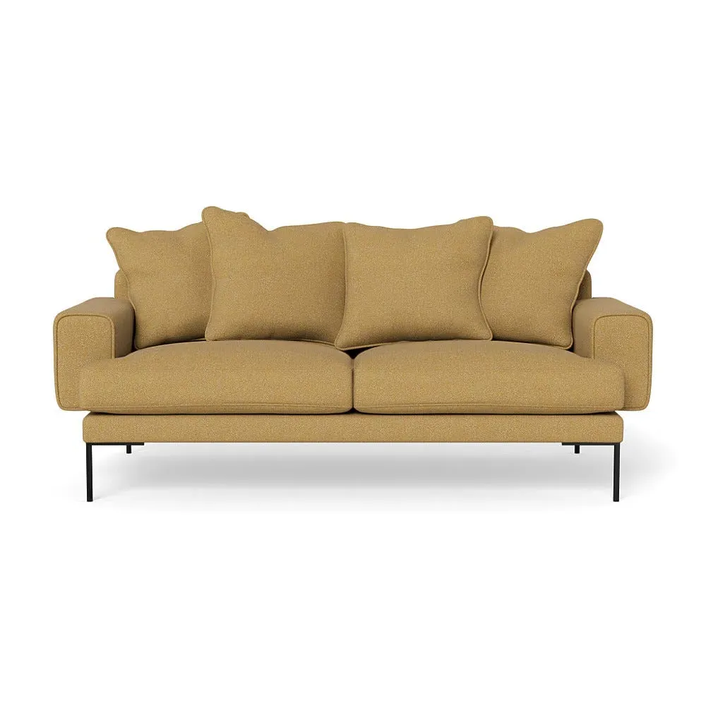 The sofa combines comfort with its soft brushed cotton upholstery in a warm oat tone. Its generous three-seater design provides ample space for relaxation, while the sleek black feet add contemporary contrast. The brushed cotton texture offers cozy comfort, and the sturdy frame ensures lasting durability.
