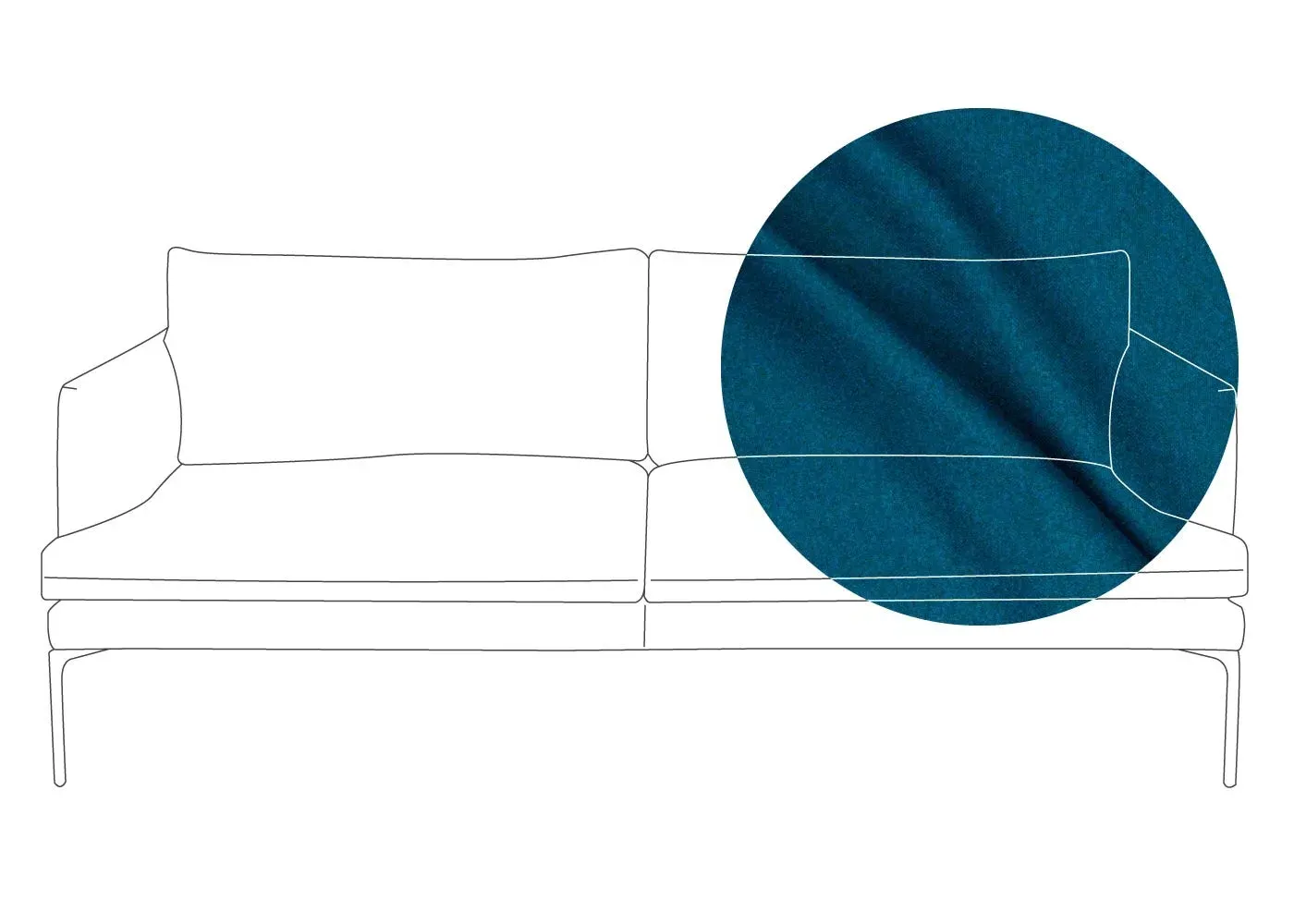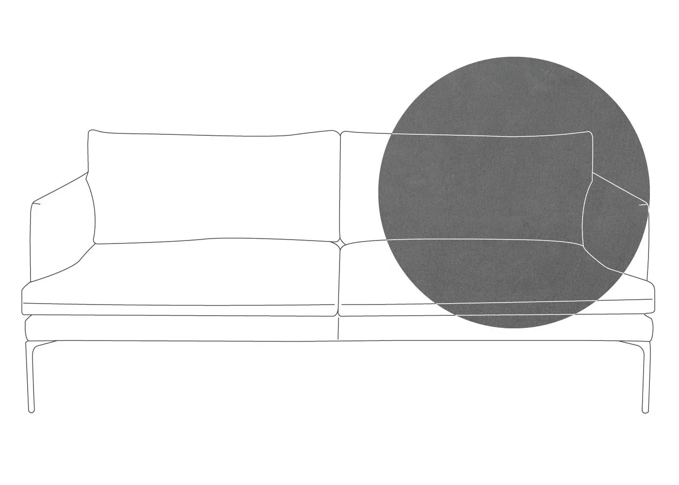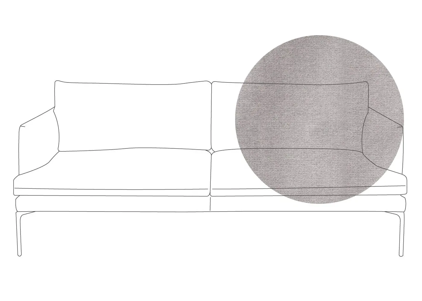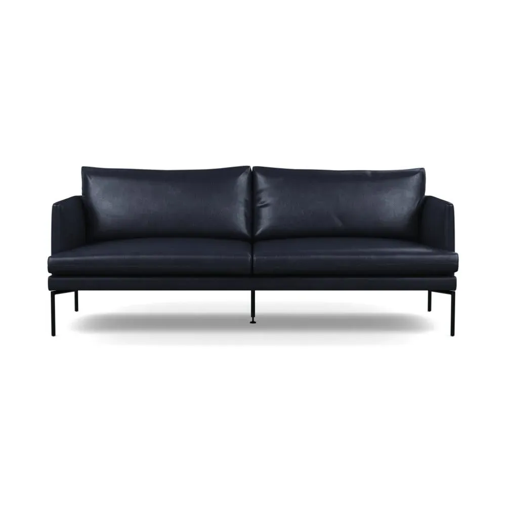 The sofa combines sleek modern design with traditional craftsmanship, featuring meticulously hand-sewn pleated details on the seat, arms and back cushion. Its curved back adds elegance to the silhouette, while the metal legs with fifth centre support provide enhanced stability. The compact design offers generous seating space with clean lines and astute attention to detail.