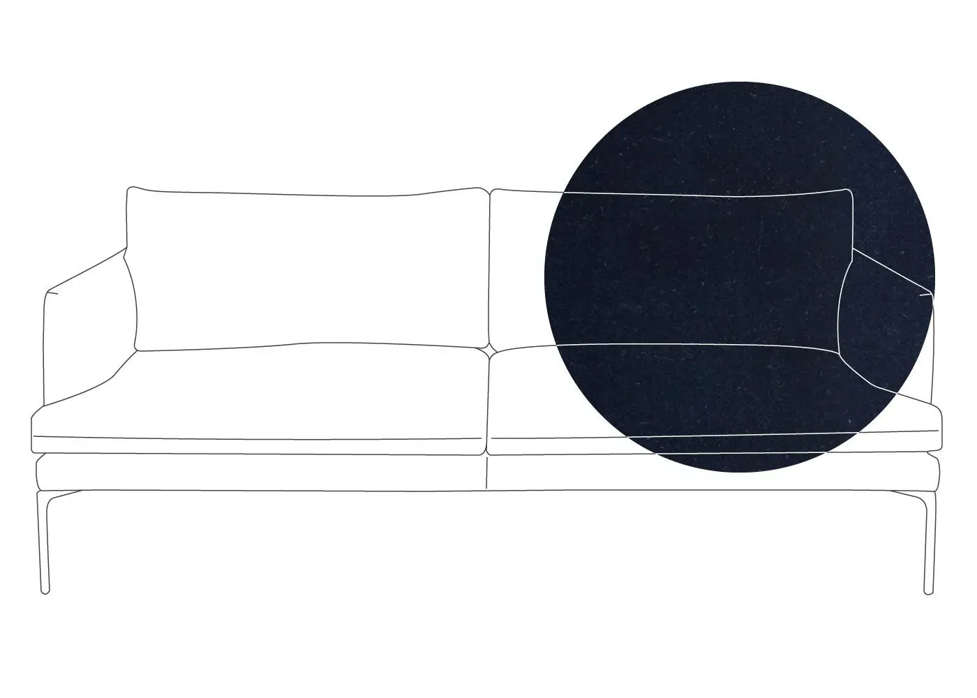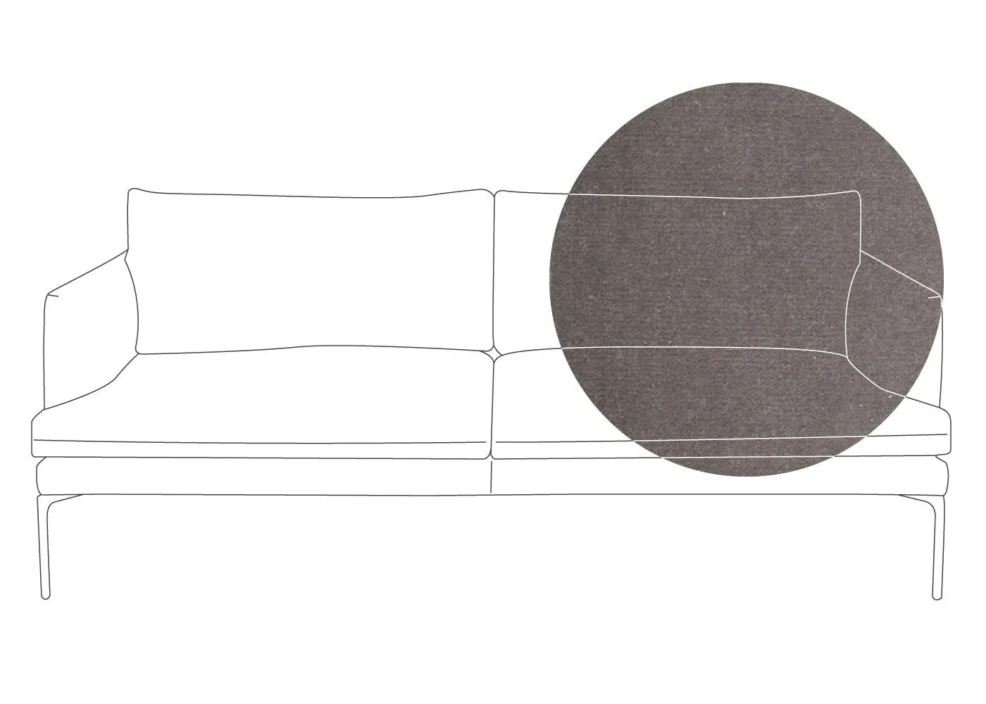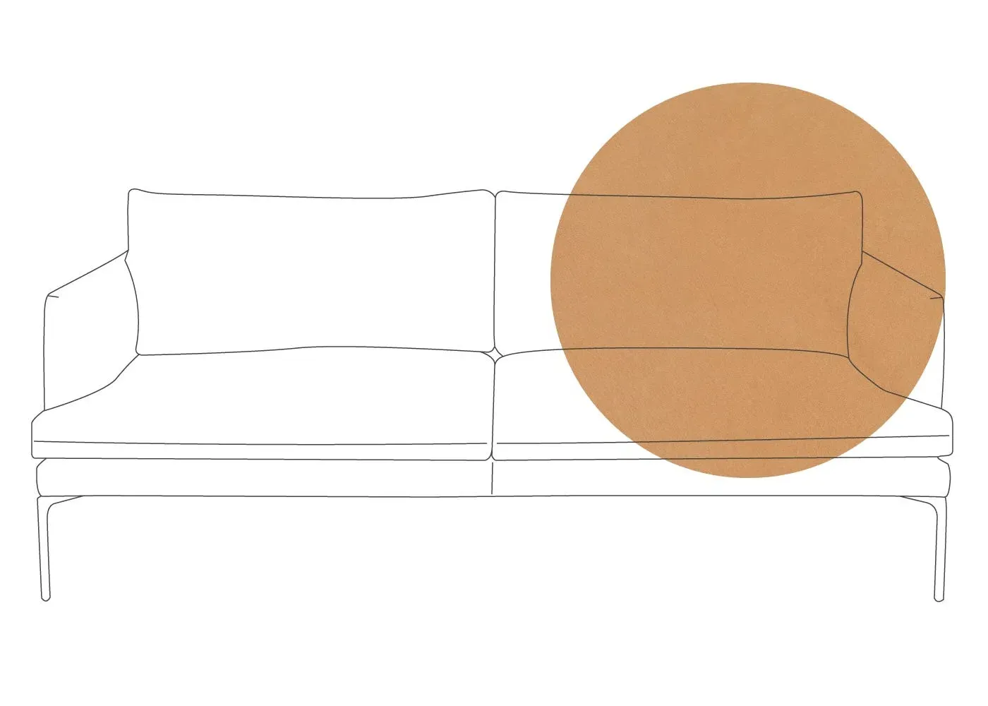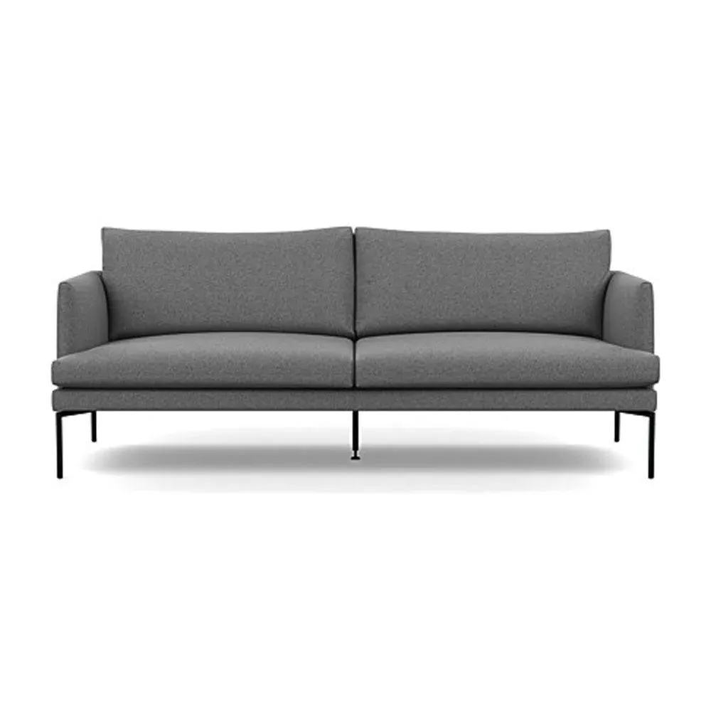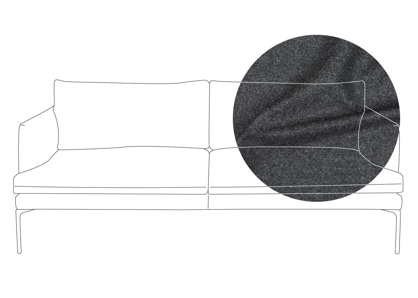 The sofa combines sleek modern design with traditional craftsmanship, featuring meticulously hand-sewn pleated details on the seat, arms and back cushion. Its curved back adds elegance to the silhouette, while the metal legs with fifth centre support provide enhanced stability. The compact design offers generous seating space with clean lines and astute attention to detail.