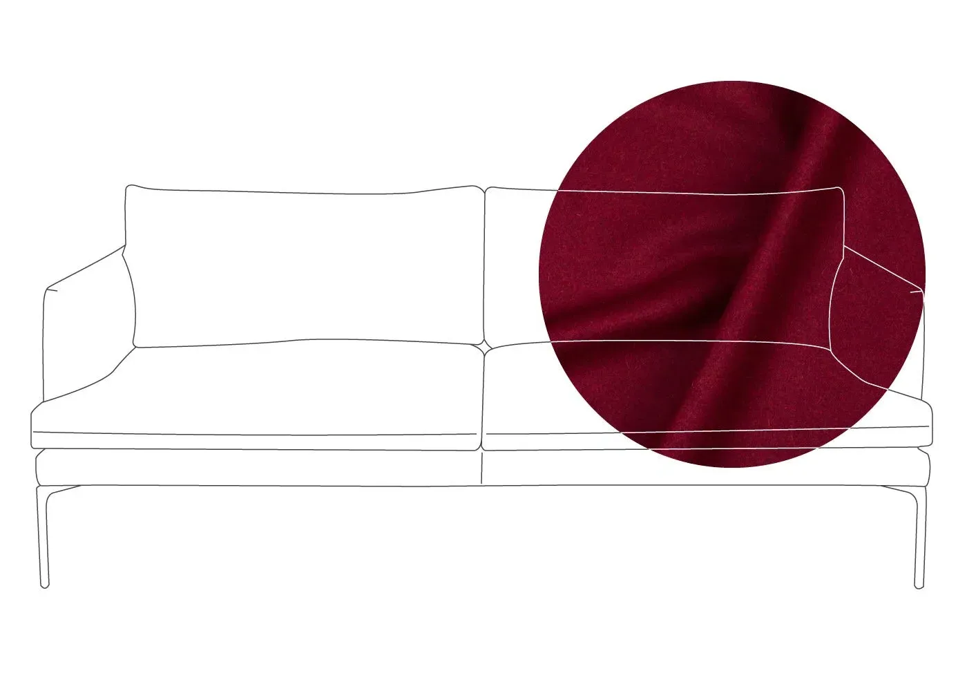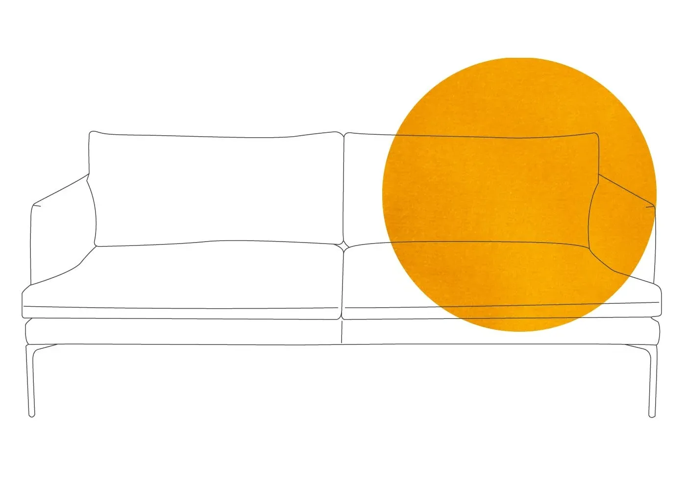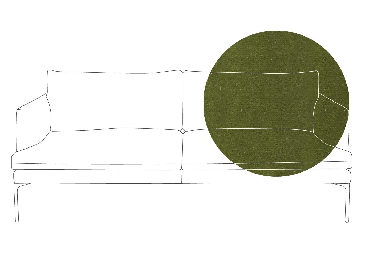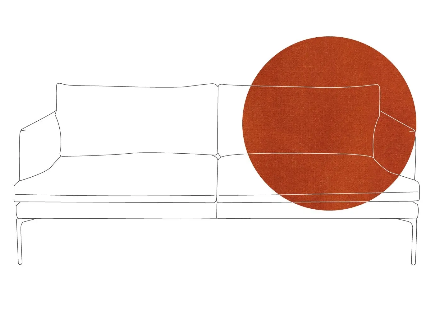 The sofa combines sleek modern design with traditional craftsmanship, featuring meticulously hand-sewn pleated details on the seat, arms and back cushion. Its curved back adds elegance to the silhouette, while the metal legs with fifth centre support provide enhanced stability. The compact design offers generous seating space with clean lines and astute attention to detail.