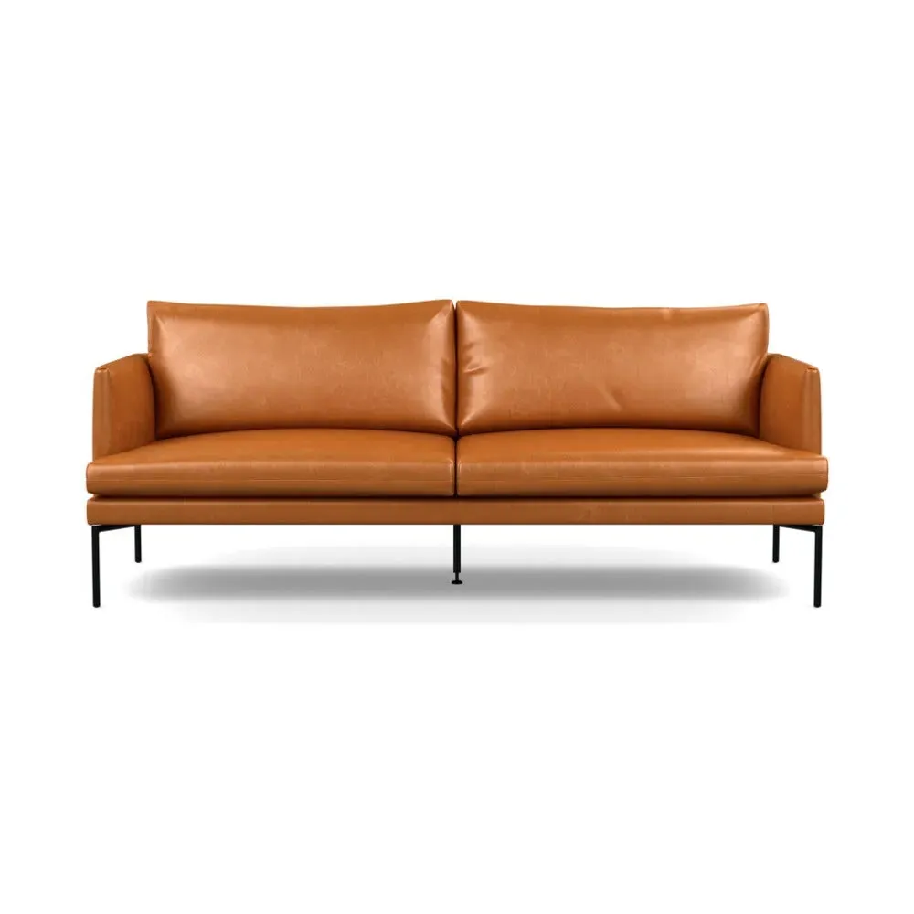 The Matera sofa has a sleek and modern design made with traditional craftsmanship. Taking its name from the southern Italian town in which it is built, its design has all the characteristics of contemporary Italian furniture; clean lines, metal legs and astute attention to detail. The seat, arms and back cushion each have a beautiful pleated detail that is meticulously hand-sewn and the back of the sofa has the slightest of curves which adds to its already elegant silhouette. Upholstered in a buttery, soft leather, the Matera sofa is a masterclass in contemporary design, and provides a generous seating space within a compact footprint. <br><br> <ul> <li> <p>Fifth middle leg added to the centre of the sofa as extra support</p> </li> <li> <p>Beautifully pleated detail on seat, arms and back cushion</p> </li> <li> <p>Compact yet generous design carries a small footprint for a sleek silhouette.</...