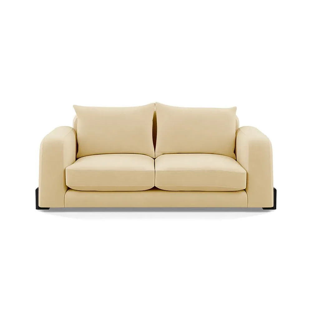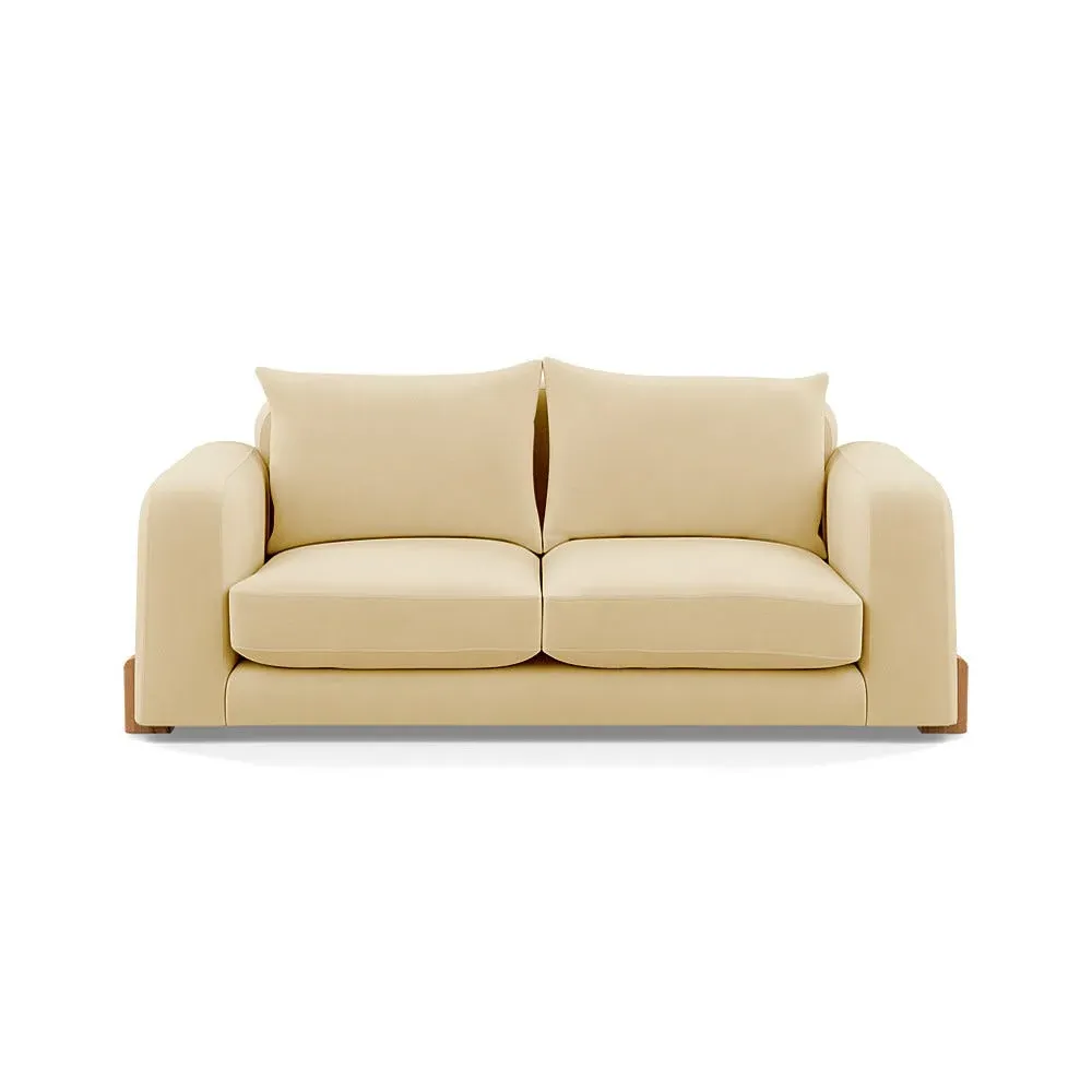 The Nuvola sofa combines plush comfort with its luxurious brushed cotton upholstery, creating a soft and inviting seating experience. Its generous 3-seater design provides ample space for relaxation, while the walnut stained feet add warmth and stability. The brushed cotton texture offers tactile appeal and visual interest, and the sturdy wooden base ensures lasting durability.