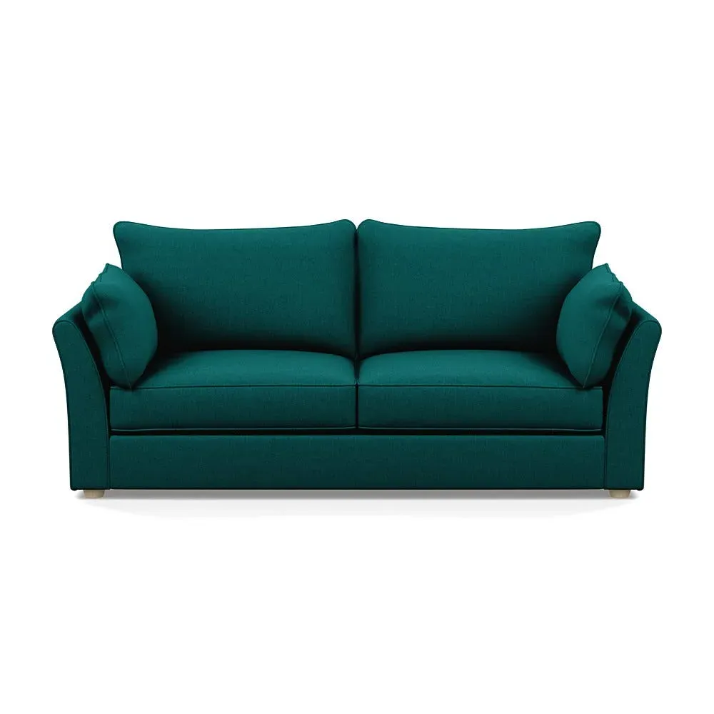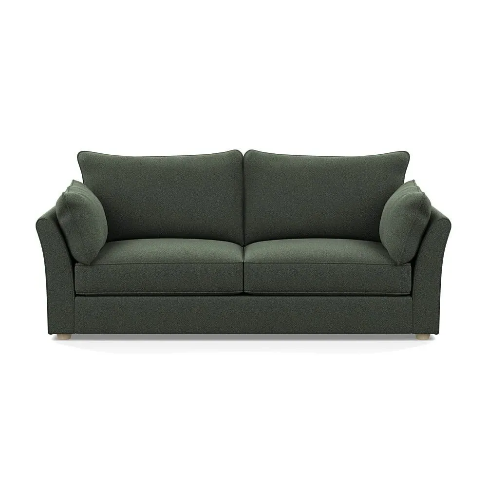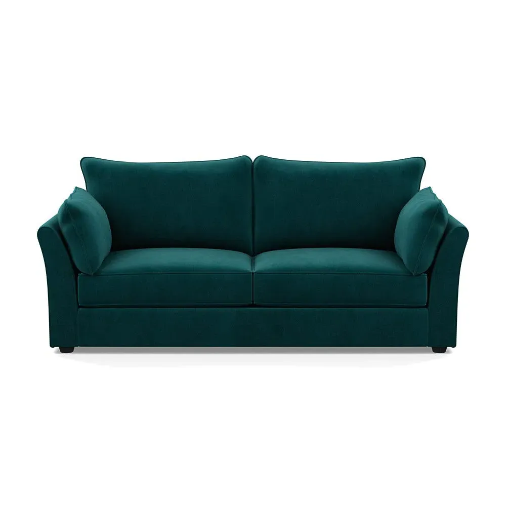 The sofa combines relaxation with its brushed cotton upholstery in pine green and black feet. Its spacious 4-seater design accommodates multiple users comfortably, while the sleek black feet provide contemporary contrast. The brushed cotton fabric offers natural softness and durability.