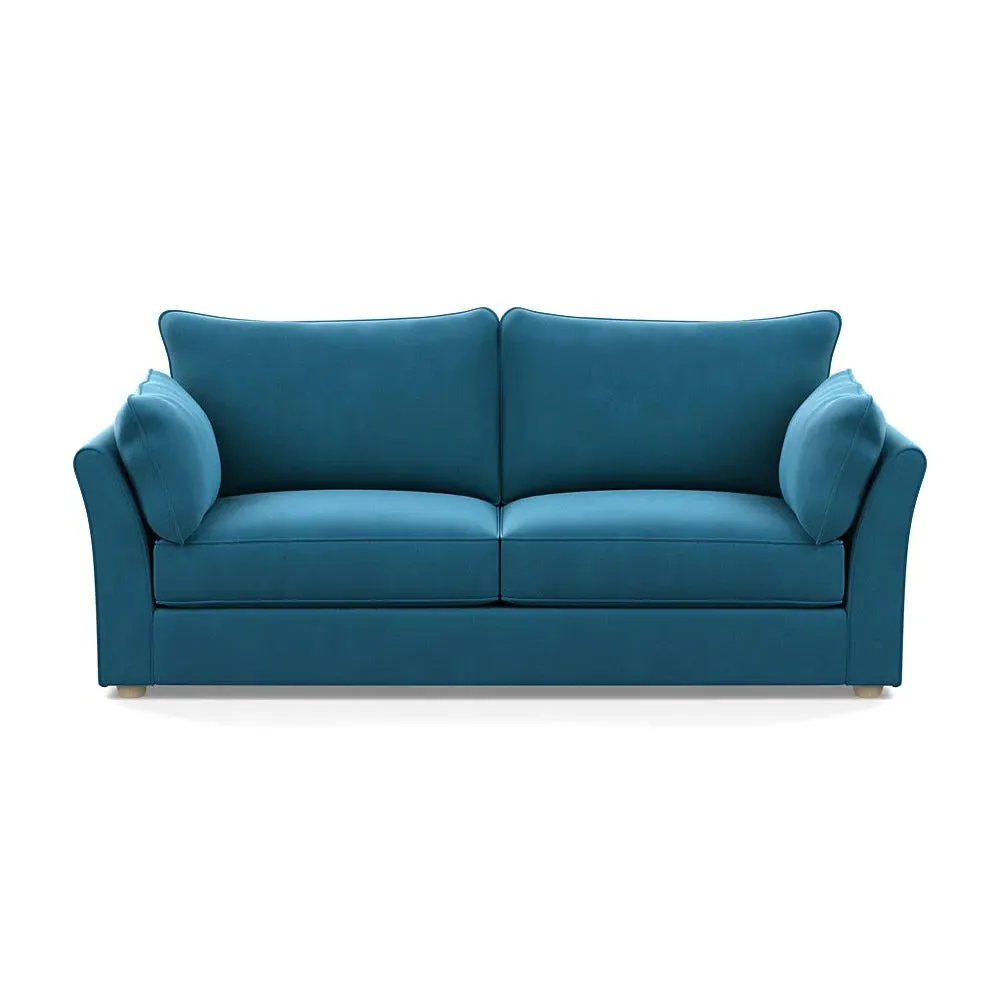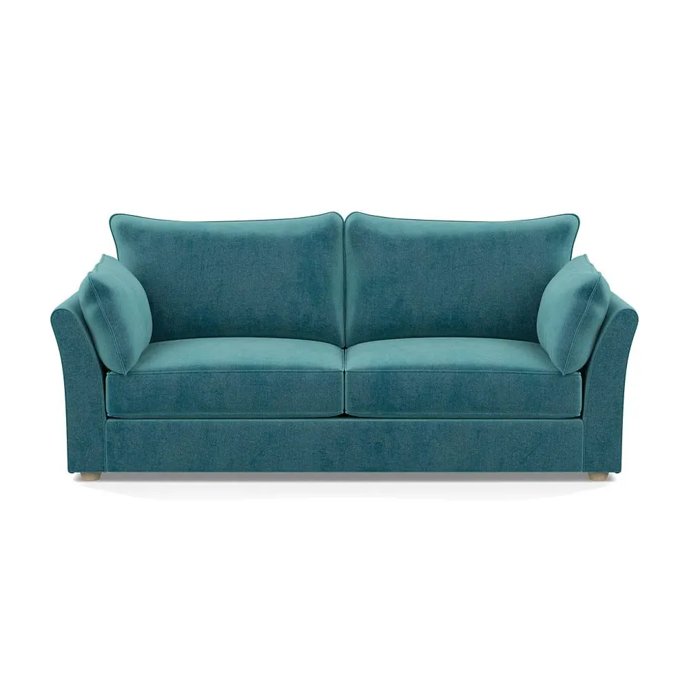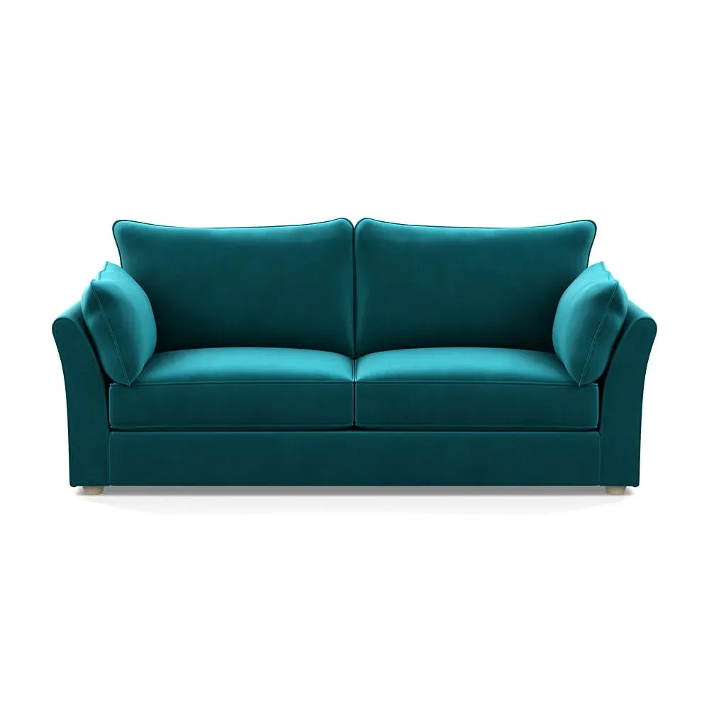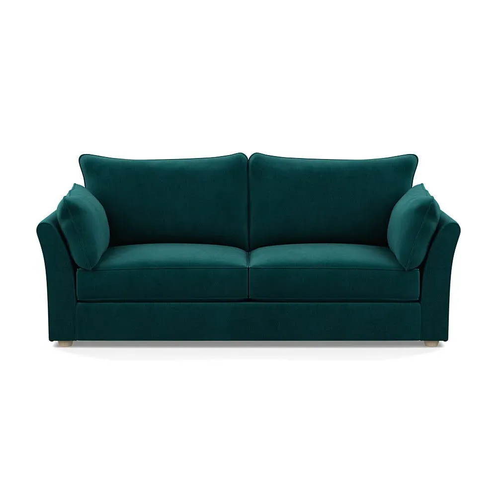 The sofa combines relaxation with its brushed cotton upholstery in pine green and black feet. Its spacious 4-seater design accommodates multiple users comfortably, while the sleek black feet provide contemporary contrast. The brushed cotton fabric offers natural softness and durability.