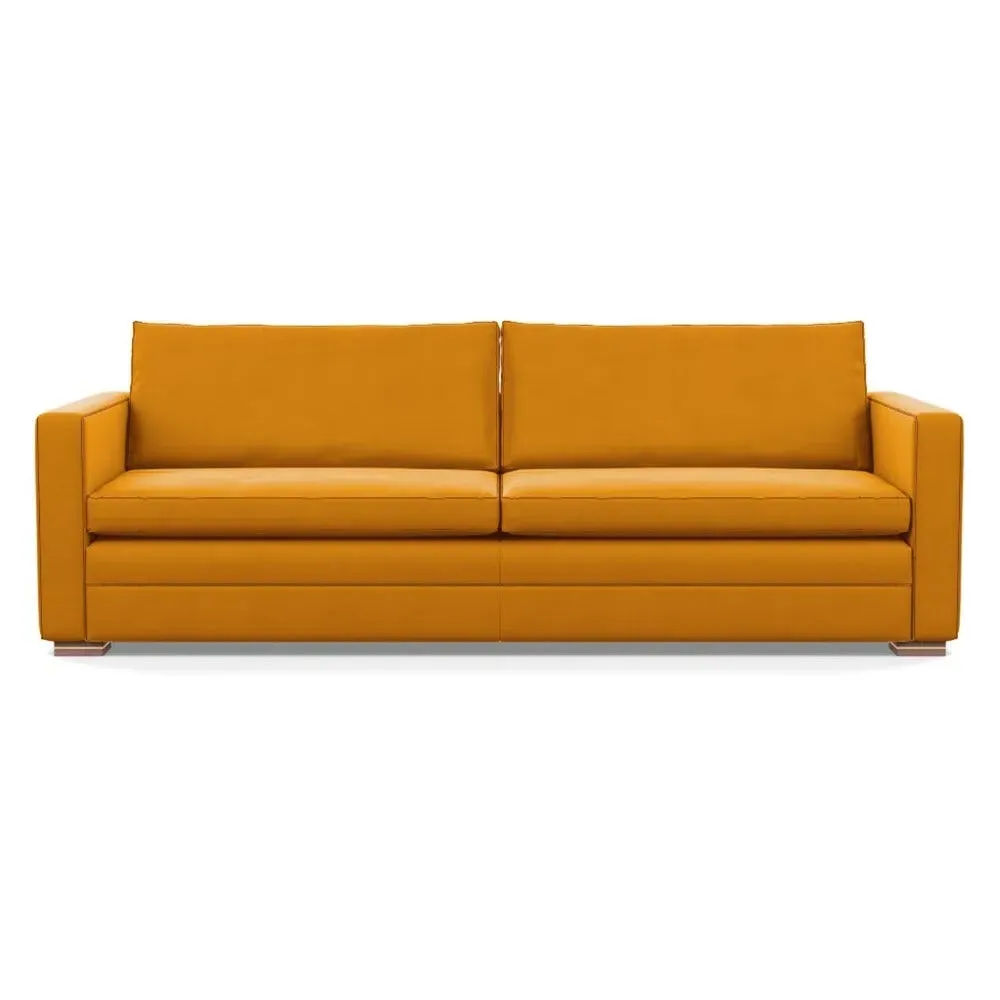 Developed in Italy, the Palermo is inspired by designs from the late mid-century for a nostalgic, understated appeal. Palermo's formal and relaxed shape is enhanced through subtle design details; the cushions and frame are outlined with fabric piping and its solid walnut legs feature a discreet polished brass detail. We designed Palermo with maximum comfort at its core - pocket sprung base, multi-dense foam and feather cushions. Available in a wide selection of premium leathers and fabrics. Palermo references vintage nostalgia and is best suited in Stonewash Leather, which will age beautifully over time to give a wonderful waxy patina.