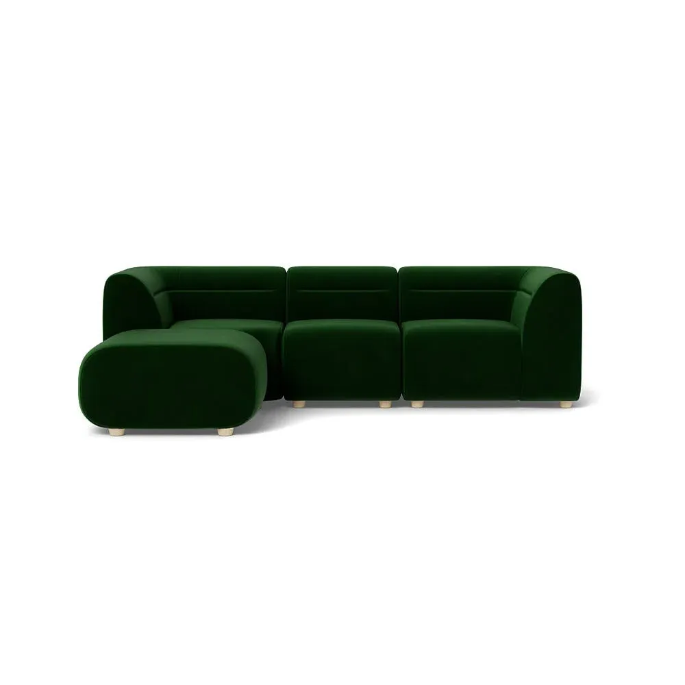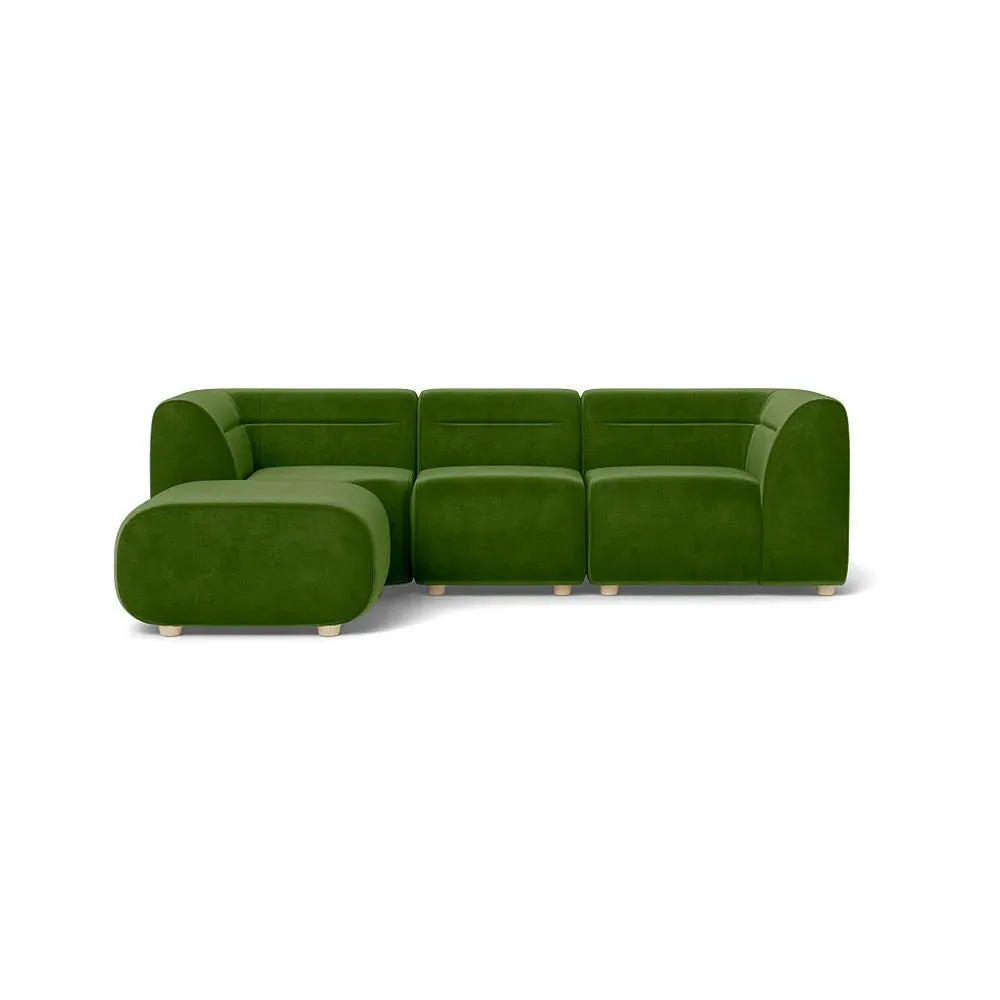 The corner sofa combines comfort with its right-hand facing configuration, featuring soft brushed cotton upholstery in a warm oat tone. Its compact design provides versatile seating arrangements, while the natural beech feet add warmth and stability. The brushed cotton fabric offers a smooth texture and breathability for everyday relaxation.