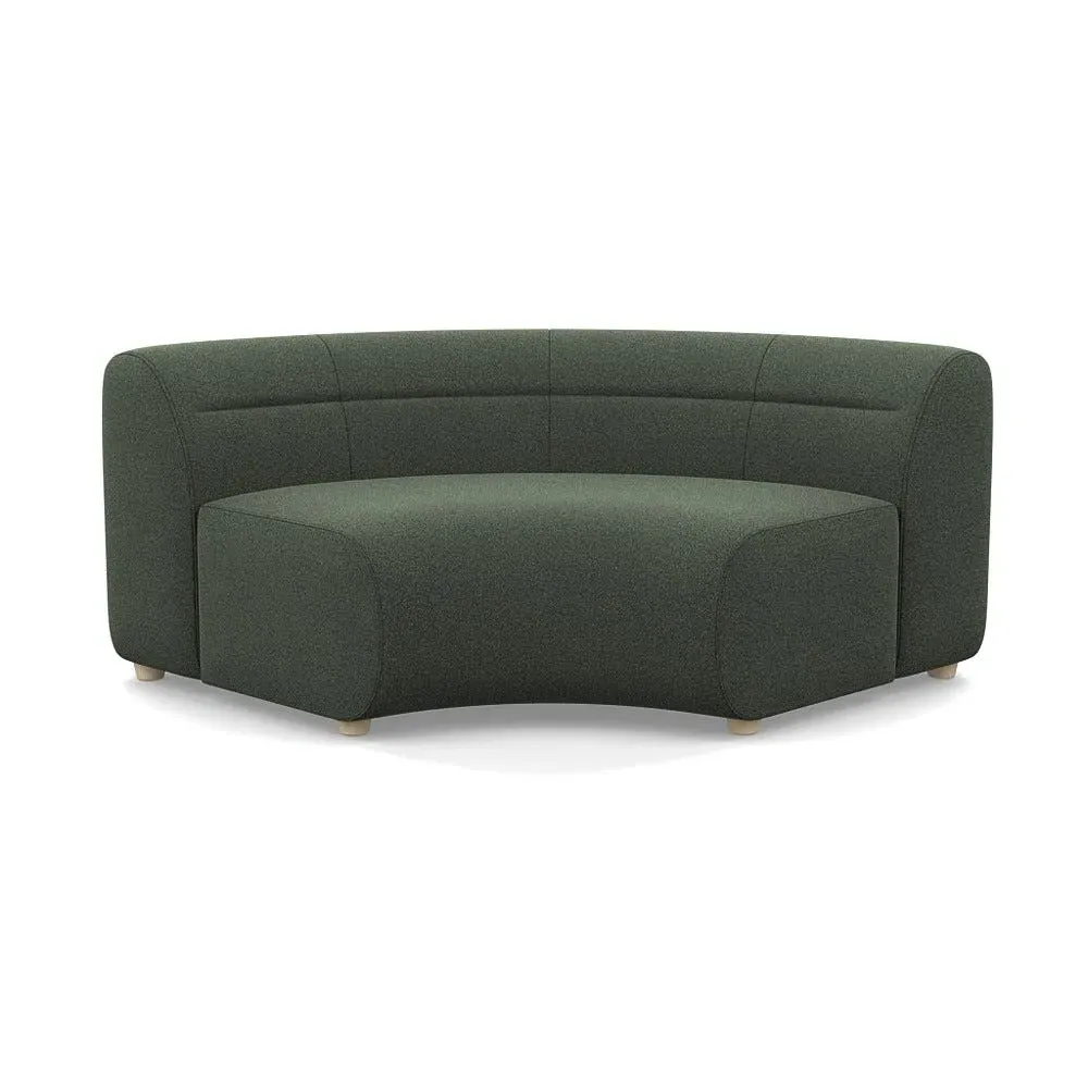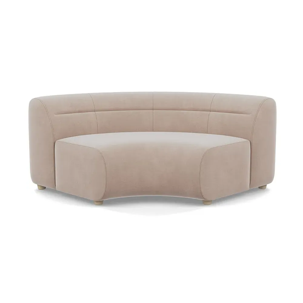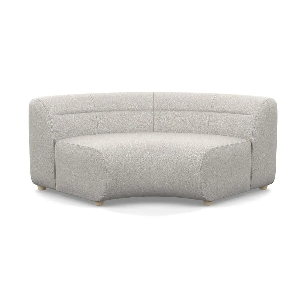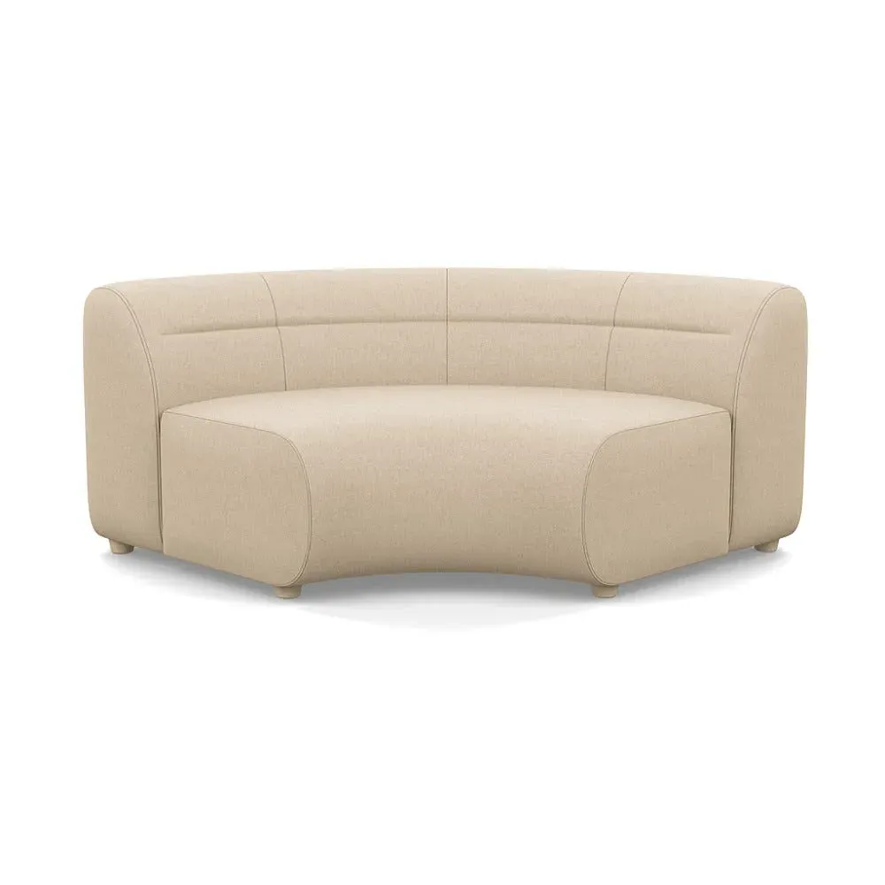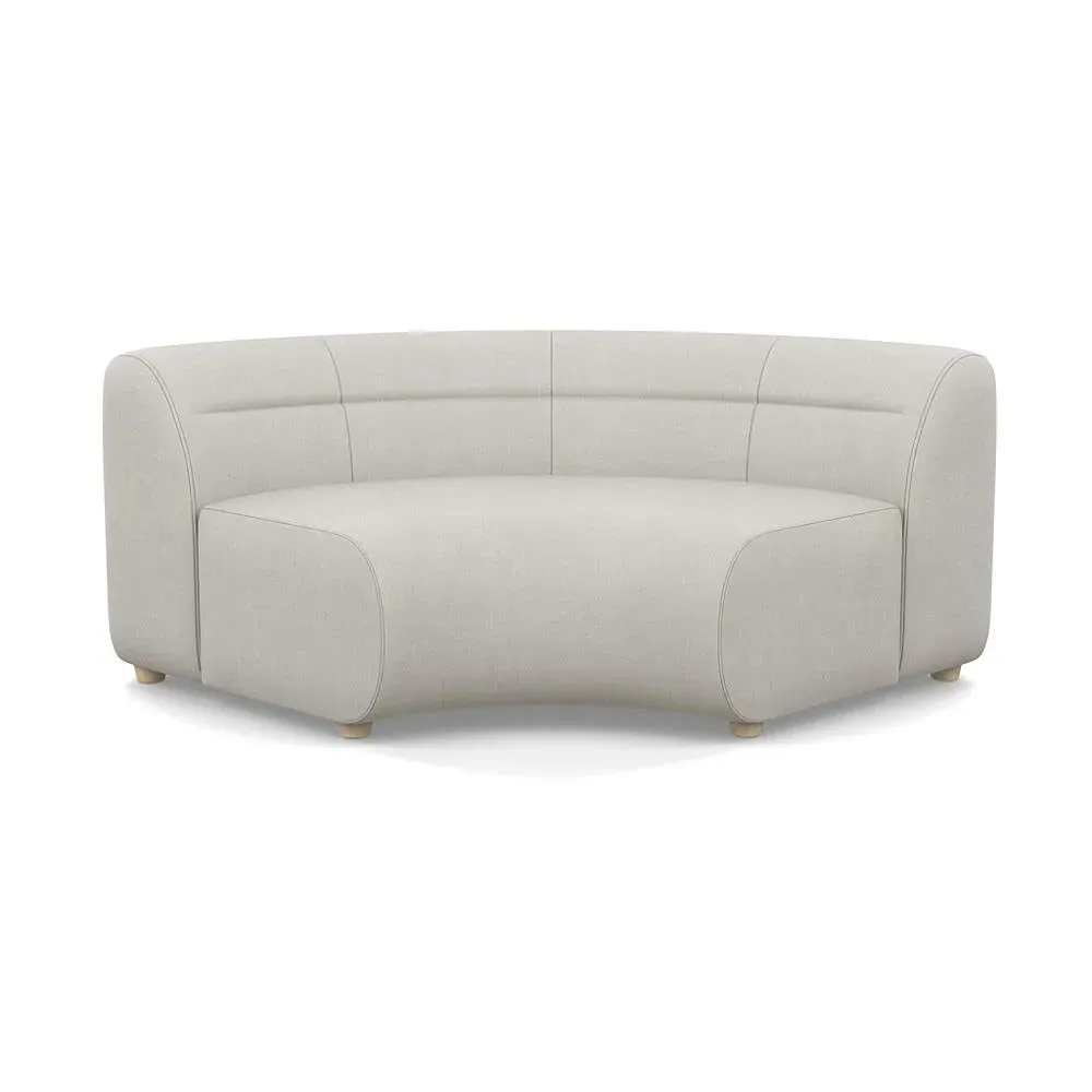 The corner unit module offers seamless sectional flexibility with its curved design, upholstered in natural brushed cotton. Its modular construction allows for custom seating arrangements, while the natural beech feet provide stable support. The curved profile creates smooth transitions between seating sections, and the brushed cotton fabric adds soft texture.