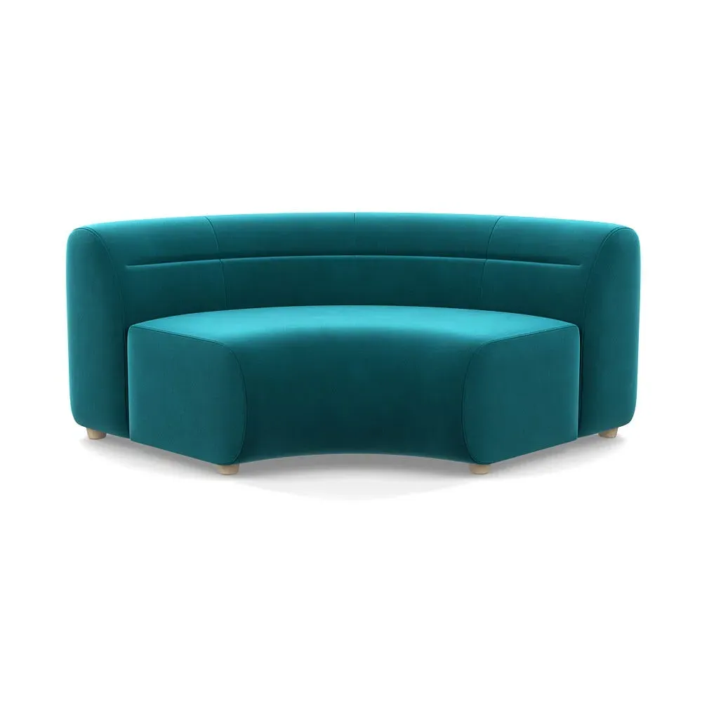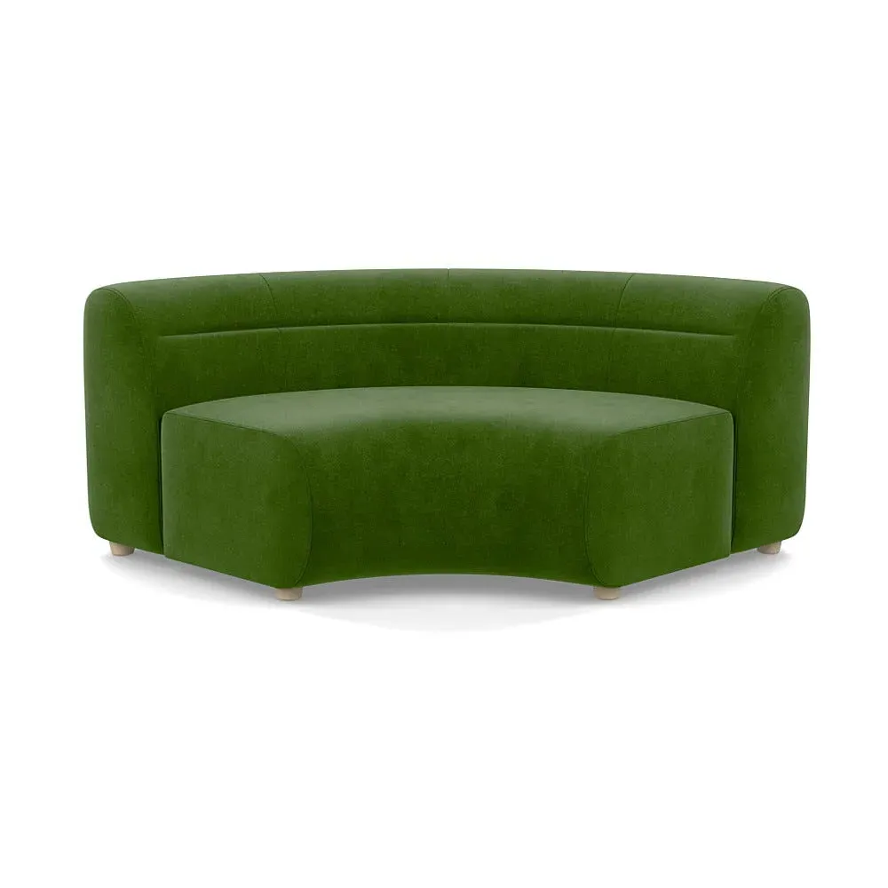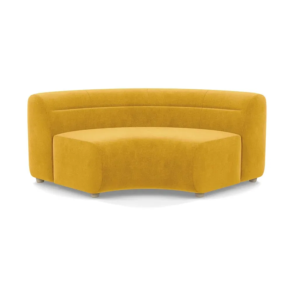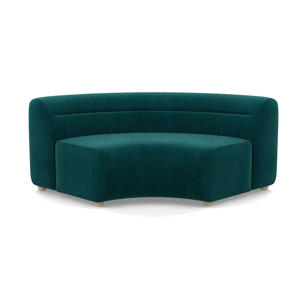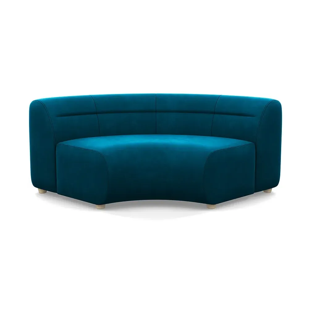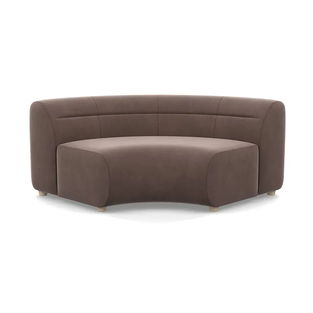 The corner unit module offers seamless sectional flexibility with its curved design, upholstered in natural brushed cotton. Its modular construction allows for custom seating arrangements, while the natural beech feet provide stable support. The curved profile creates smooth transitions between seating sections, and the brushed cotton fabric adds soft texture.