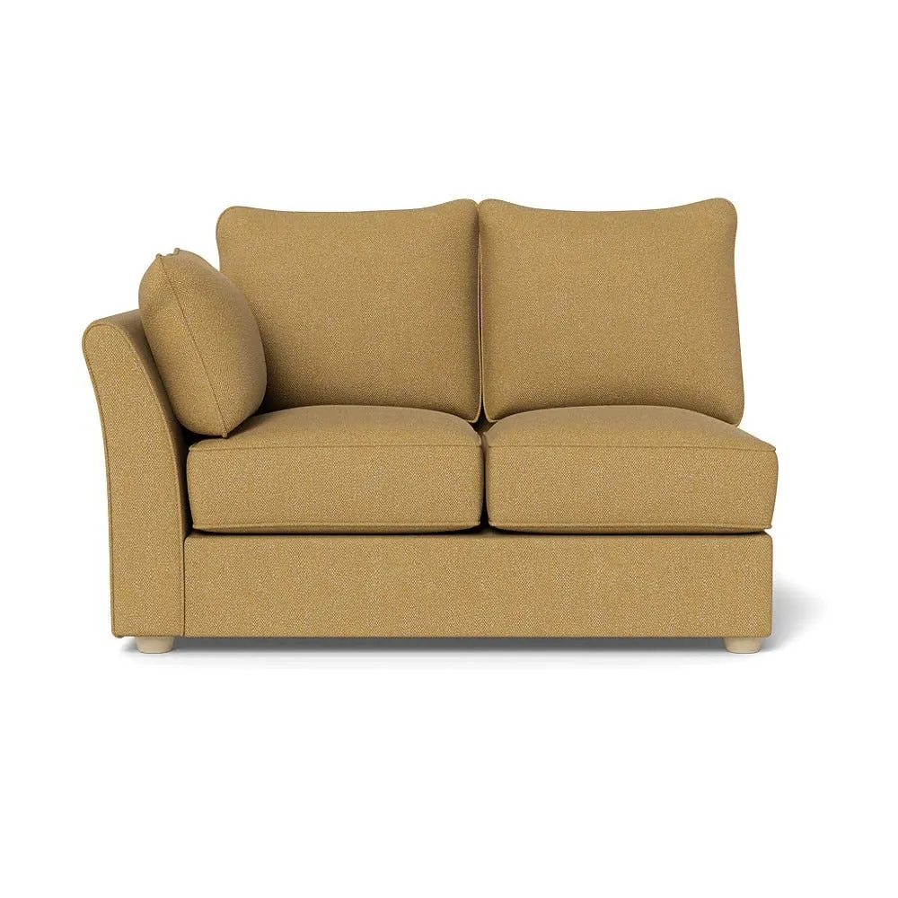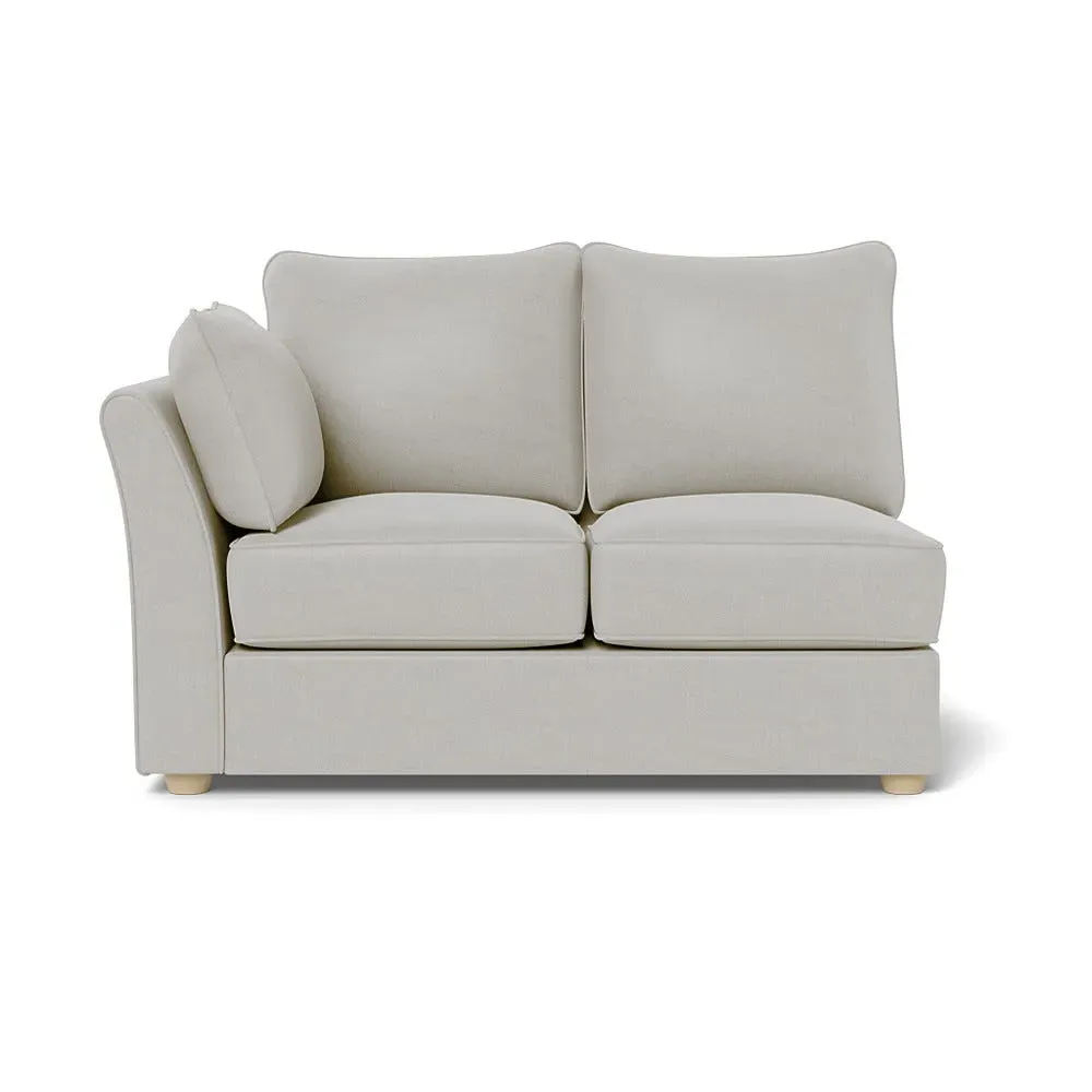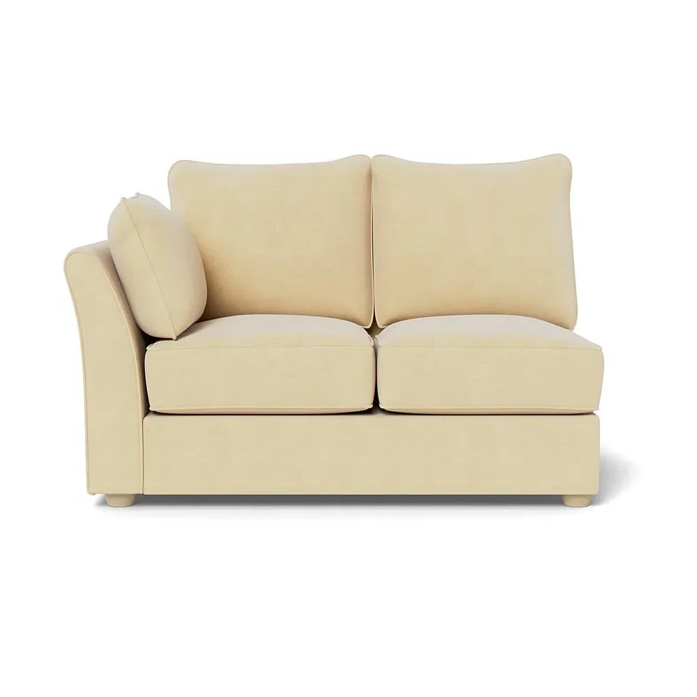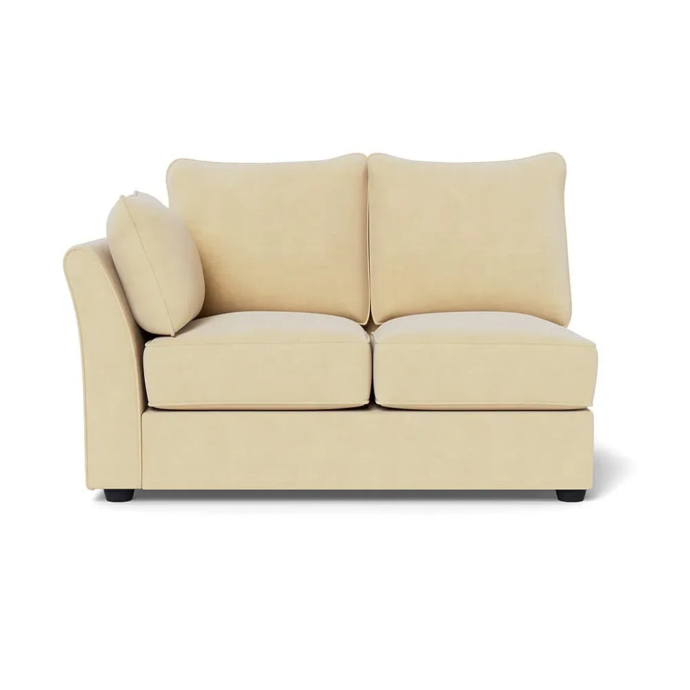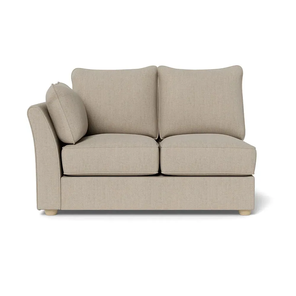 The corner unit offers comfortable seating with its soft brushed cotton upholstery in warm oat tones. Its right-hand facing configuration provides flexible arrangement options, while the black wooden feet add contemporary contrast and stability. The double unit design suits various seating needs with its generous proportions and textured cotton finish.
