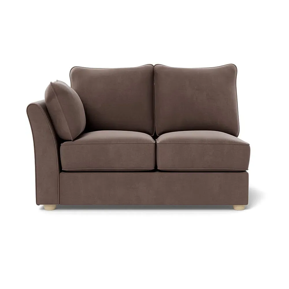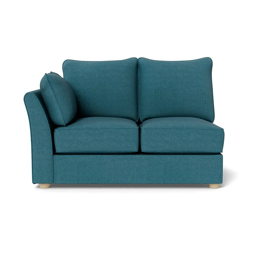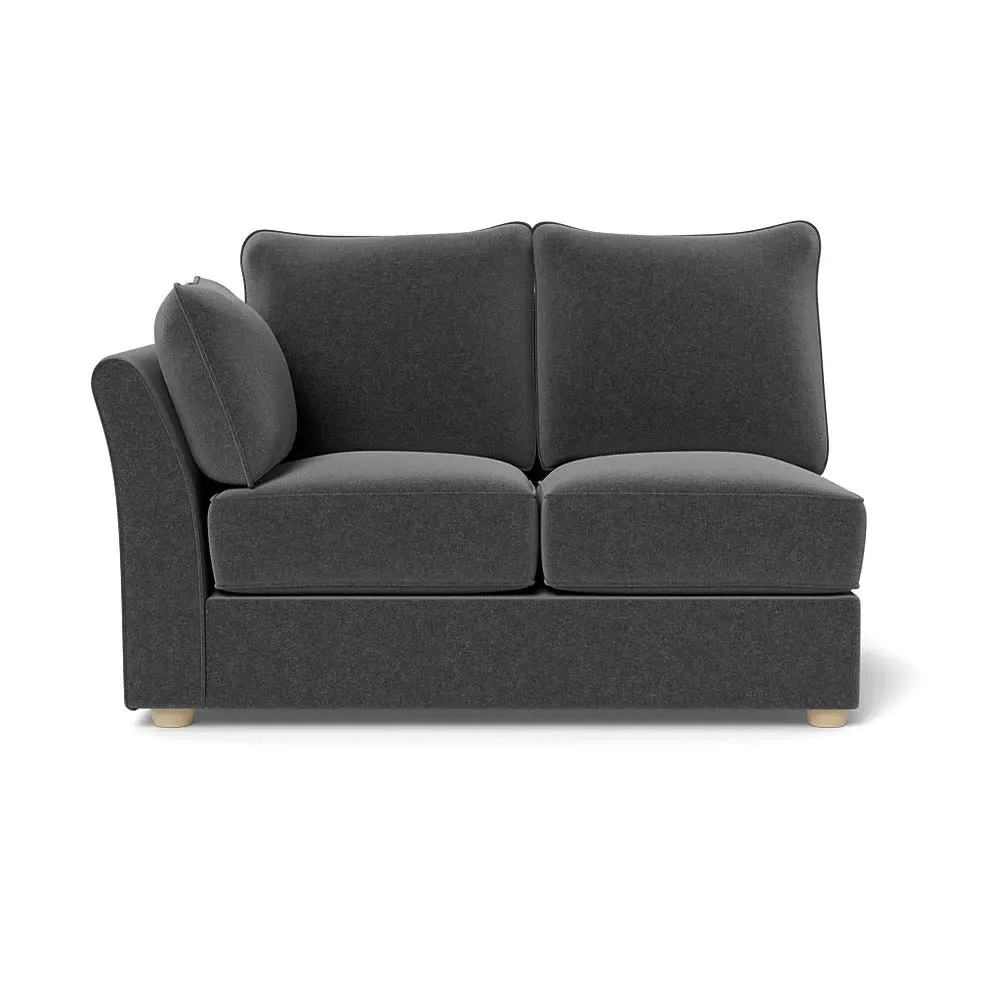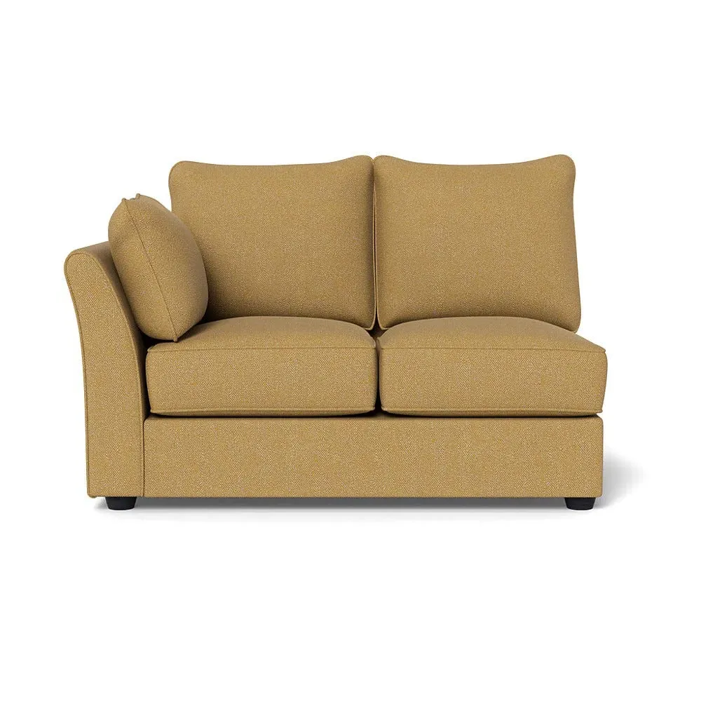 The corner unit offers comfortable seating with its soft brushed cotton upholstery in warm oat tones. Its right-hand facing configuration provides flexible arrangement options, while the black wooden feet add contemporary contrast and stability. The double unit design suits various seating needs with its generous proportions and textured cotton finish.