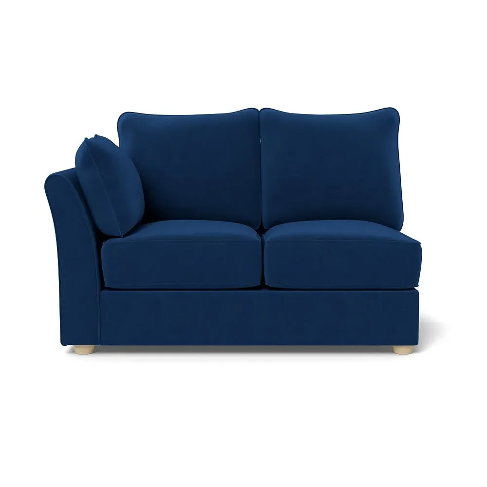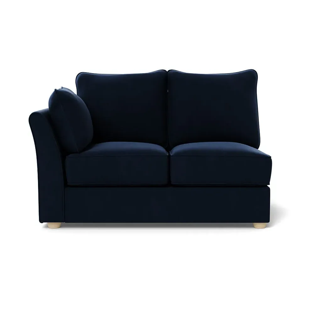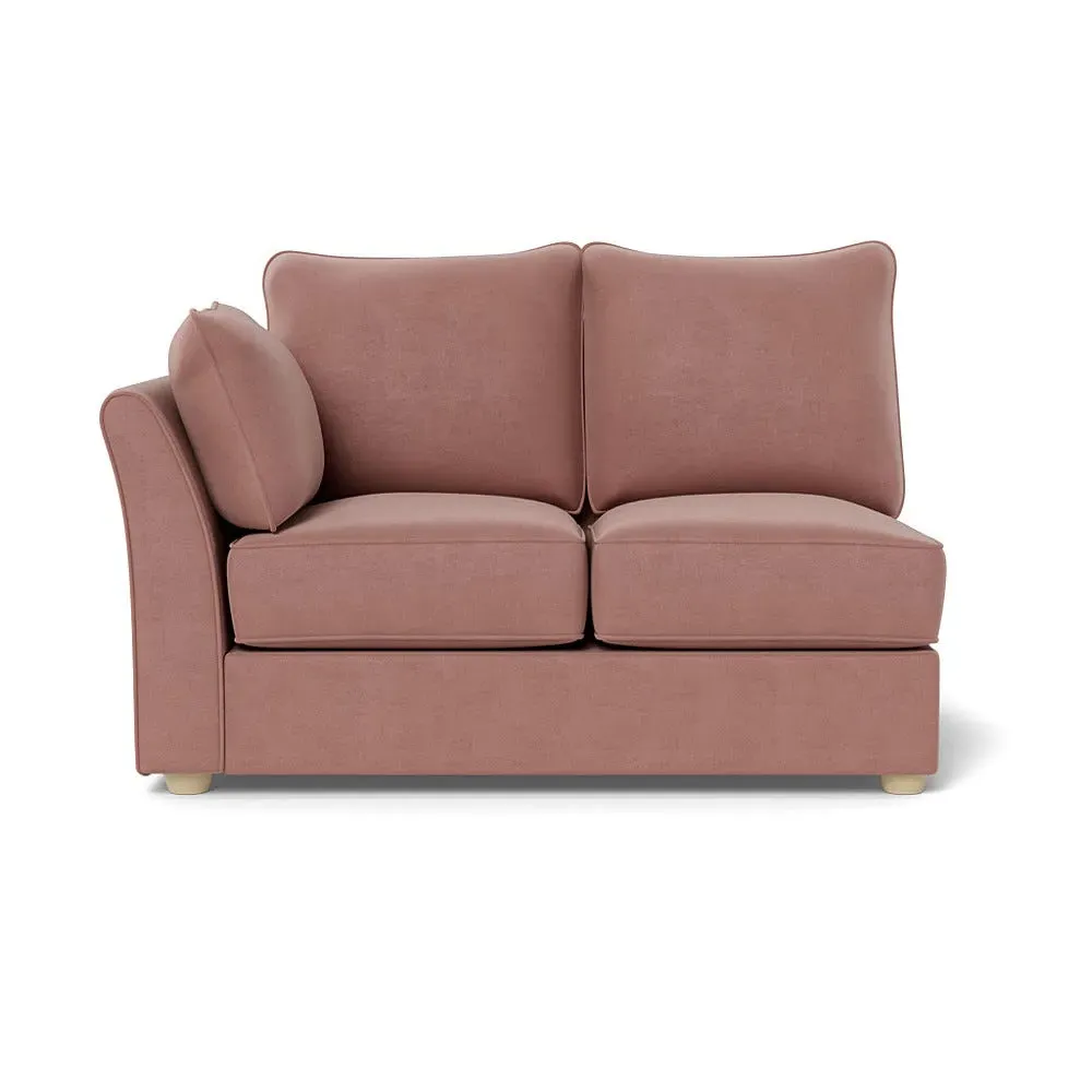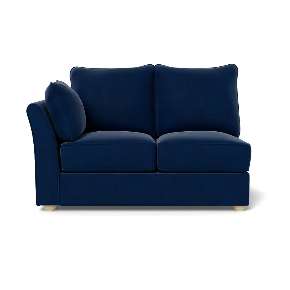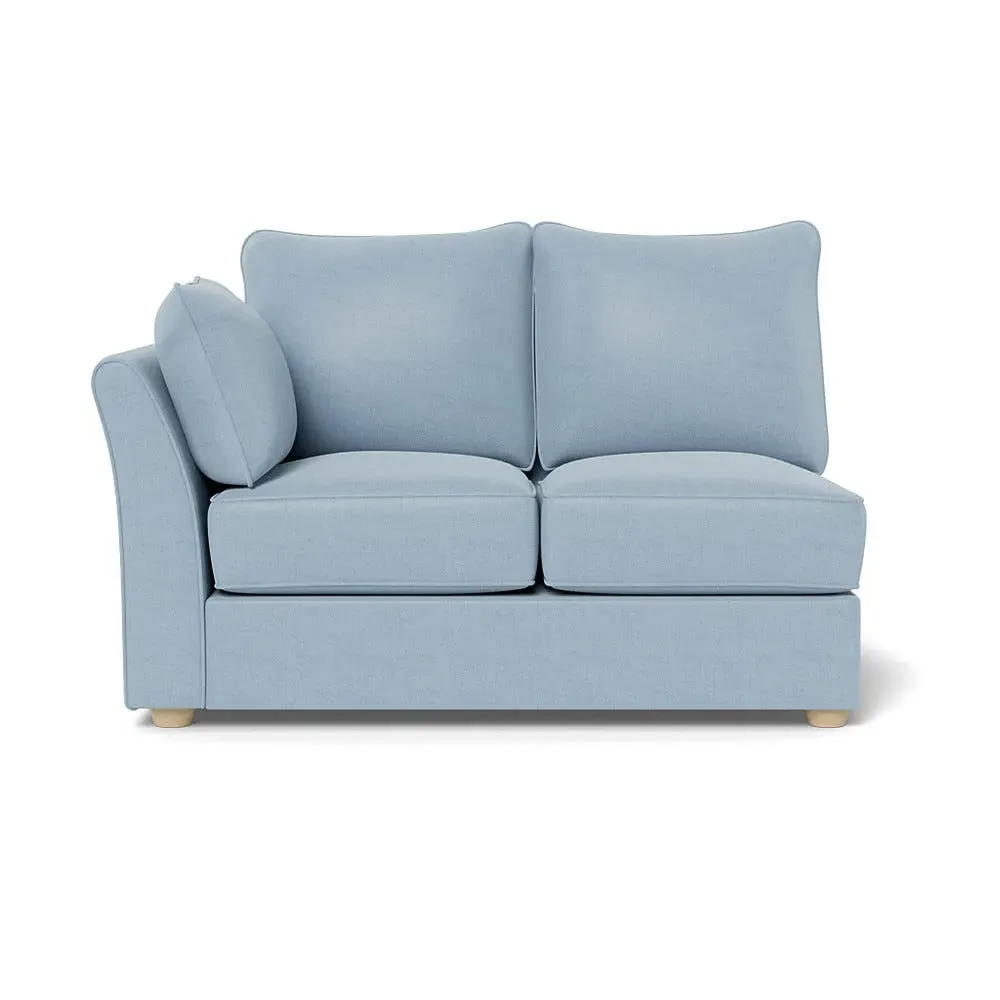 The corner unit offers comfortable seating with its soft brushed cotton upholstery in warm oat tones. Its right-hand facing configuration provides flexible arrangement options, while the black wooden feet add contemporary contrast and stability. The double unit design suits various seating needs with its generous proportions and textured cotton finish.