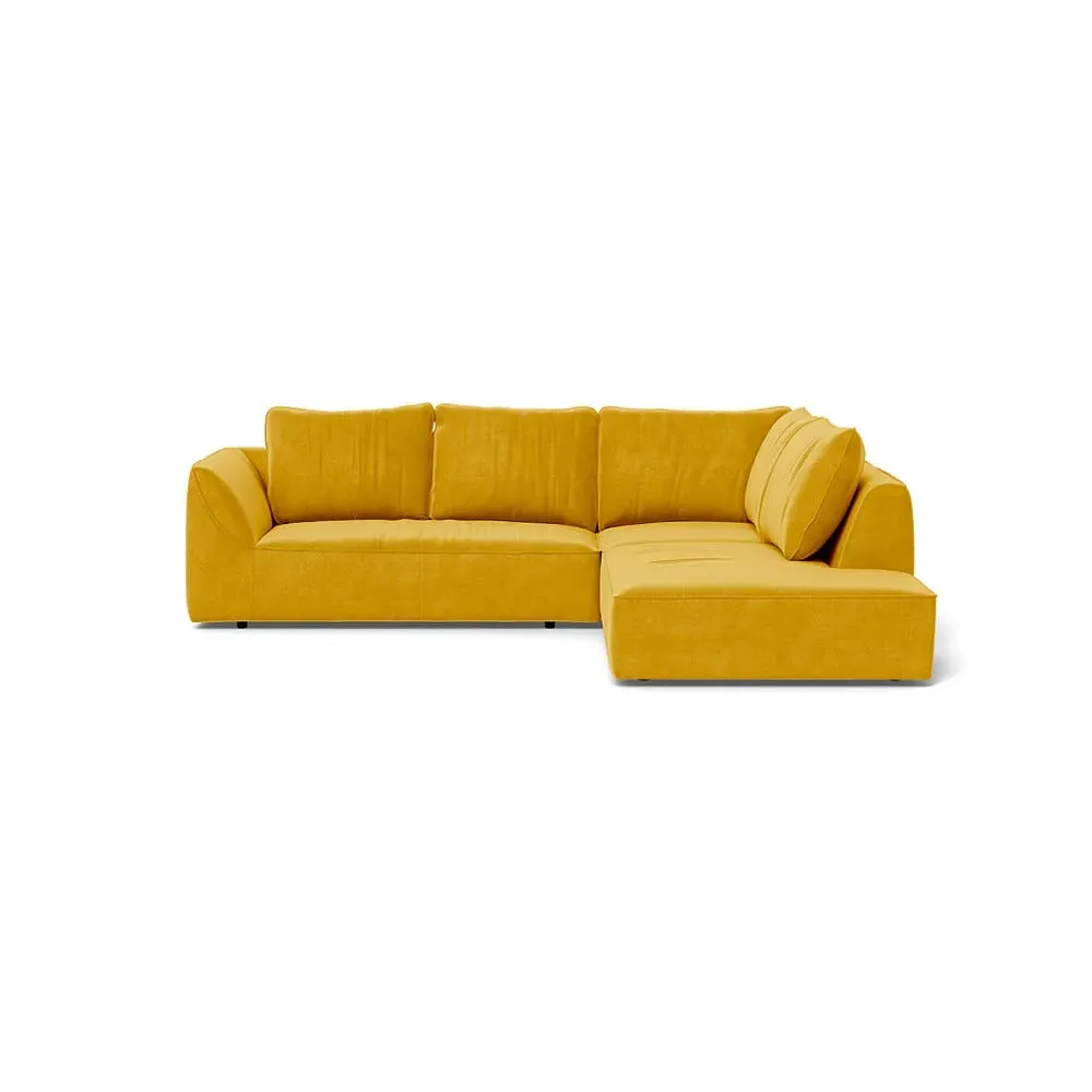 The corner sofa offers luxurious comfort with its brushed cotton upholstery in a warm natural tone. Its L-shaped design provides ample seating space, while the plush cushioning ensures lasting support. The left-hand facing configuration suits various room layouts, and the sturdy frame delivers reliable durability.