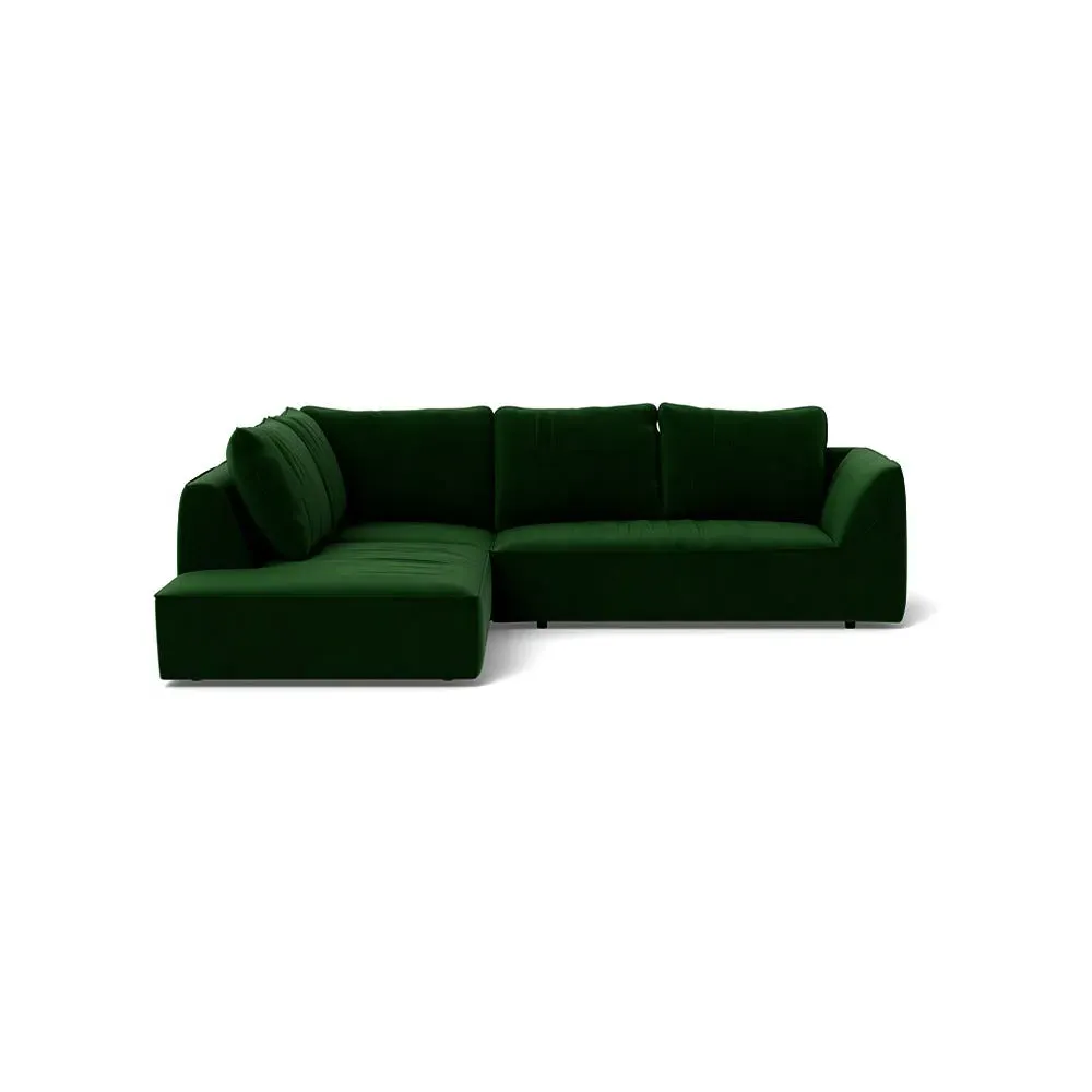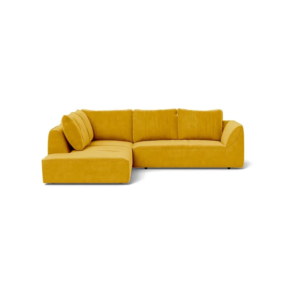 The corner sofa offers generous seating with its right-hand facing configuration, upholstered in brushed cotton fabric. Its large proportions provide ample space for relaxation, while the soft cotton material adds comfort and breathability. The corner design maximizes seating capacity, and the sturdy frame ensures lasting durability.