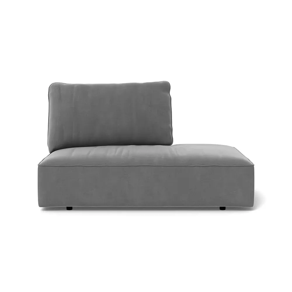 The open end unit offers modular flexibility with its left-hand facing design, upholstered in soft brushed cotton. Its structured frame provides reliable support, while the natural finish adds warmth to any seating arrangement. The open-end configuration allows for seamless connection with other modular pieces.