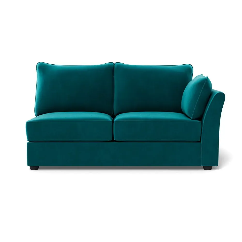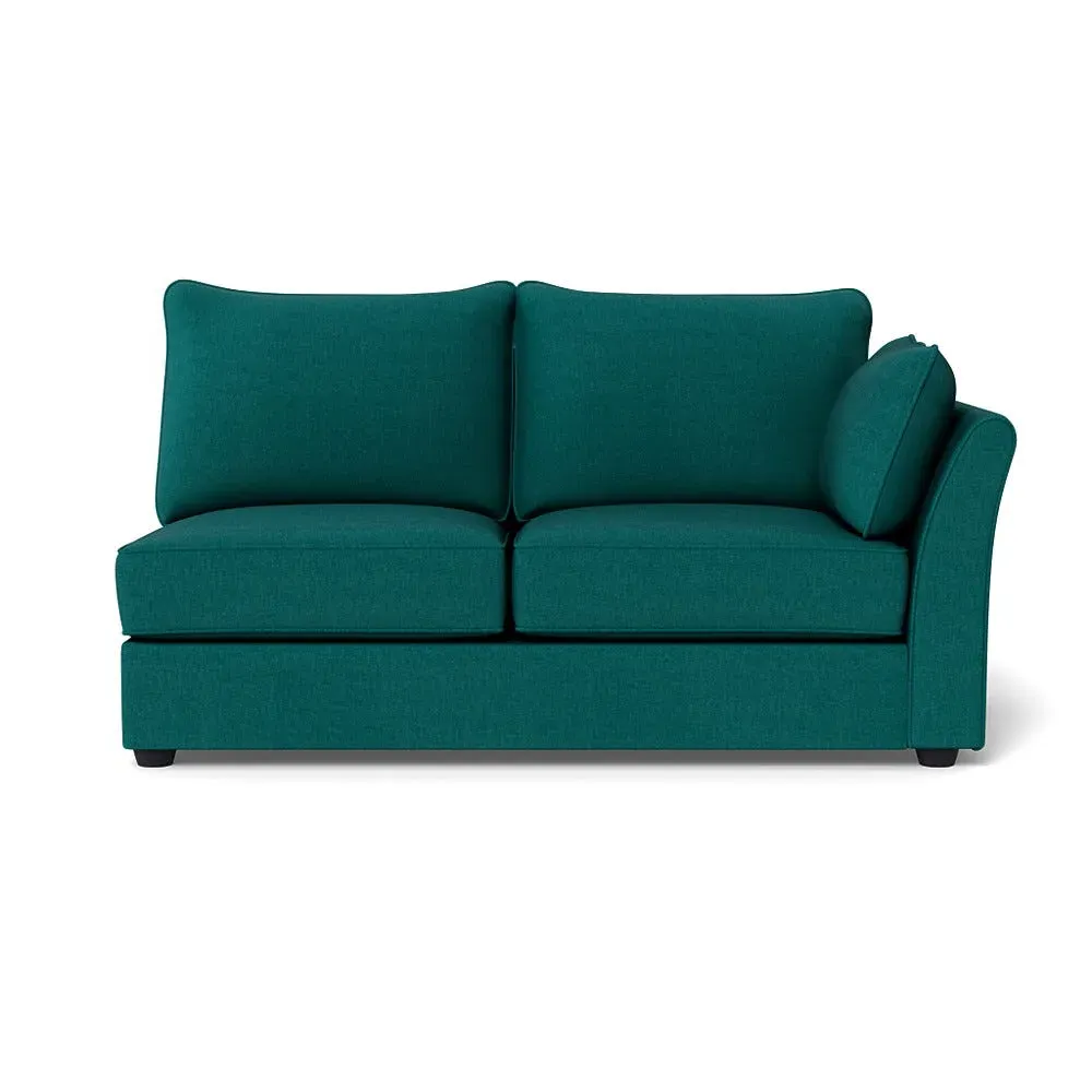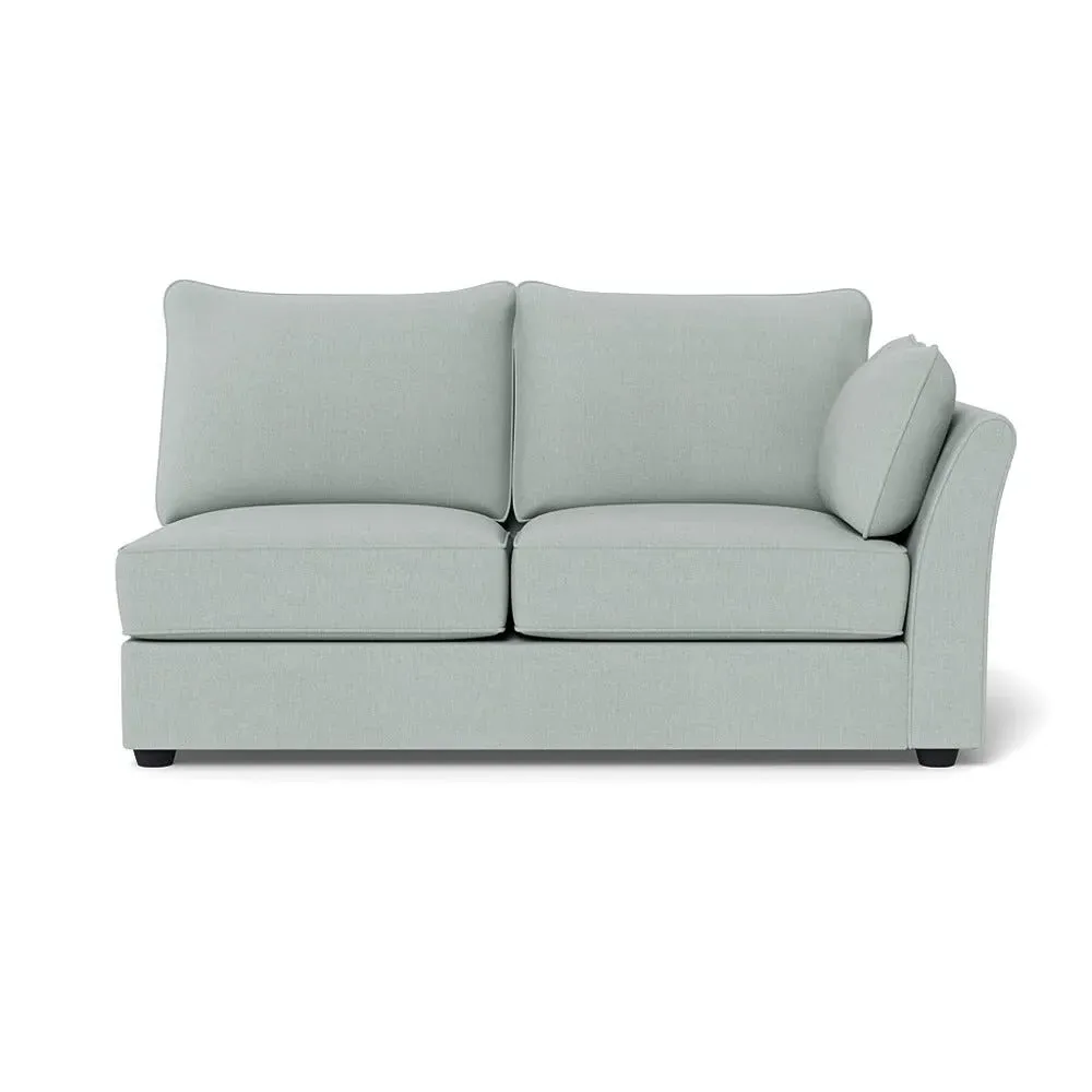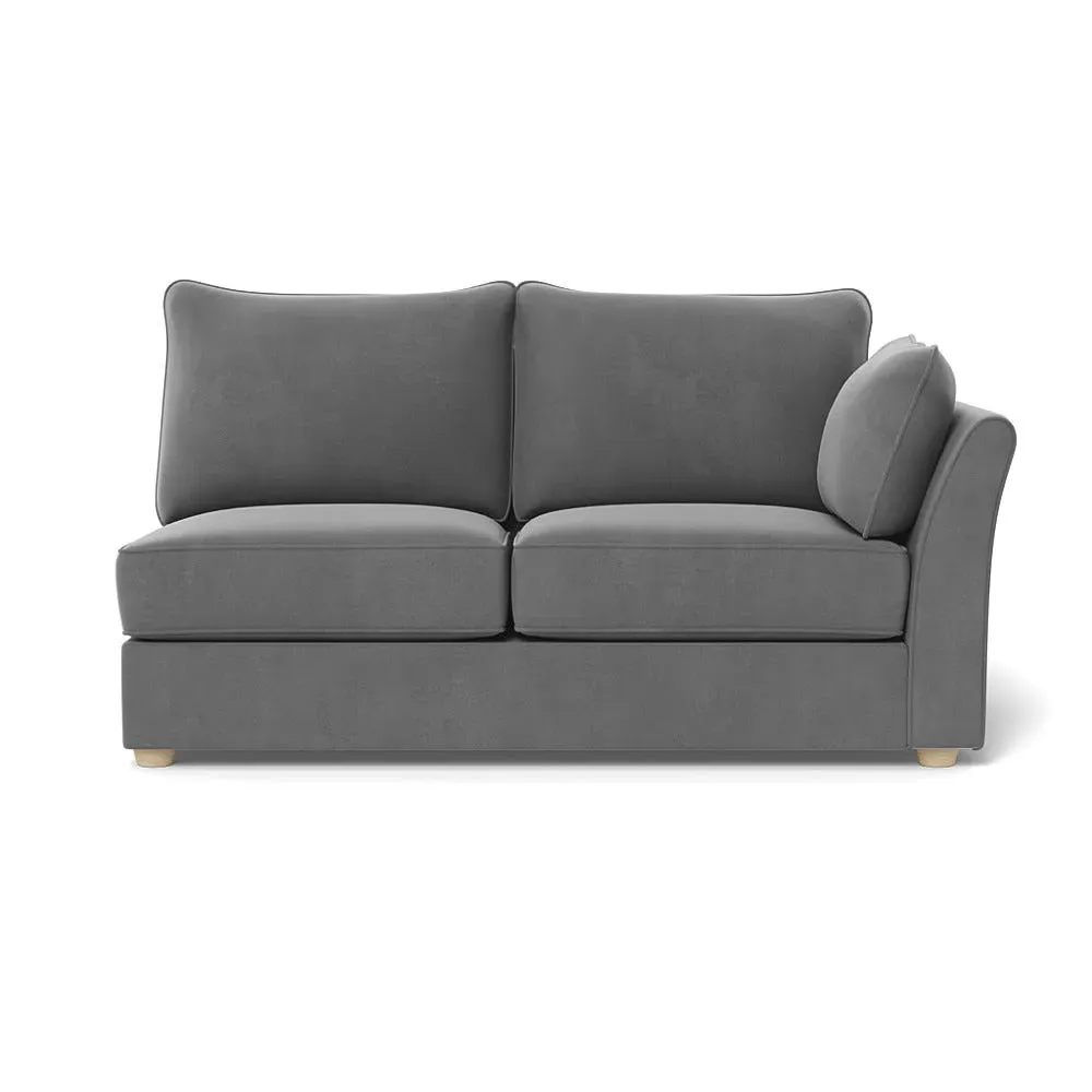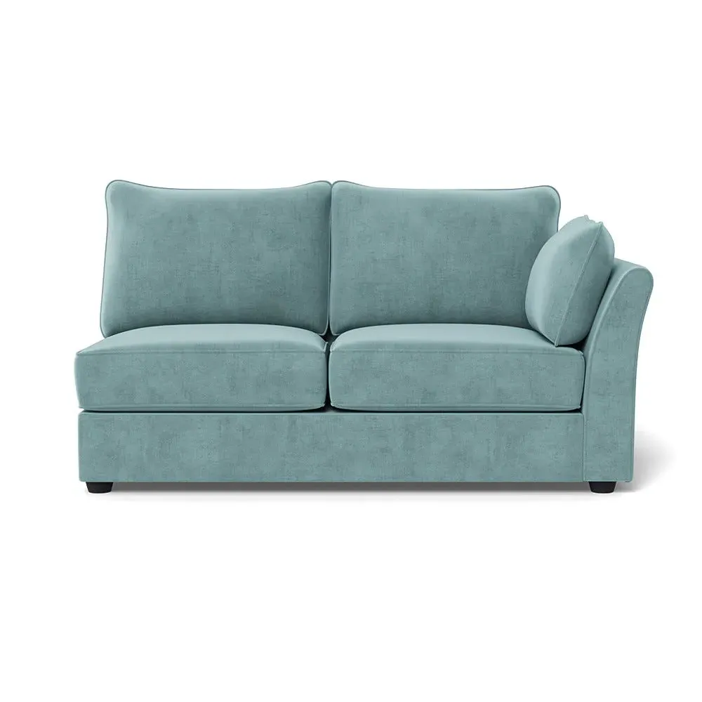 The medium corner unit offers comfortable seating with its left-hand facing configuration, upholstered in soft brushed cotton. Its green pine finish provides freshness and natural appeal, while the natural wooden feet add stability and style. The medium size suits various spaces, and the quality construction ensures lasting comfort.