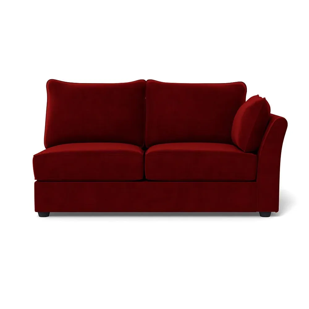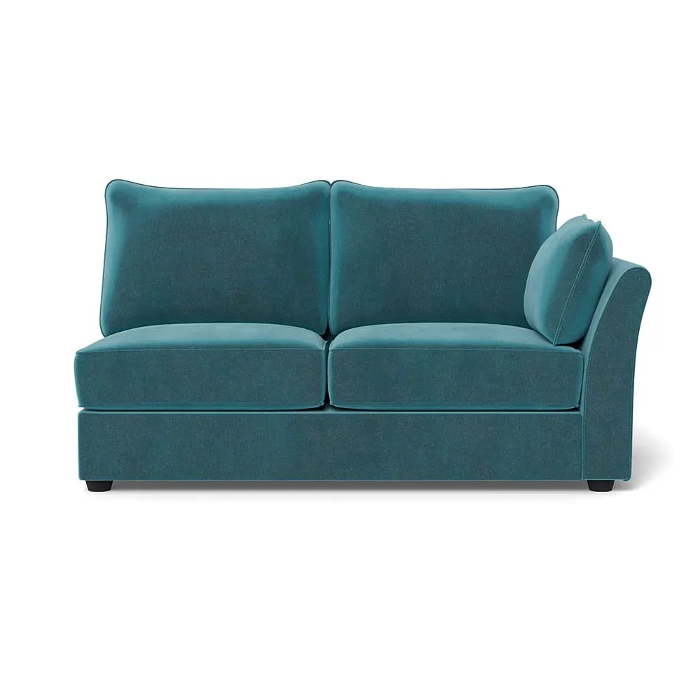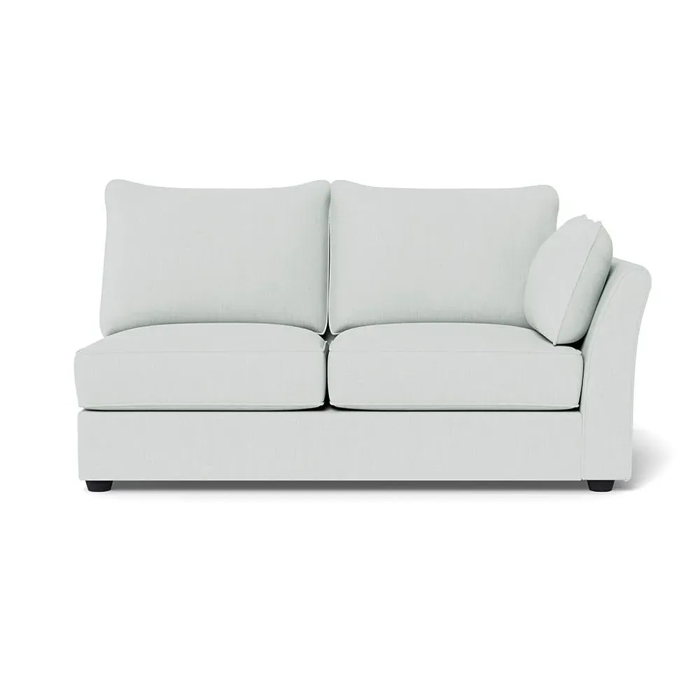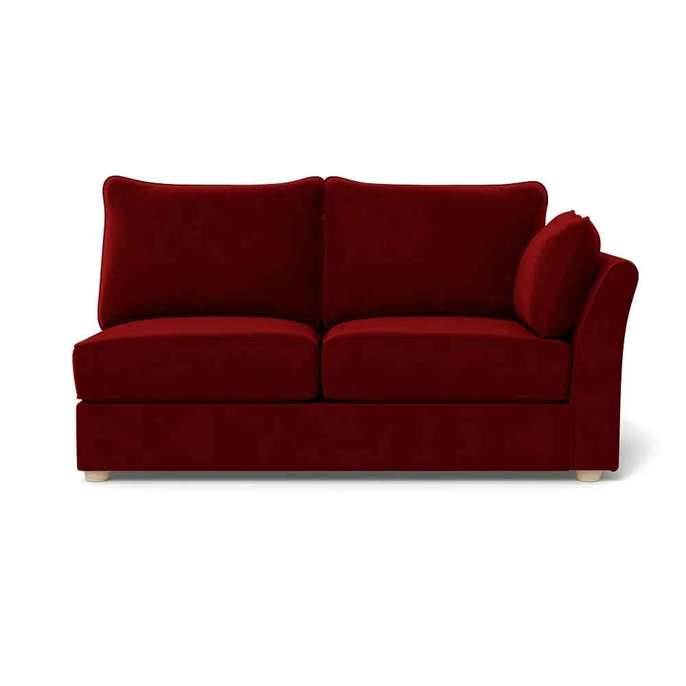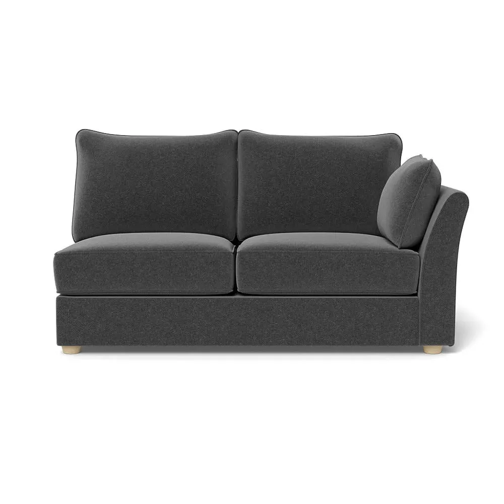 The medium corner unit offers comfortable seating with its left-hand facing configuration, upholstered in soft brushed cotton. Its green pine finish provides freshness and natural appeal, while the natural wooden feet add stability and style. The medium size suits various spaces, and the quality construction ensures lasting comfort.