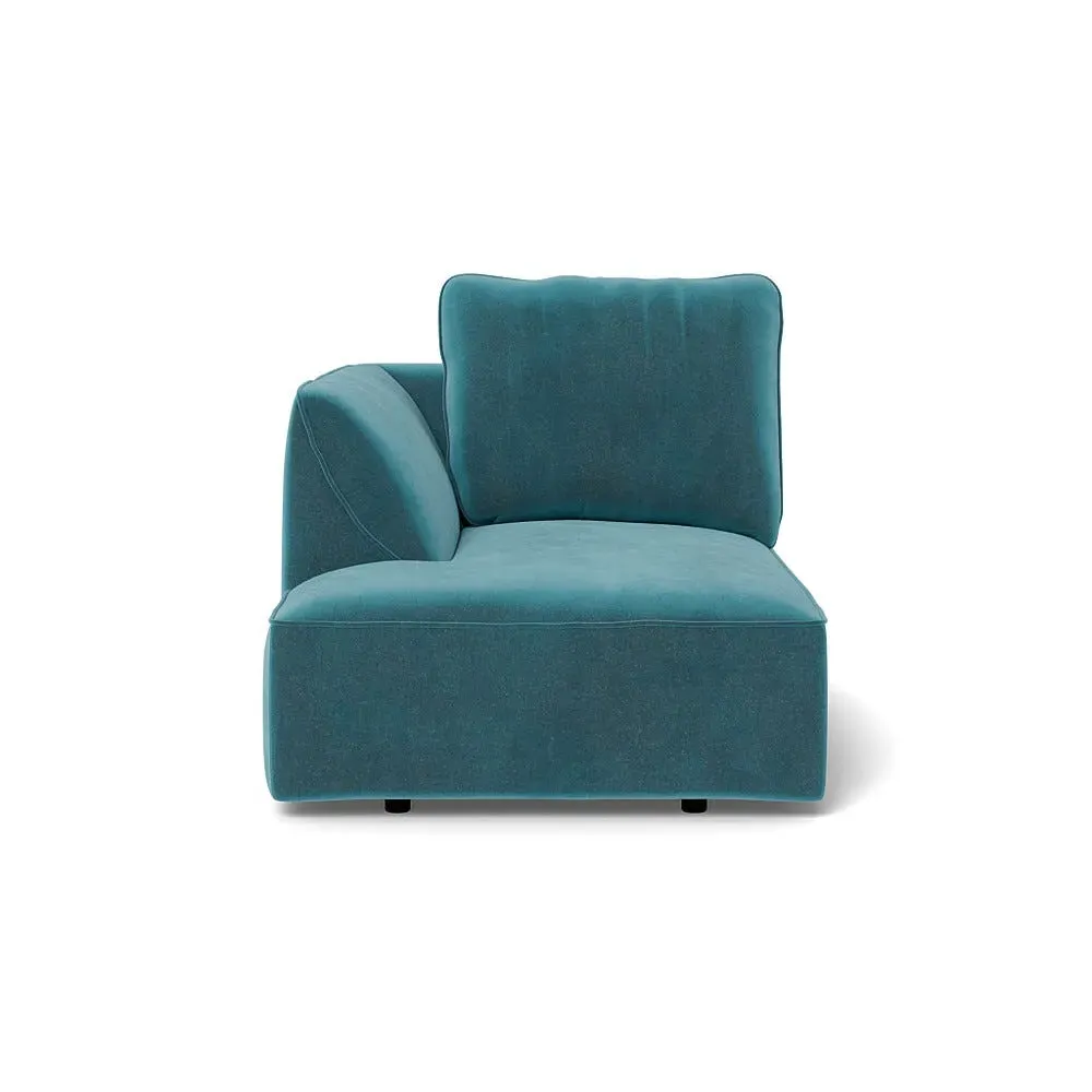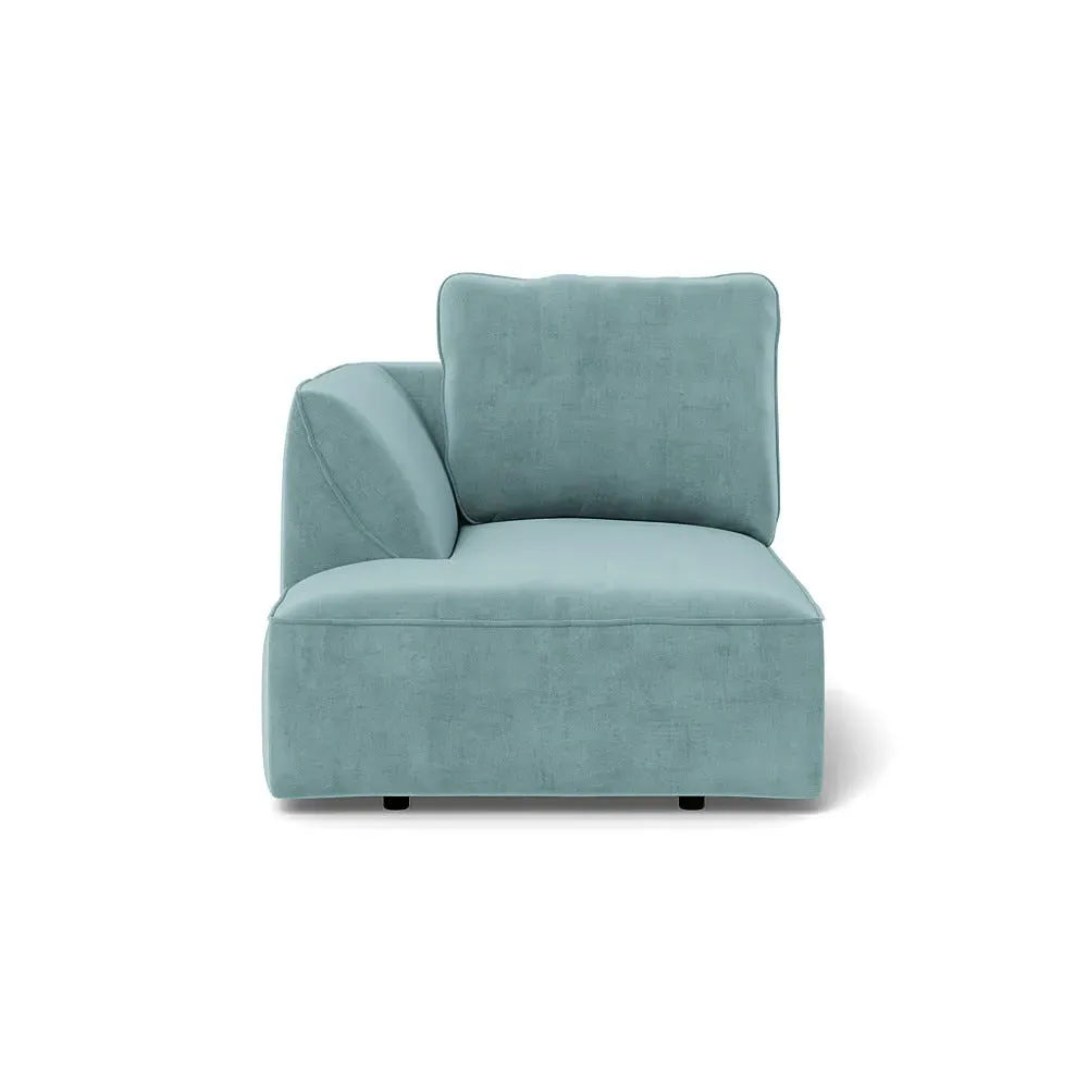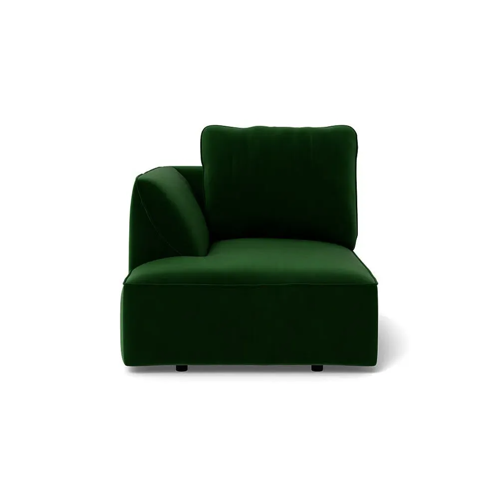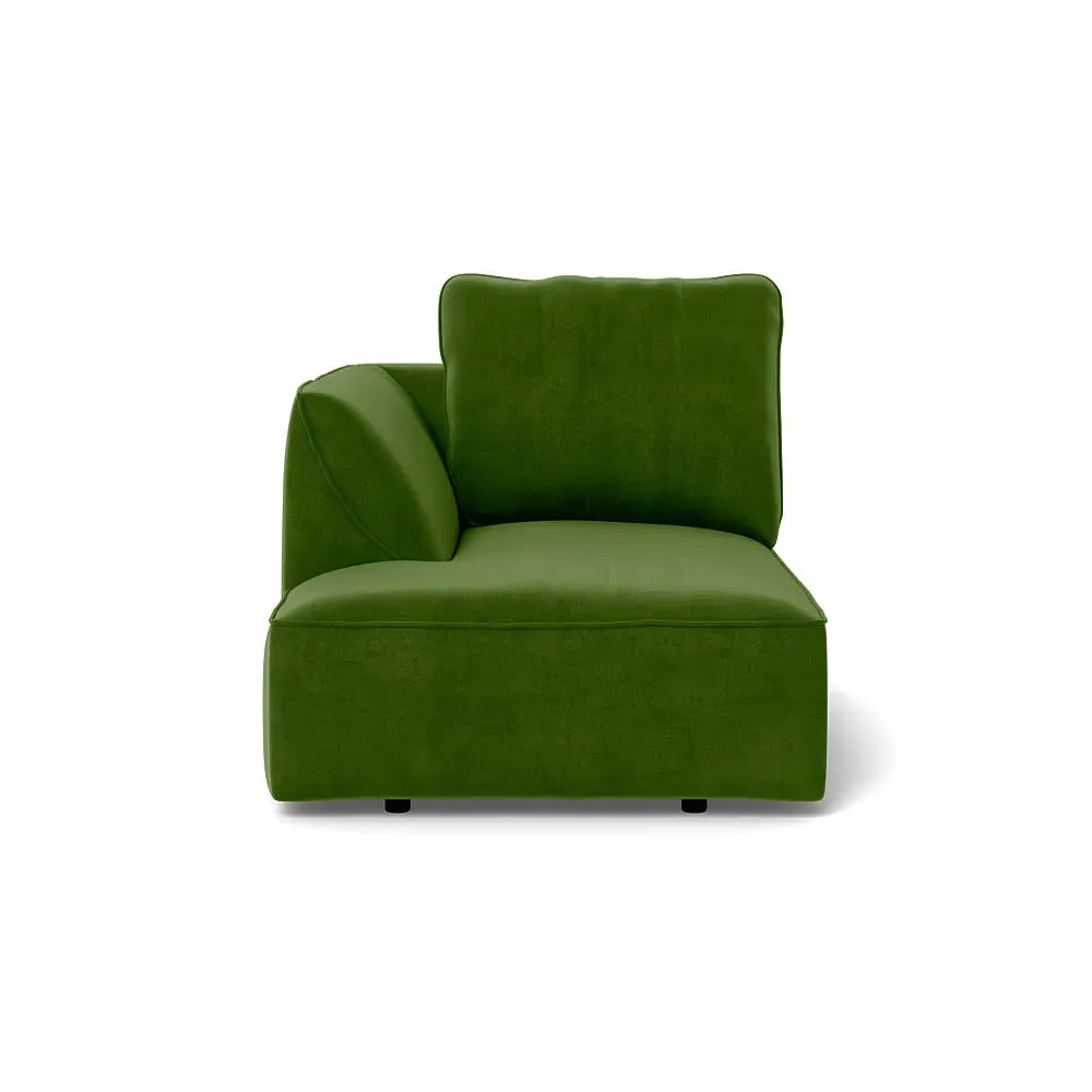 The chaise unit offers comfortable seating with its brushed cotton upholstery in a fresh green tone. Its right-hand facing design provides versatile placement options, while the soft cotton fabric adds texture and breathability. The structured frame ensures lasting support and stability for relaxed lounging.