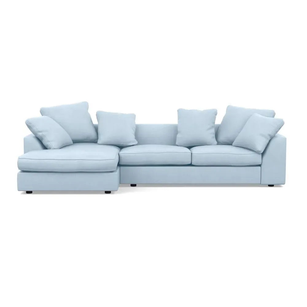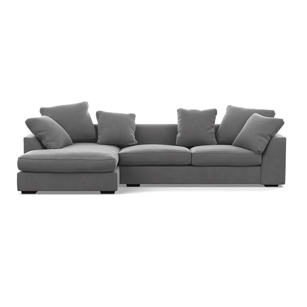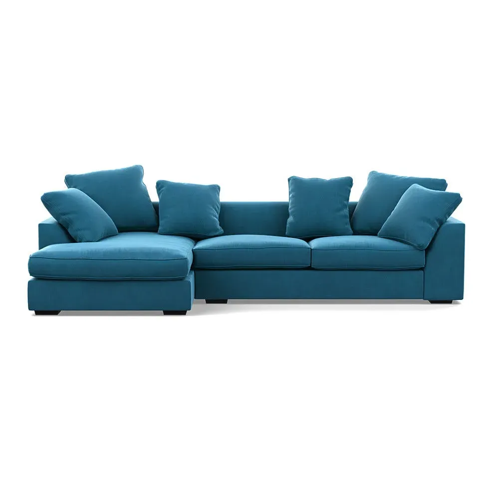 A soothing, contemporary design, the Cumulus has deep feather filled seats, serpentine sprung base and an extended chaise for optimum support.Slender back cushions feature double piping around their border and can be rearranged to suit your interior scheme.Made from a robust solid wood frame, the straight lines and edging of the Cumulus are contrasted by sloping curves that run along the top of its arms and backrest, while other more subtle details include hidden feet that provide a soft, floating feel.Available in a range of Heal's luscious velvets or textured woven cotton fabrics.