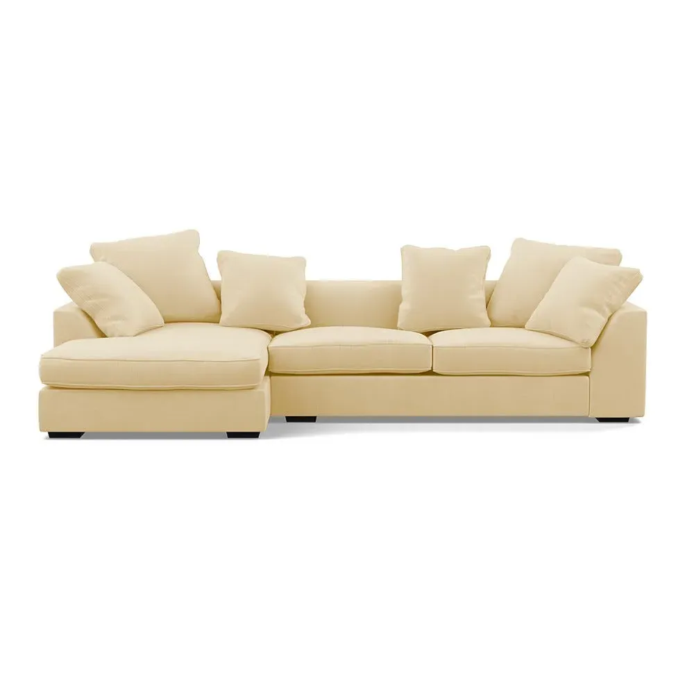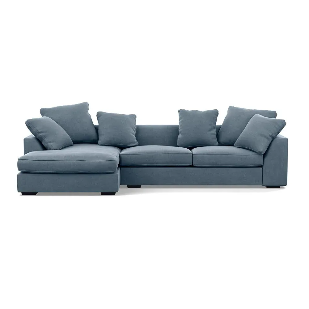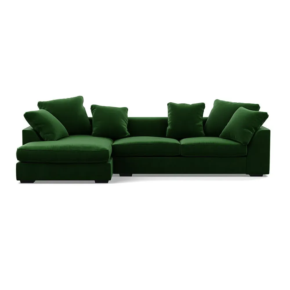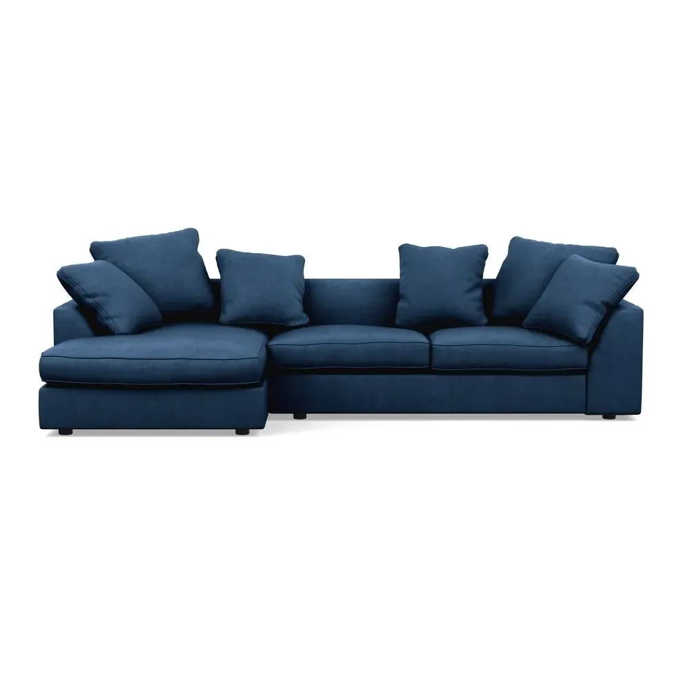 A soothing, contemporary design, the Cumulus has deep feather filled seats, serpentine sprung base and an extended chaise for optimum support.Slender back cushions feature double piping around their border and can be rearranged to suit your interior scheme.Made from a robust solid wood frame, the straight lines and edging of the Cumulus are contrasted by sloping curves that run along the top of its arms and backrest, while other more subtle details include hidden feet that provide a soft, floating feel.Available in a range of Heal's luscious velvets or textured woven cotton fabrics.
