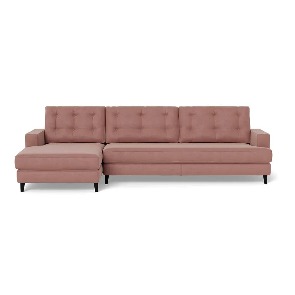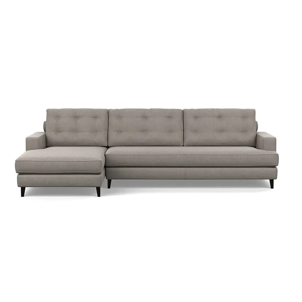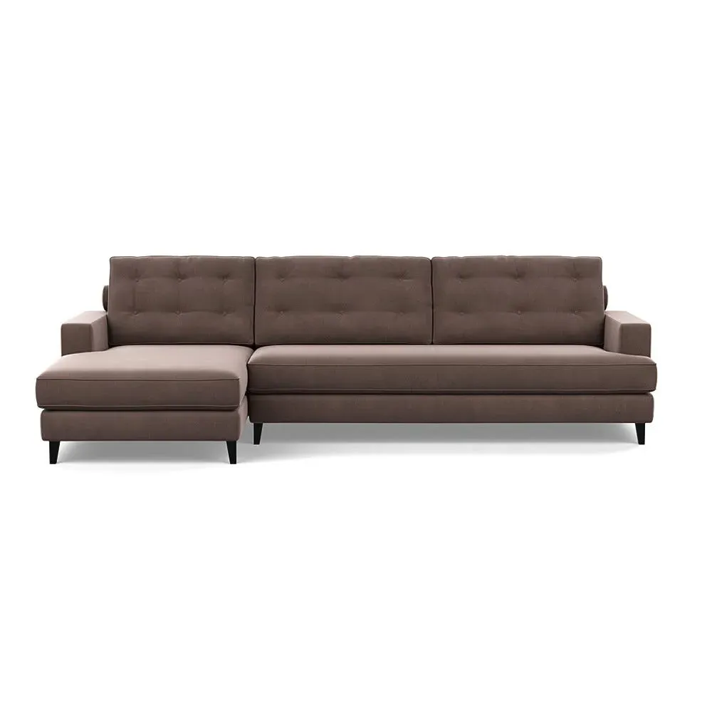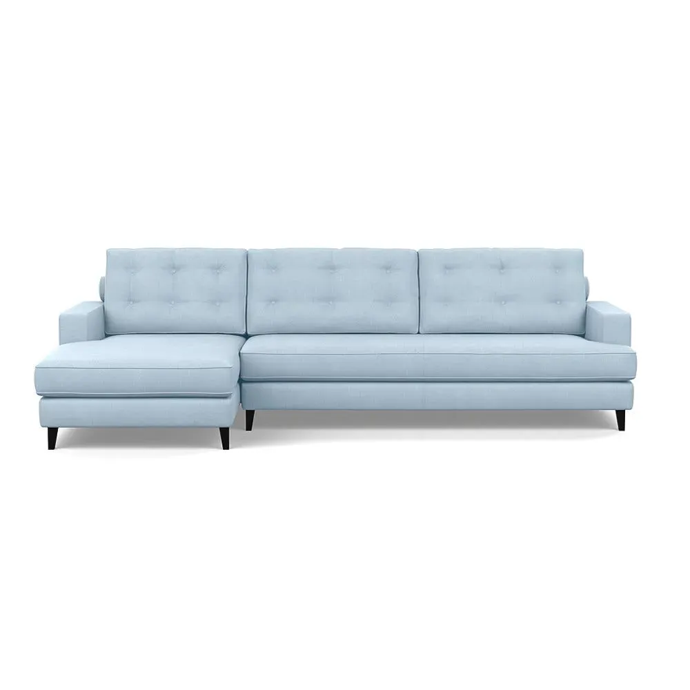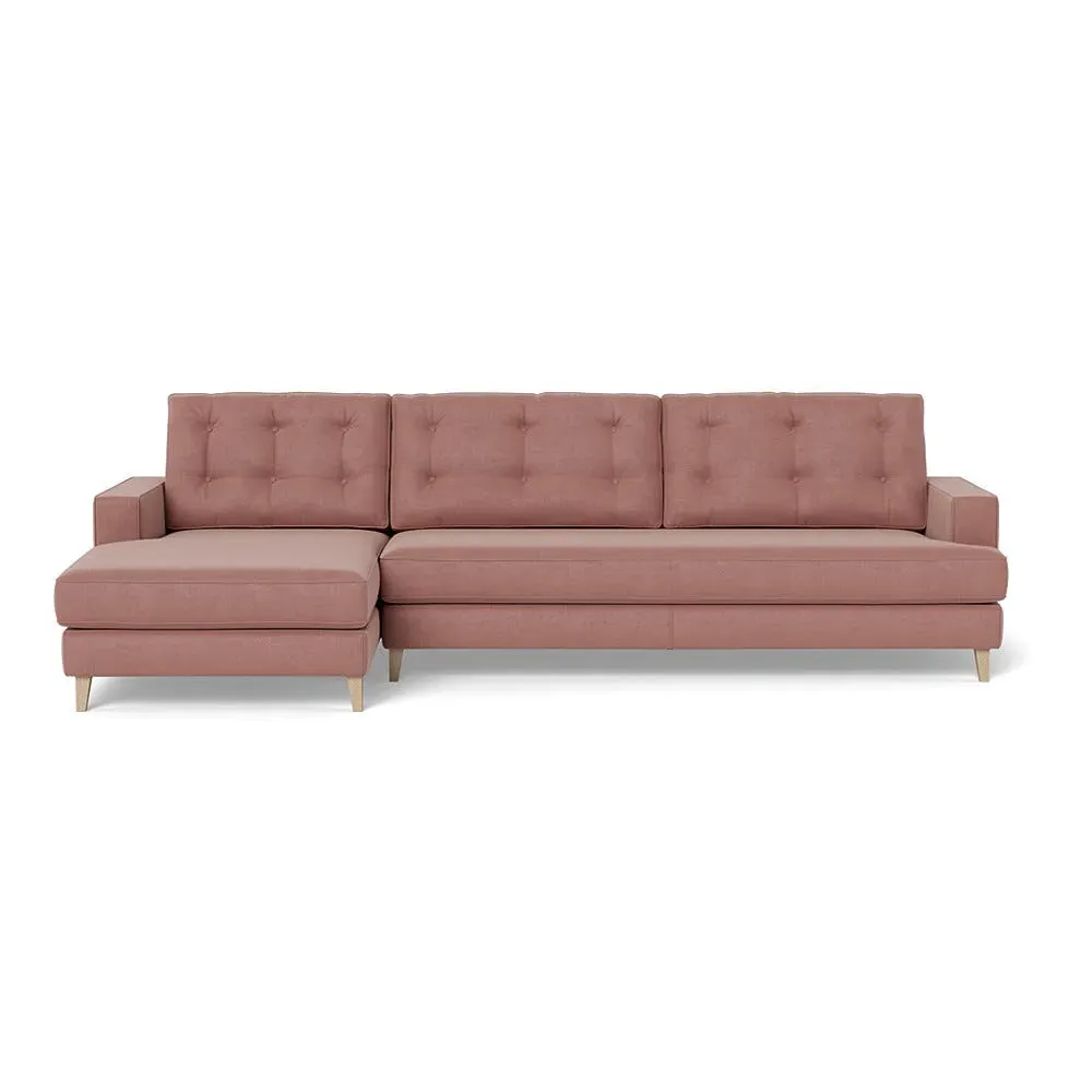 An update of iconic post-war furniture, this perfectly proportioned Corner Sofa is inspired by classic mid-century modern design. To provide the Mistral's renowned comfort, the frame is filled with a supportive padded seating, button-cushioning and bolstered back rest for extra support. Fully-upholstered with graceful matching piping in a wide variety of Heal's fabrics, this retro inspired design gives even more room to stretch out with the addition of a built-in chaise longue. Crafted in the UK, the sturdy birch wood frame has a low seat and strong symmetrical lines with sleek tapered beech wood feet completing the period style. Exclusive to Heal's and made in Britain Inspired by mid-century design Birchwood frame with beech feet in a choice of finishes Supportive webbed seat structure Comfortable foam seat, back and bolster cushions Available in a range of sizes and Heal's fabrics For more mid-century style ideas, read our