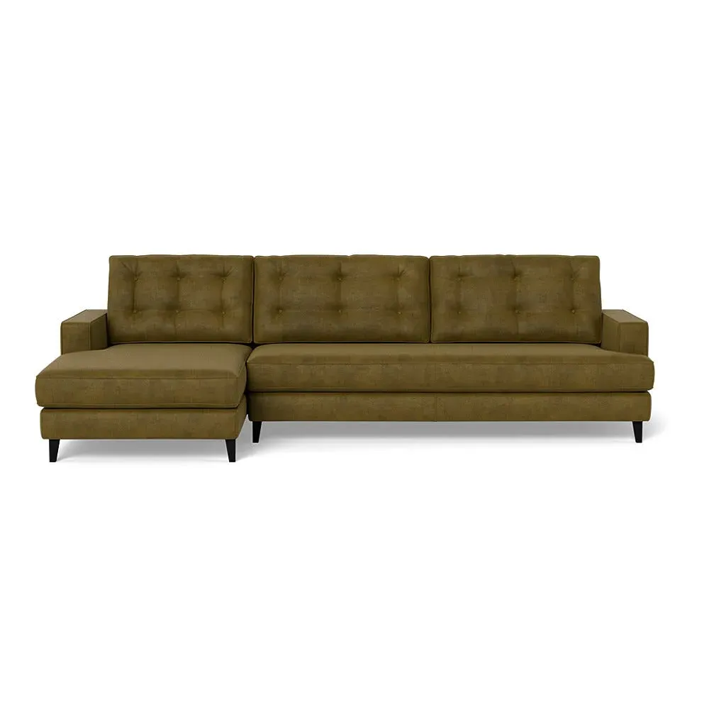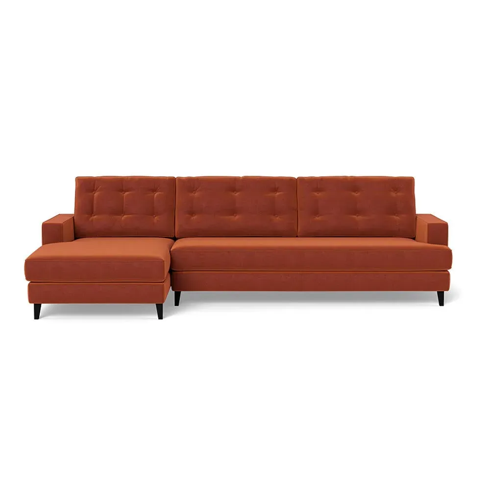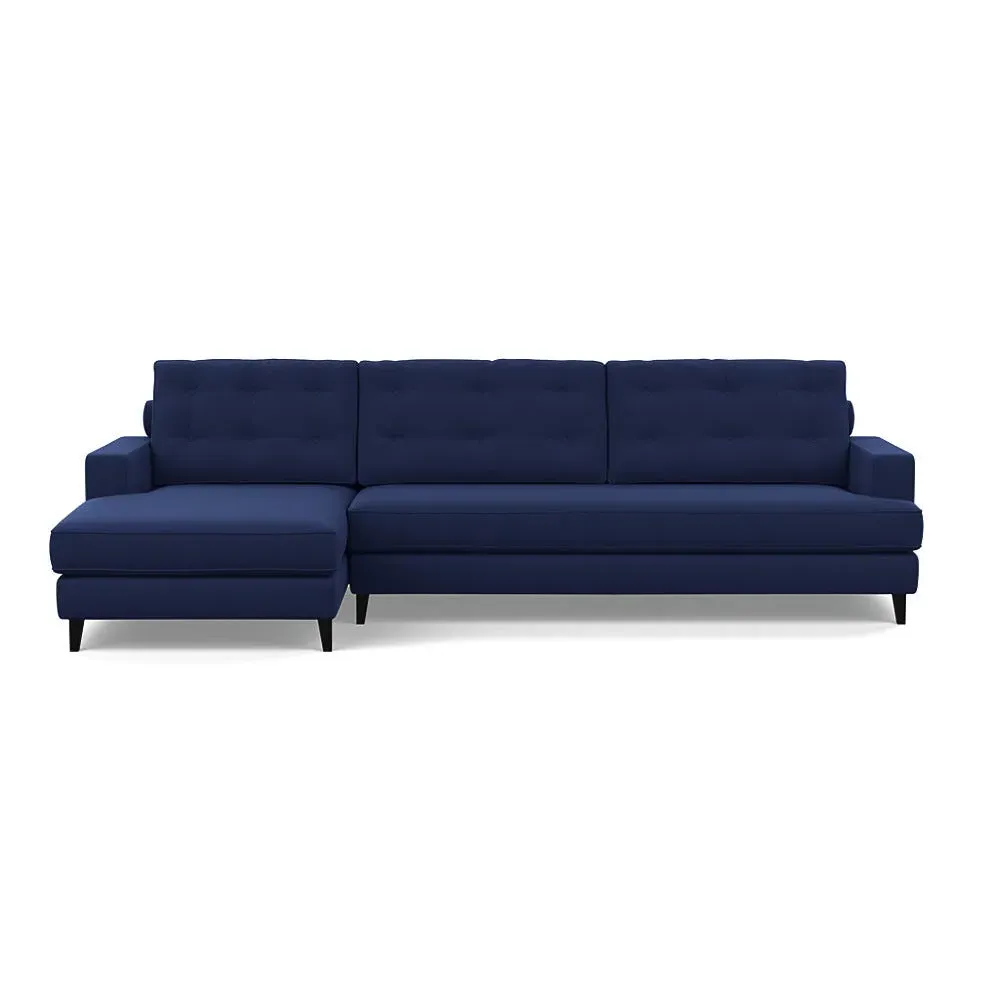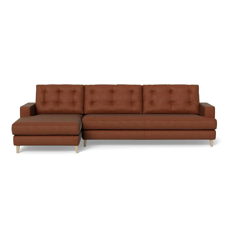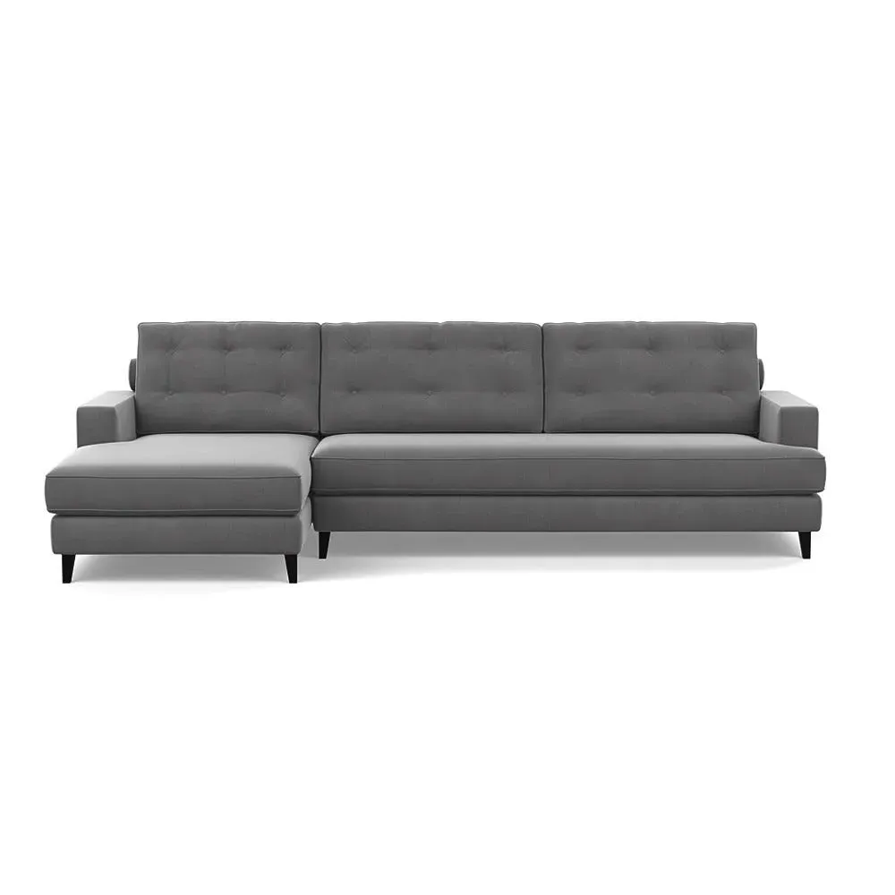 An update of iconic post-war furniture, this perfectly proportioned Corner Sofa is inspired by classic mid-century modern design. To provide the Mistral's renowned comfort, the frame is filled with a supportive padded seating, button-cushioning and bolstered back rest for extra support. Fully-upholstered with graceful matching piping in a wide variety of Heal's fabrics, this retro inspired design gives even more room to stretch out with the addition of a built-in chaise longue. Crafted in the UK, the sturdy birch wood frame has a low seat and strong symmetrical lines with sleek tapered beech wood feet completing the period style. Exclusive to Heal's and made in Britain Inspired by mid-century design Birchwood frame with beech feet in a choice of finishes Supportive webbed seat structure Comfortable foam seat, back and bolster cushions Available in a range of sizes and Heal's fabrics For more mid-century style ideas, read our