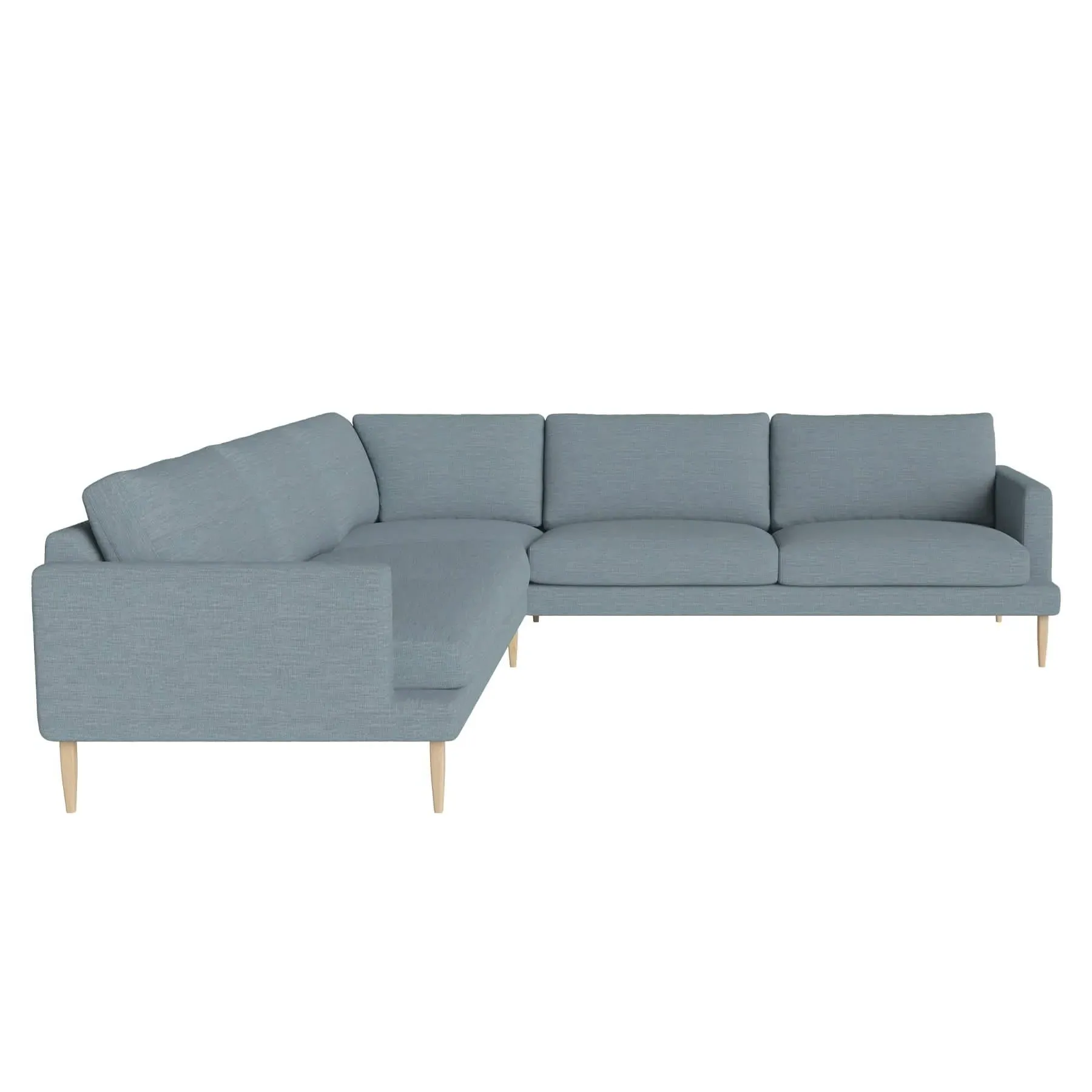 The corner sofa combines down and foam filling with its deep seating design, accented by white oiled oak legs. Its removable covers provide easy maintenance, while the corner layout maximizes seating capacity. The thoughtful construction suits spacious lounging, and the sturdy frame ensures lasting durability.