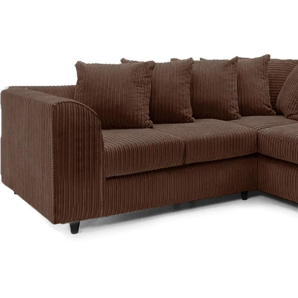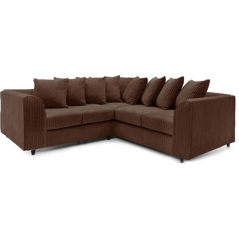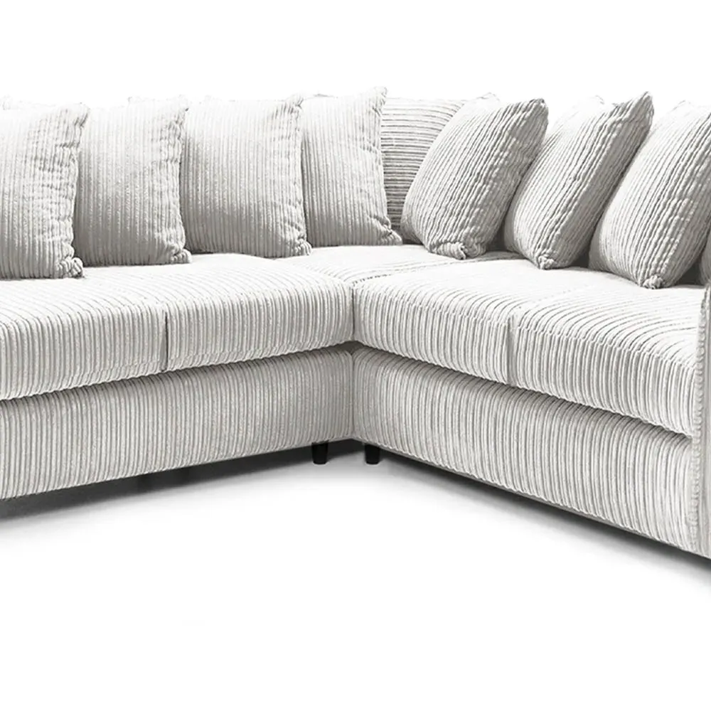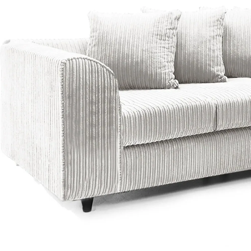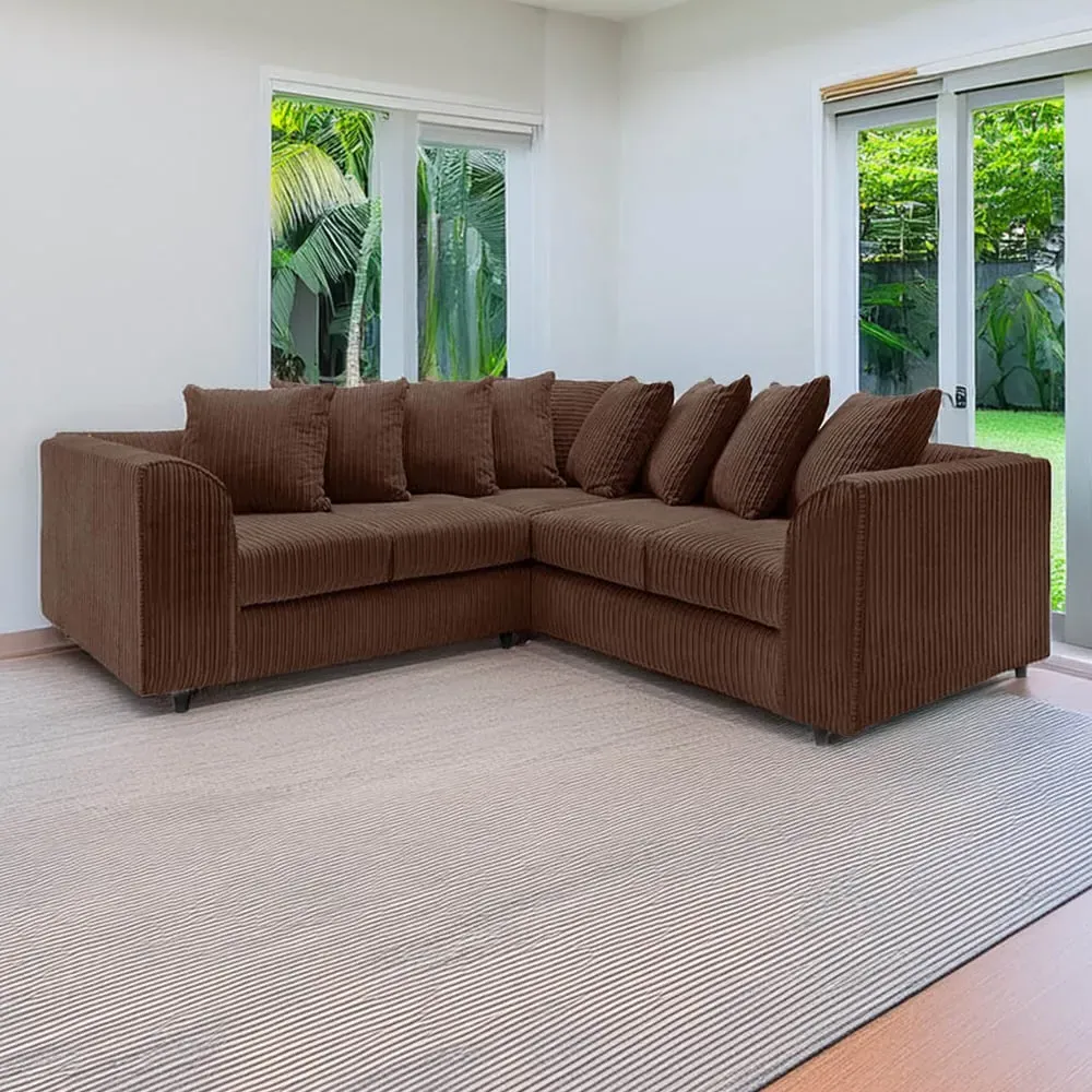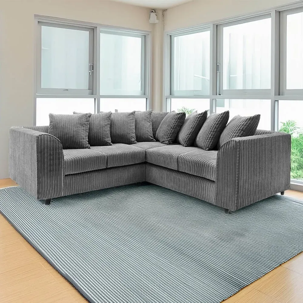 The corner sofa offers comfort and practicality with its foam-filled seating and scatter back cushions. Its compact design fits through doorways as narrow as 65cm wide, while the durable jumbo cord upholstery provides both texture and longevity. The L-shaped configuration maximizes seating space, and the three-piece construction ensures easy delivery and assembly.
