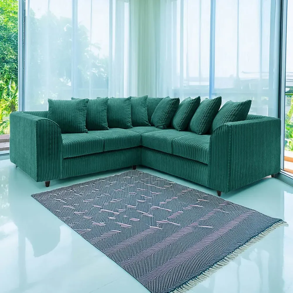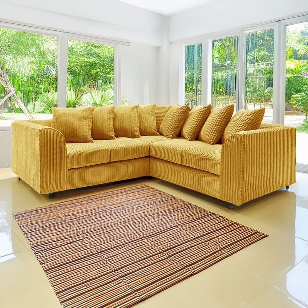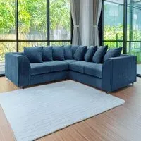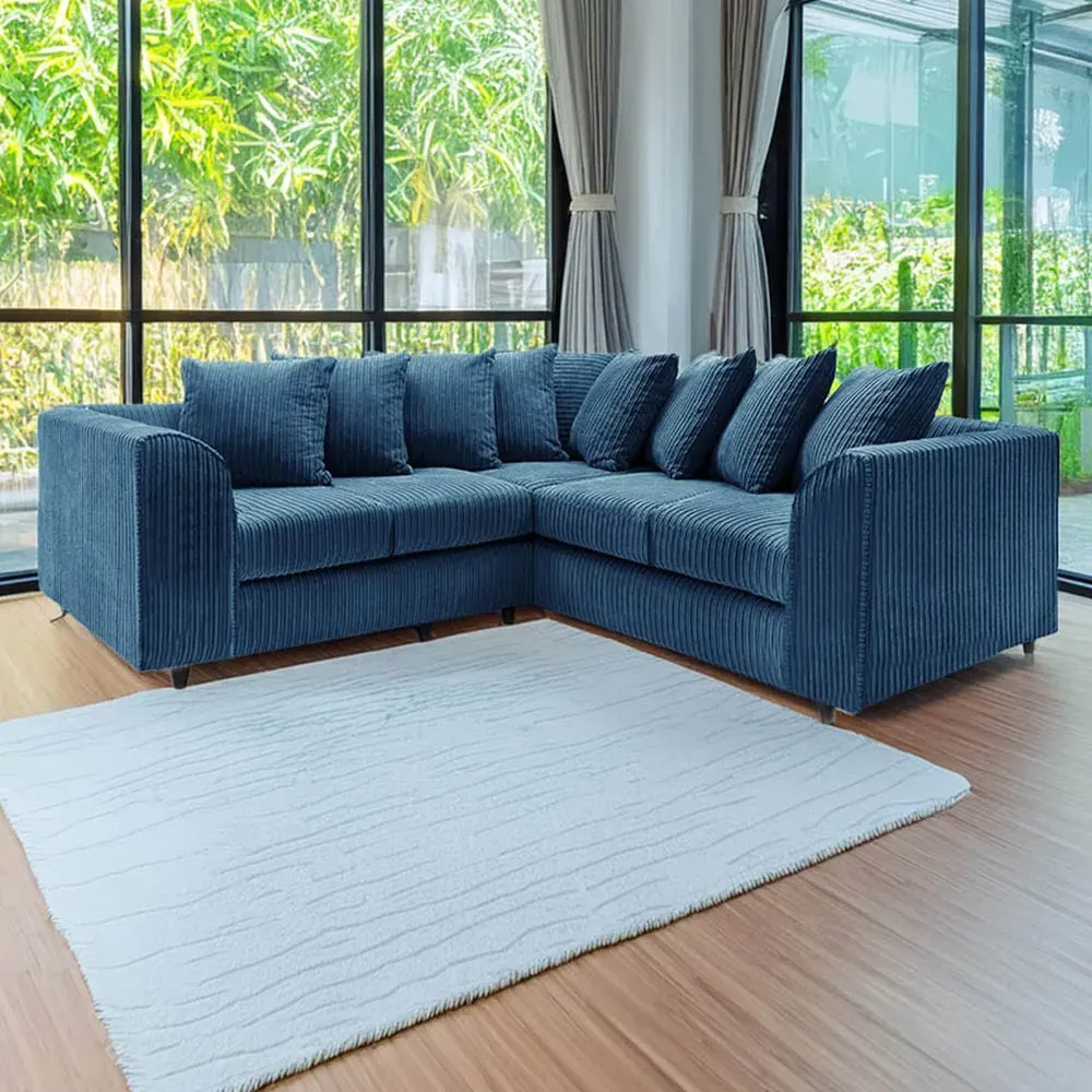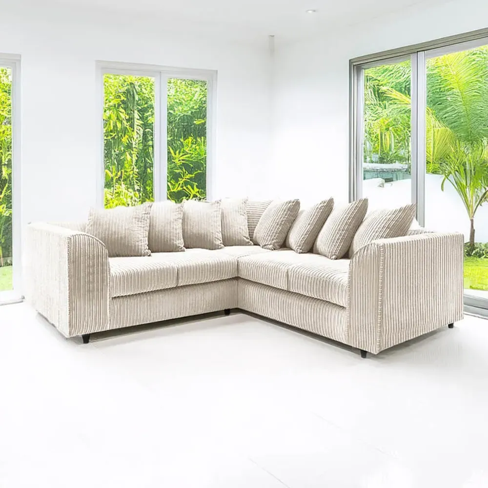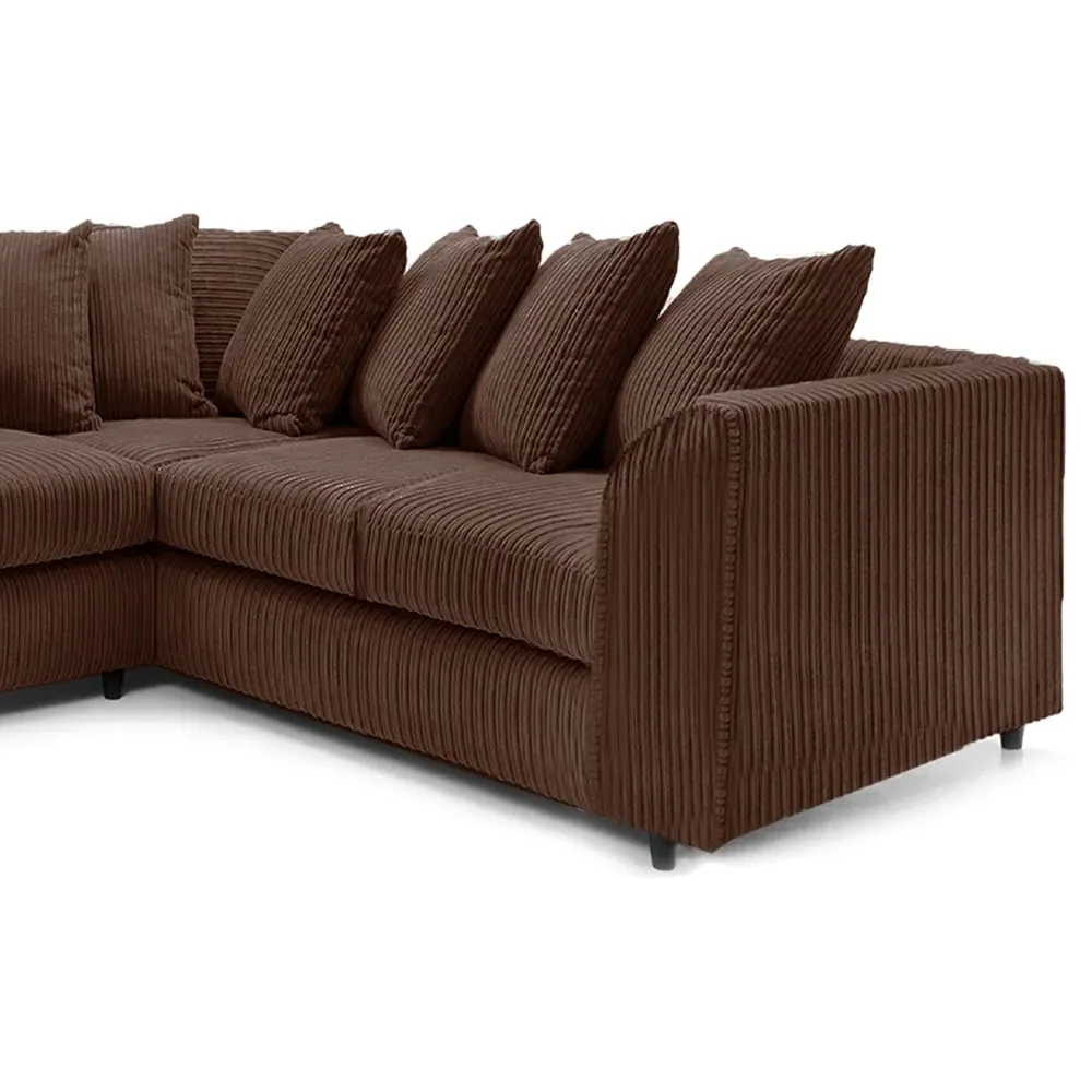 The corner sofa offers comfort and practicality with its foam-filled seating and scatter back cushions. Its compact design fits through doorways as narrow as 65cm wide, while the durable jumbo cord upholstery provides both texture and longevity. The L-shaped configuration maximizes seating space, and the three-piece construction ensures easy delivery and assembly.