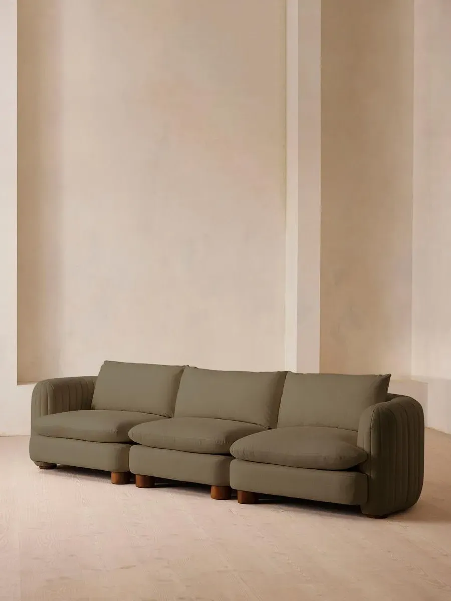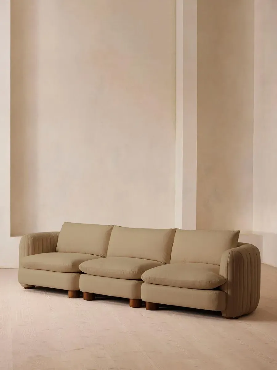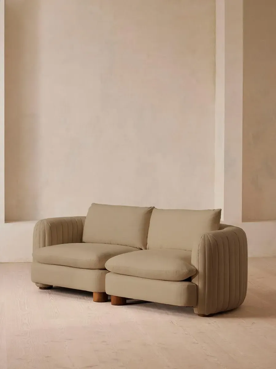 A House favourite, now with a deeper sit, this velvet-wrapped modular sofa is designed to adapt to your space. A member favourite, the Vivienne sofa is heavily inspired by London's White City House. Characterised by a low, wraparound silhouette built for comfort and a new deeper sit, this modular design is made to work with your room, piecing together with other sections to create the sofa of your choice.