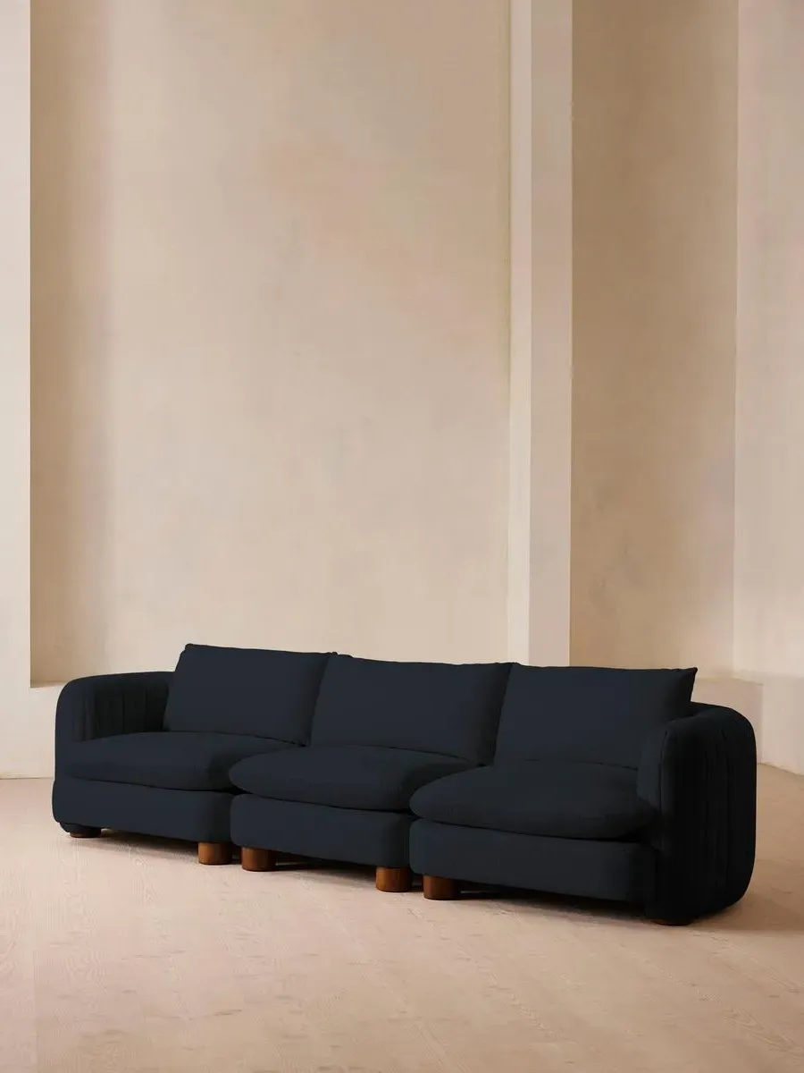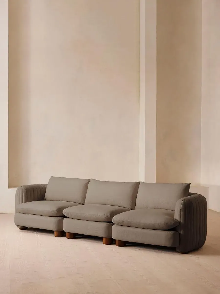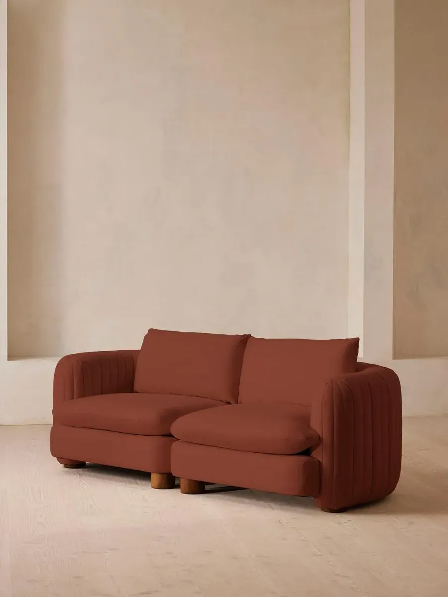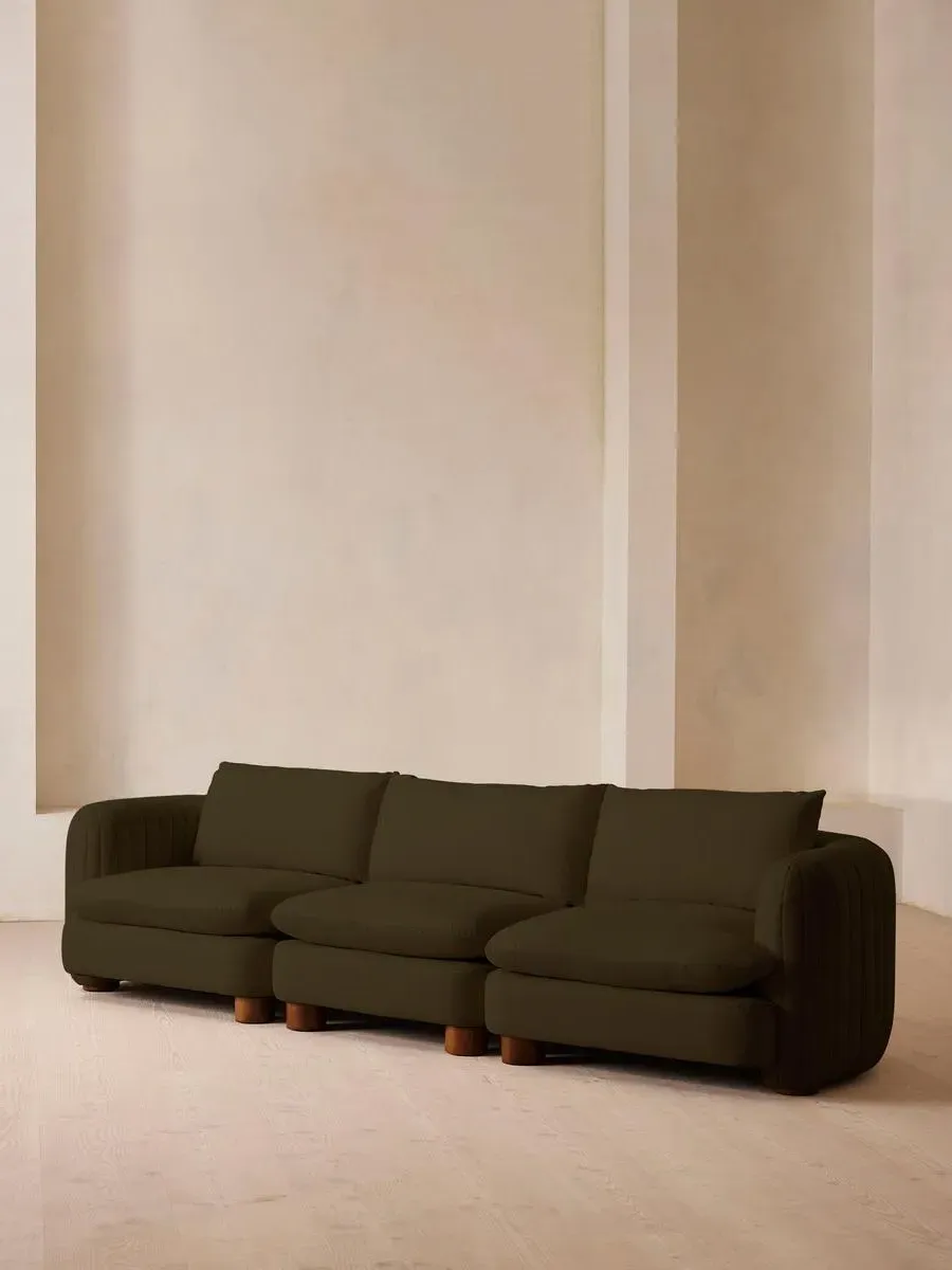 A House favourite, now with a deeper sit, this velvet-wrapped modular sofa is designed to adapt to your space. A member favourite, the Vivienne sofa is heavily inspired by London's White City House. Characterised by a low, wraparound silhouette built for comfort and a new deeper sit, this modular design is made to work with your room, piecing together with other sections to create the sofa of your choice.