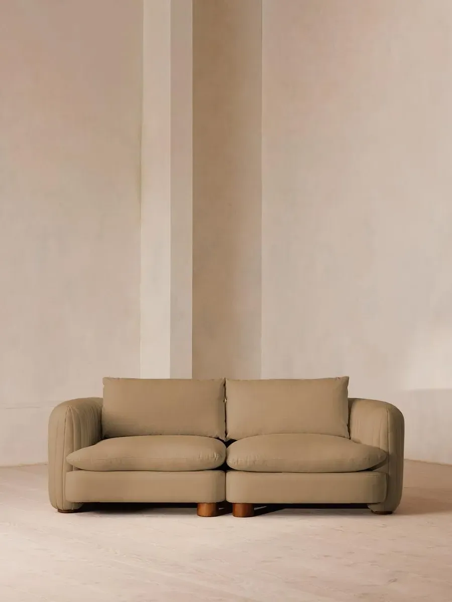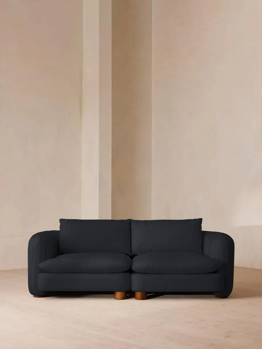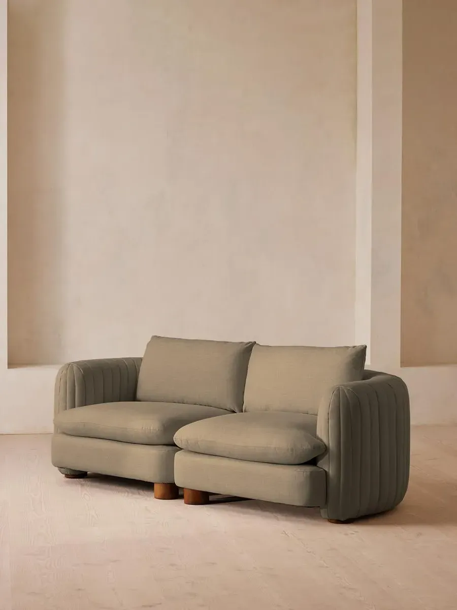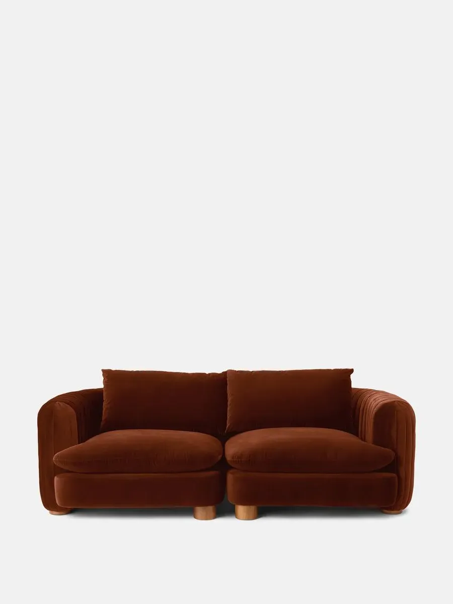 The eighth floor at White City House forms the inspiration for the Vivienne modular sofa. Upholstered in rich velvet, it features pleated stitch detailing, cylindrical legs and a wraparound back. Low lounge sitting makes this piece ideal for cosy evenings. Coordinate and configure with other pieces in the Vivienne collection for the sofa shape of your choice.