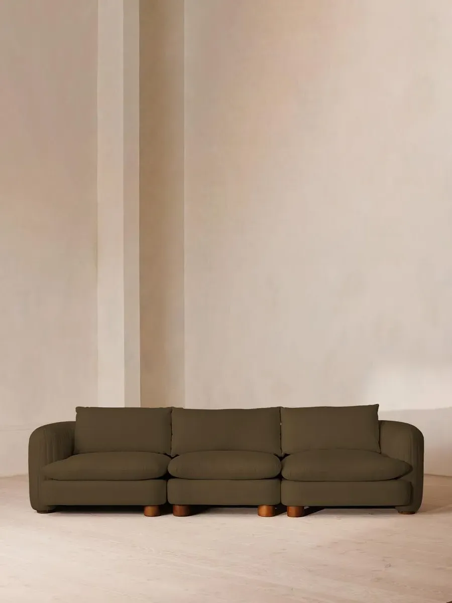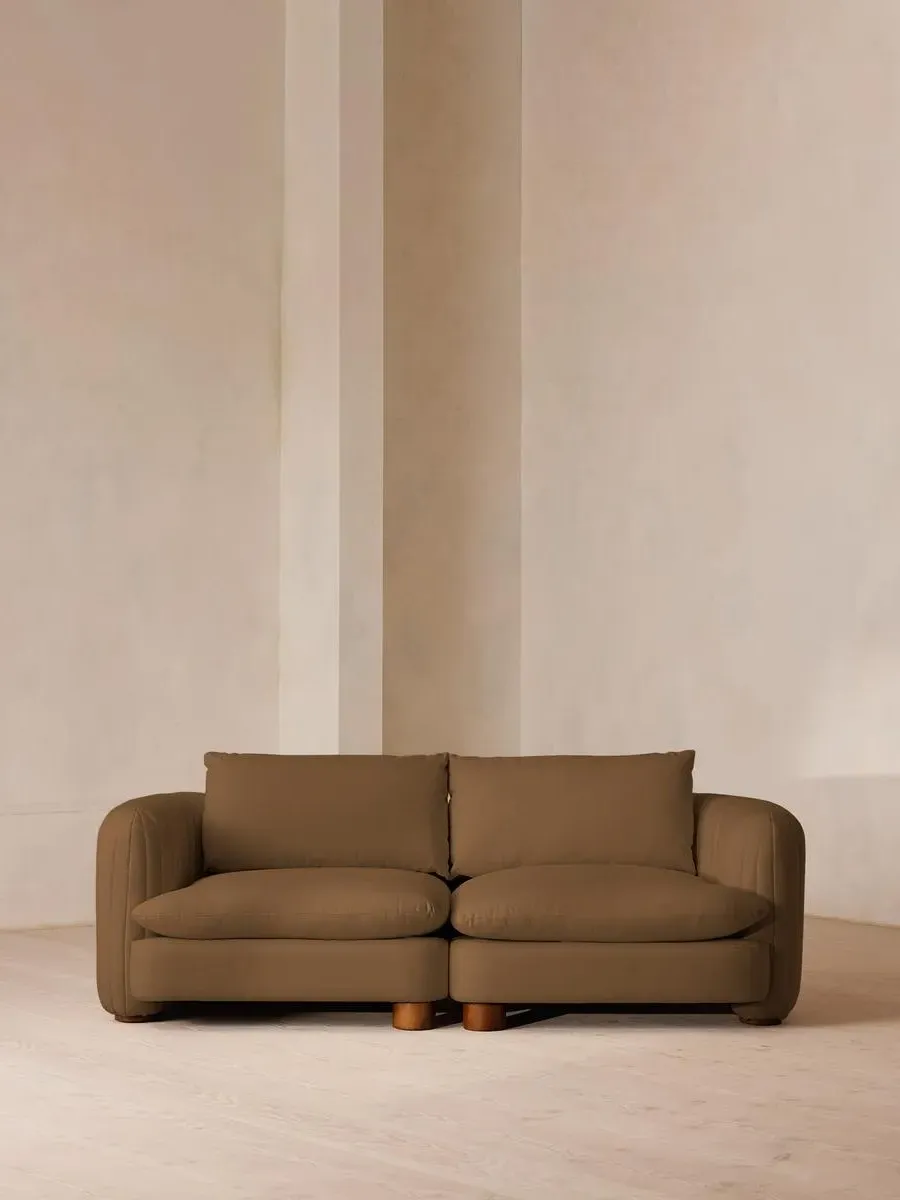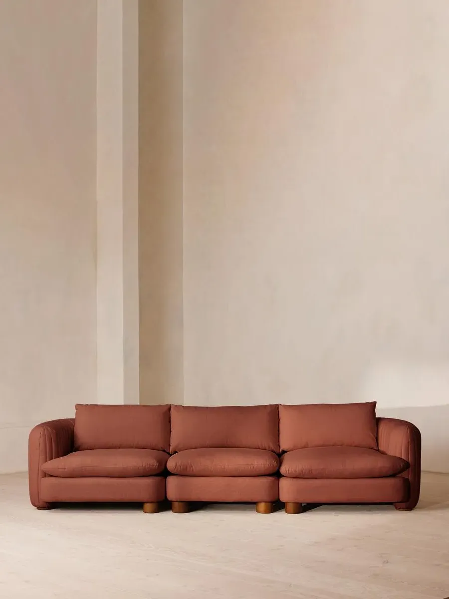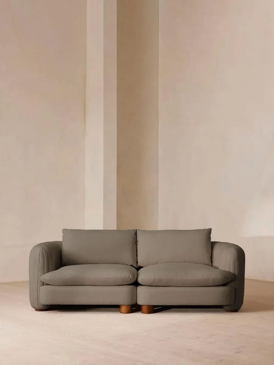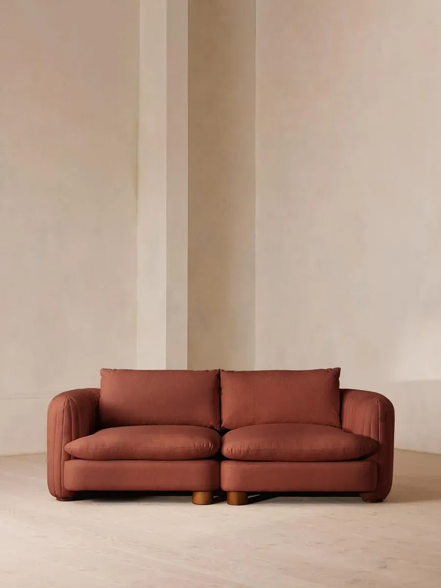 The eighth floor at White City House forms the inspiration for the Vivienne modular sofa. Upholstered in rich velvet, it features pleated stitch detailing, cylindrical legs and a wraparound back. Low lounge sitting makes this piece ideal for cosy evenings. Coordinate and configure with other pieces in the Vivienne collection for the sofa shape of your choice.