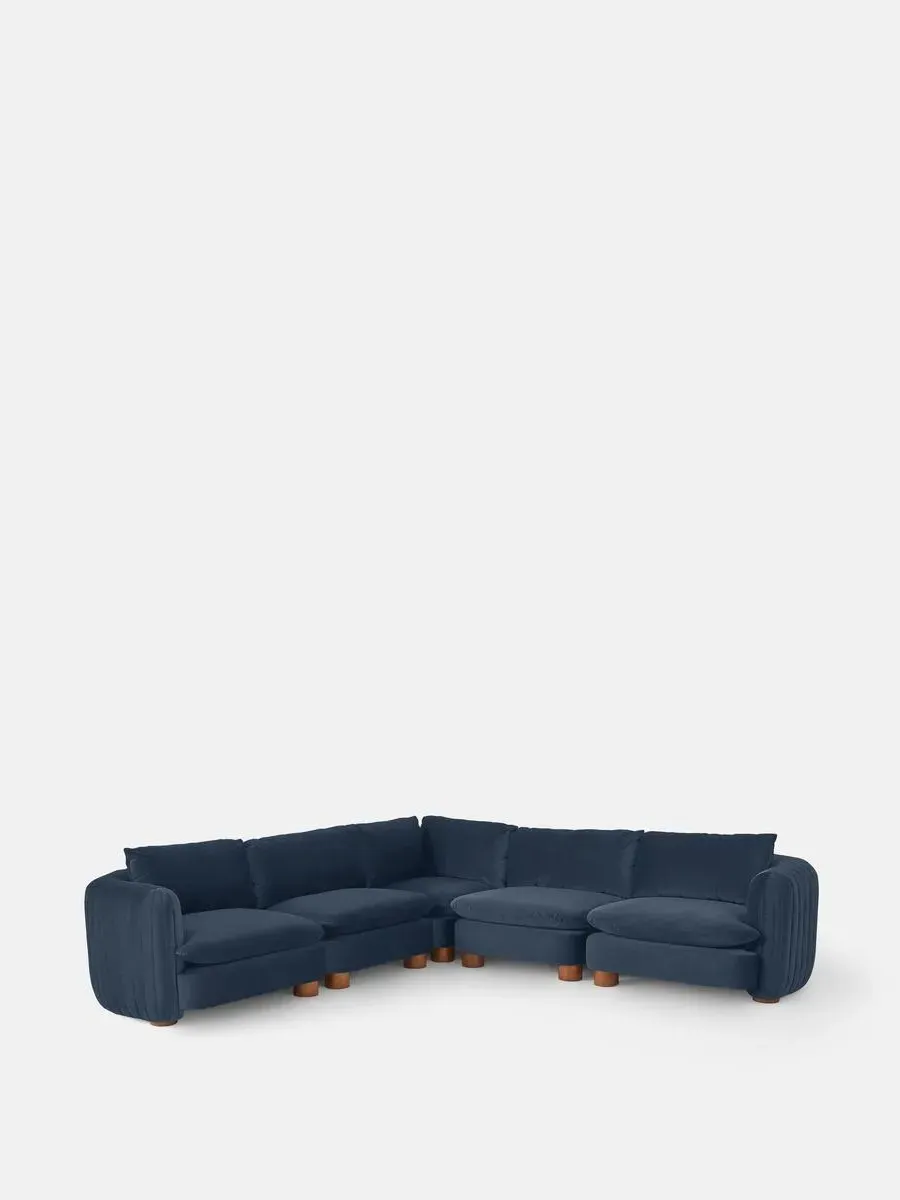 A hugging, wrap-around silhouette perched on cylindrical legs and upholstered in boucle fabric. Inspired specifically by the eighth floor of London's White City House, the Vivienne sofa offers low lounge sitting for cosy evenings in. Configure three and four-seater and corner modules to suit your individual living space.