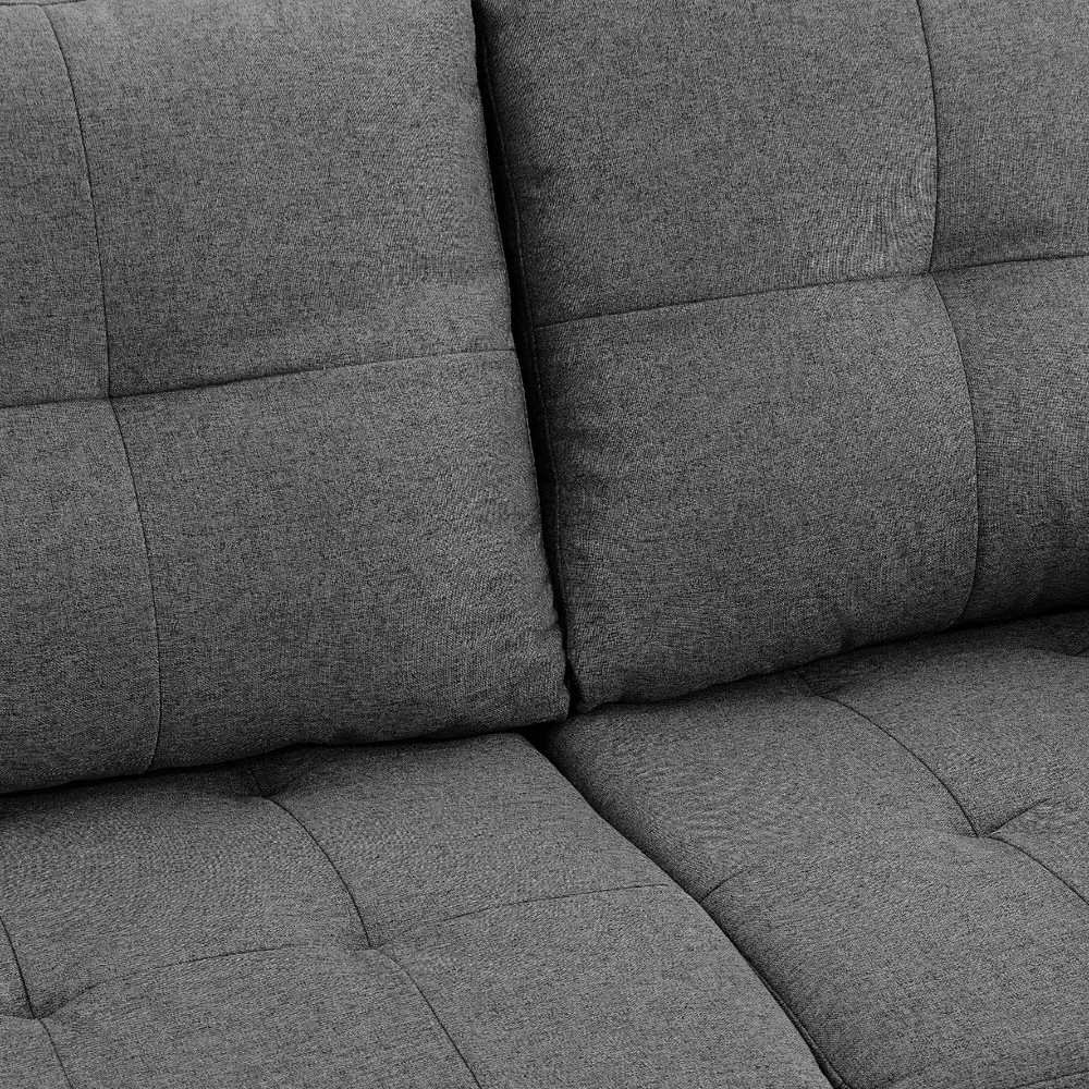 Make a splendid addition to your home decor with the Home Detail Willow Double Sleeper Light Grey and Dark Grey Fabric Sofa Bed. It has been designed to complement both traditional and modern interior spaces. This sofa bed is upholstered using soft, dual-contrast fabric with cosy padded seating and a firm backrest. It can be easily converted into a comfortable bed with the click-clack mechanism. This sofa bed features sturdy legs for stability and support. One of the best ways to keep this sofa looking great is to vacuum it once a week. Use a low setting and the upholstery attachment of your vacuum cleaner to avoid any damage to the fabric. Just make sure to vacuum in the direction of the pile. Alternatively using a soft hand brush can fluff the fibres back up and keep the fabric colour intact. Fabric appearance may vary due to differences in lighting and screen resolution on various devices. Please note: This sofa is a large item, so please ensure it will fit through any access doors and walkways up to and within your property. It requires a minimum door width of 80cm.